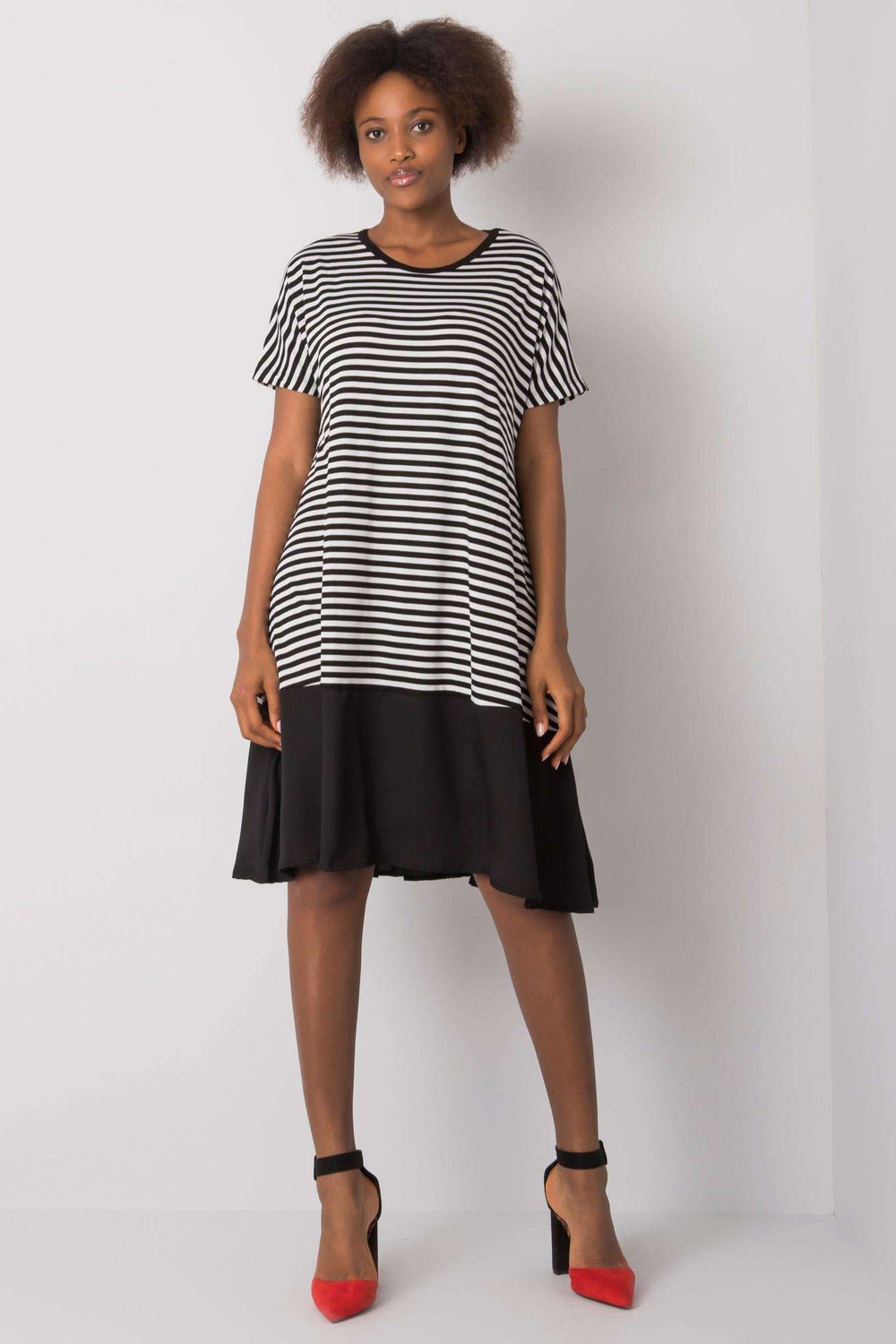 Černobílé volné pruhované šaty.