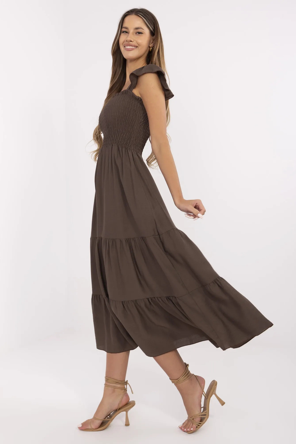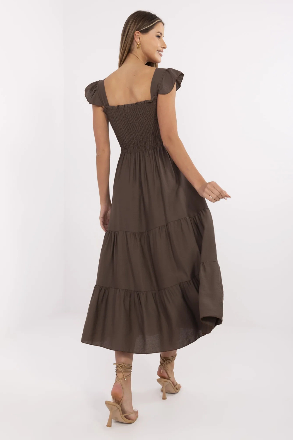 Míry šatů v jedné velikosti: šířka v podpaží - 31 cm (v rozloženém stavu), šířka v podpaží - 60 cm (po natažení), šířka v pase - 29 cm (v rozloženém stavu), šířka v pase - 55 cm (po natažení), šířka v bocích - 59 cm, celková délka - 123 cm.