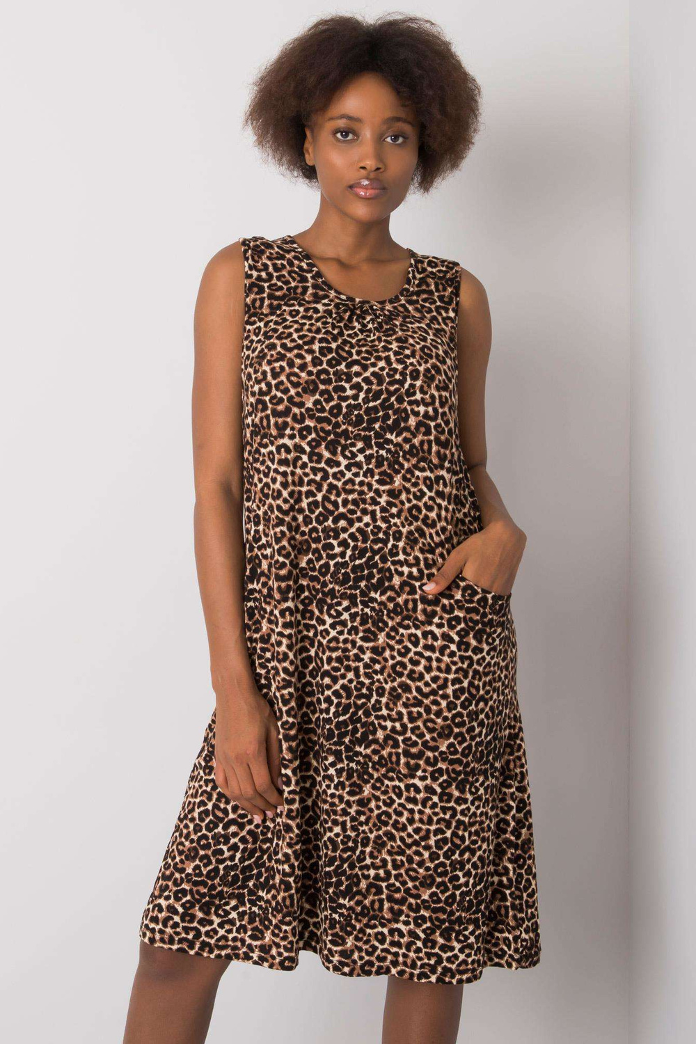 Modelka nosí velikost M. Rozměry modelky: výška 176 cm, hrudník 87 cm, pas 63 cm, boky 93 cm.