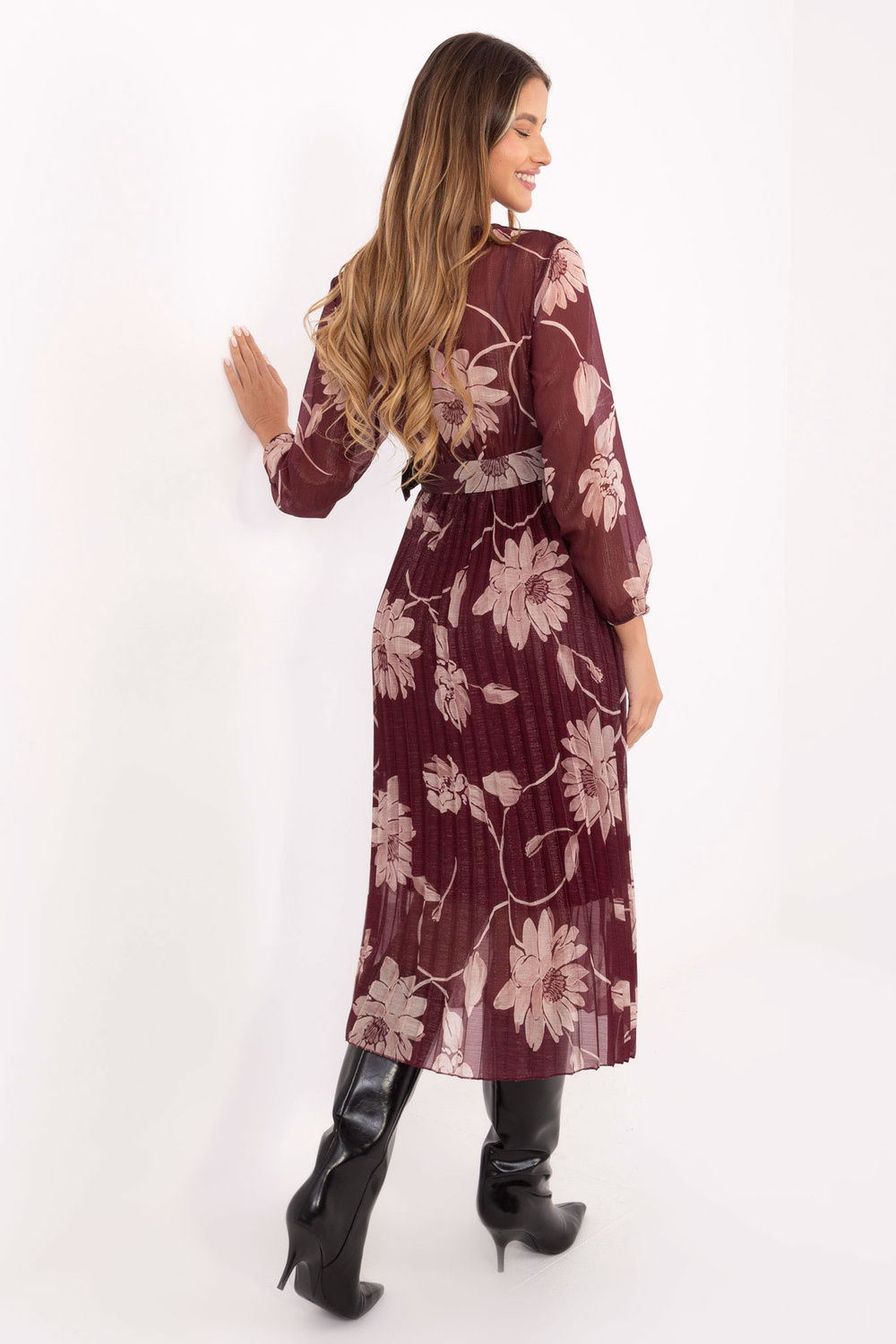 Modelka nosí oblečení v jedné velikosti. Rozměry modelky: výška 176 cm, hrudník 90 cm, pas 62 cm, boky 94 cm.