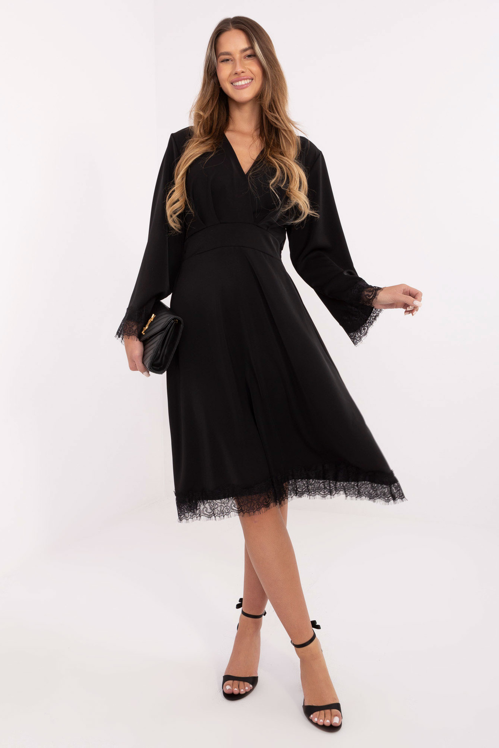 Rozměry šatů v jedné velikosti měřeno vleže: šířka pod pažemi - 53 cm, délka rukávu - 57 cm, šířka pasu - 38 cm, šířka boků - 59 cm, celková délka - 112 cm.