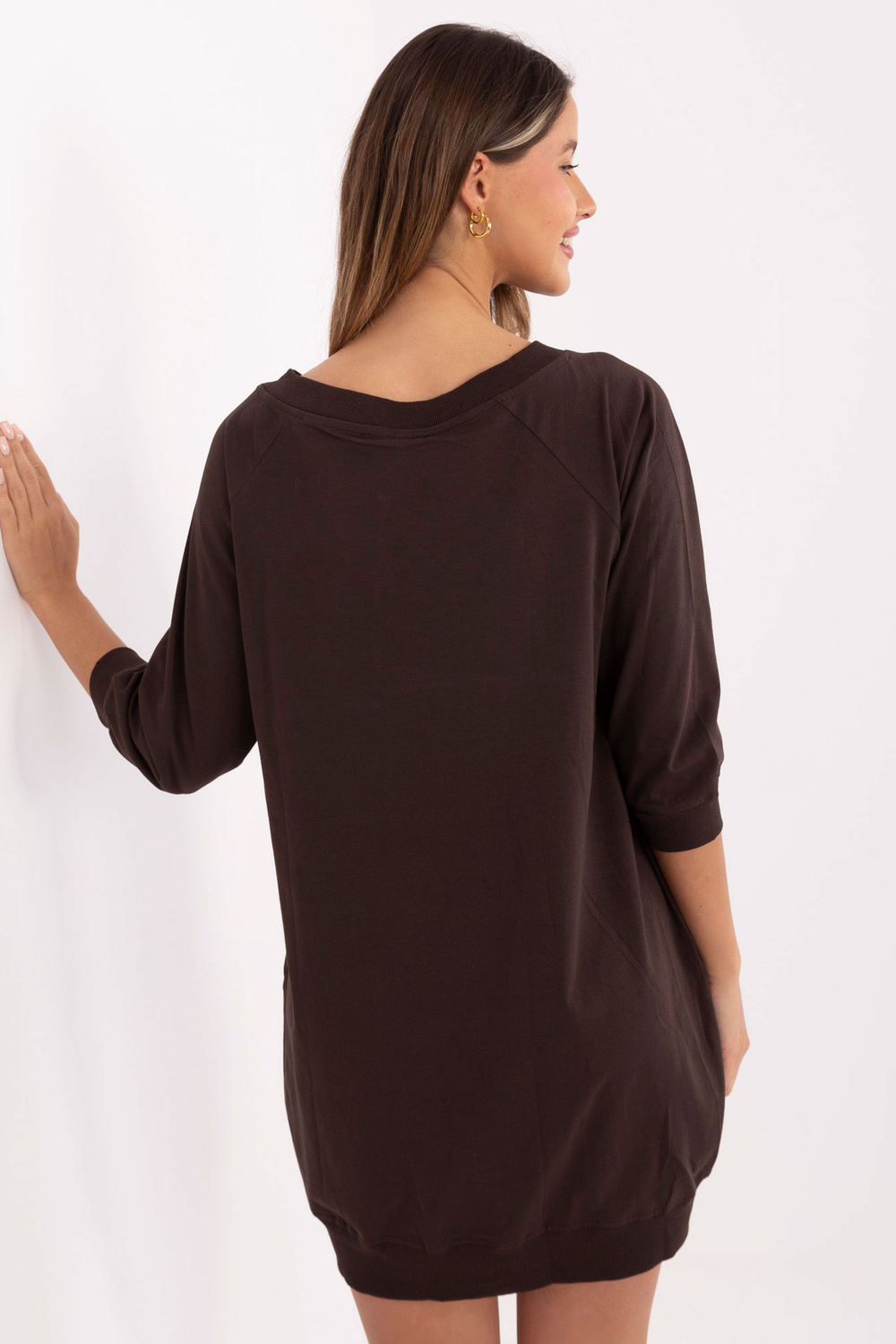 Rozměry šatů ve velikosti S/M, měřeno vleže: šířka podpaží - 56 cm, celková délka - 89 cm, šířka přes boky - 60 cm, délka rukávu - 47 cm.