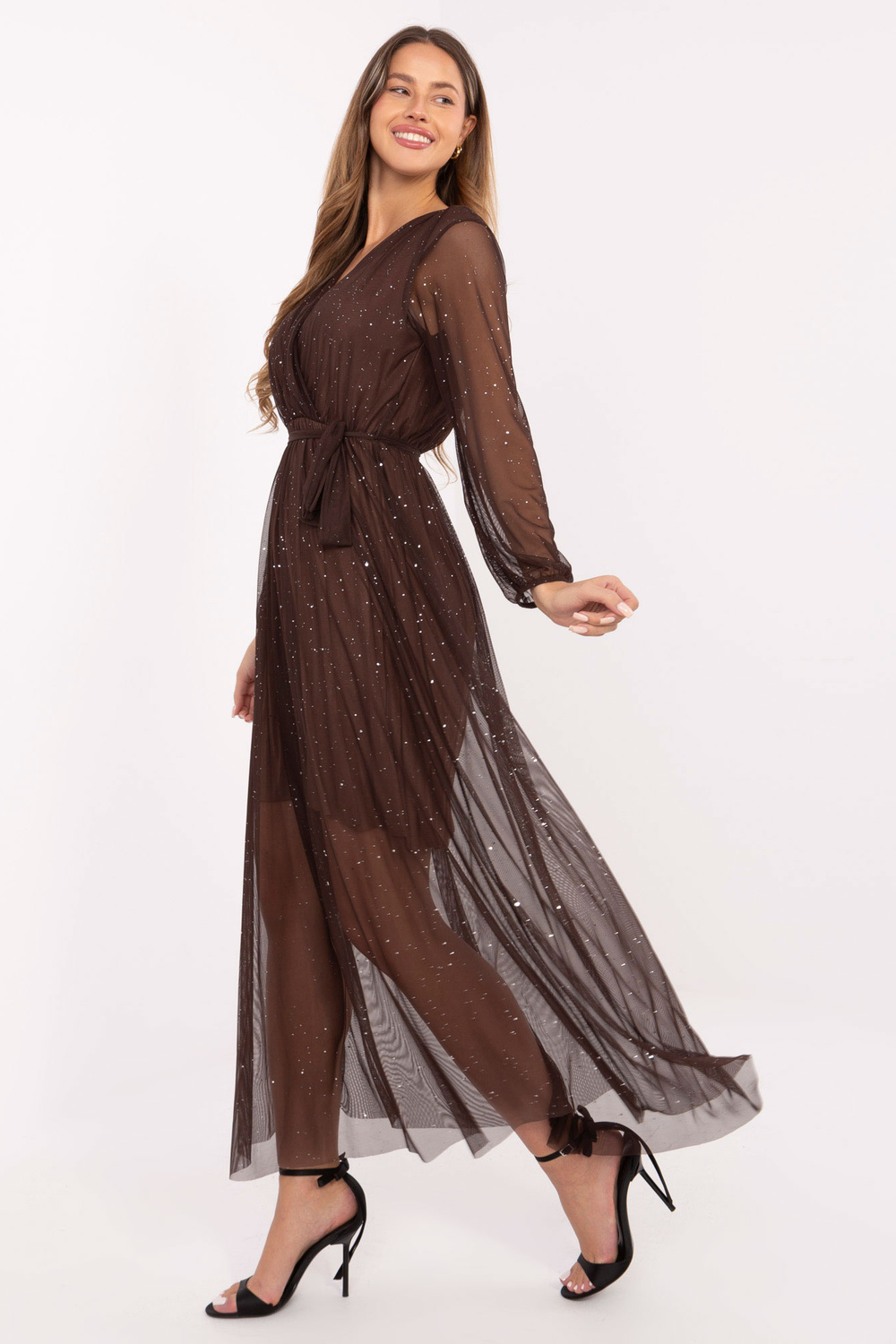 Rozměry šatů jedné velikosti měřené vleže: šířka pod pažemi - 46 cm, celková délka - 149 cm, šířka v bocích - 62 cm, šířka v pase - 30 cm, délka rukávu - 57 cm.
