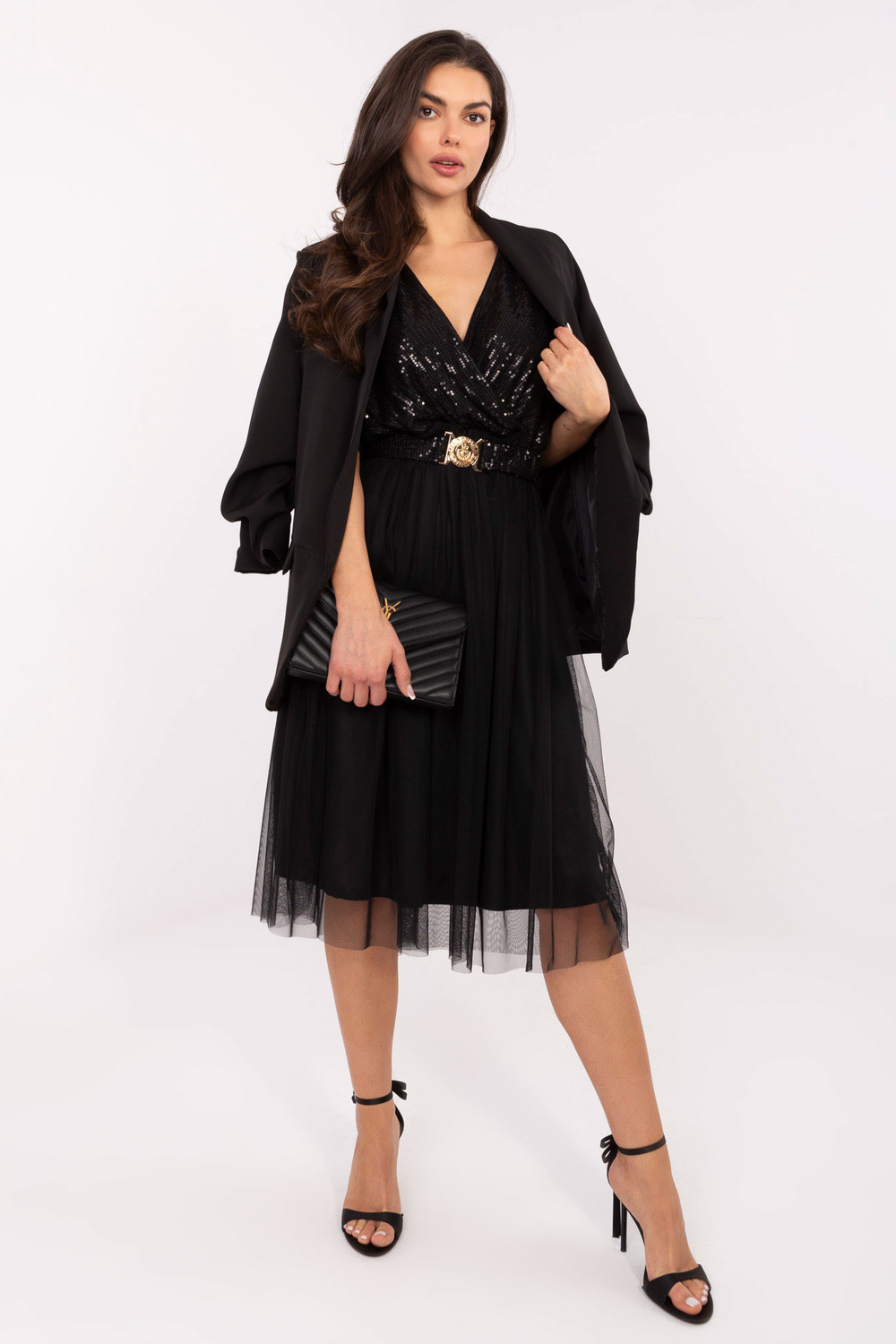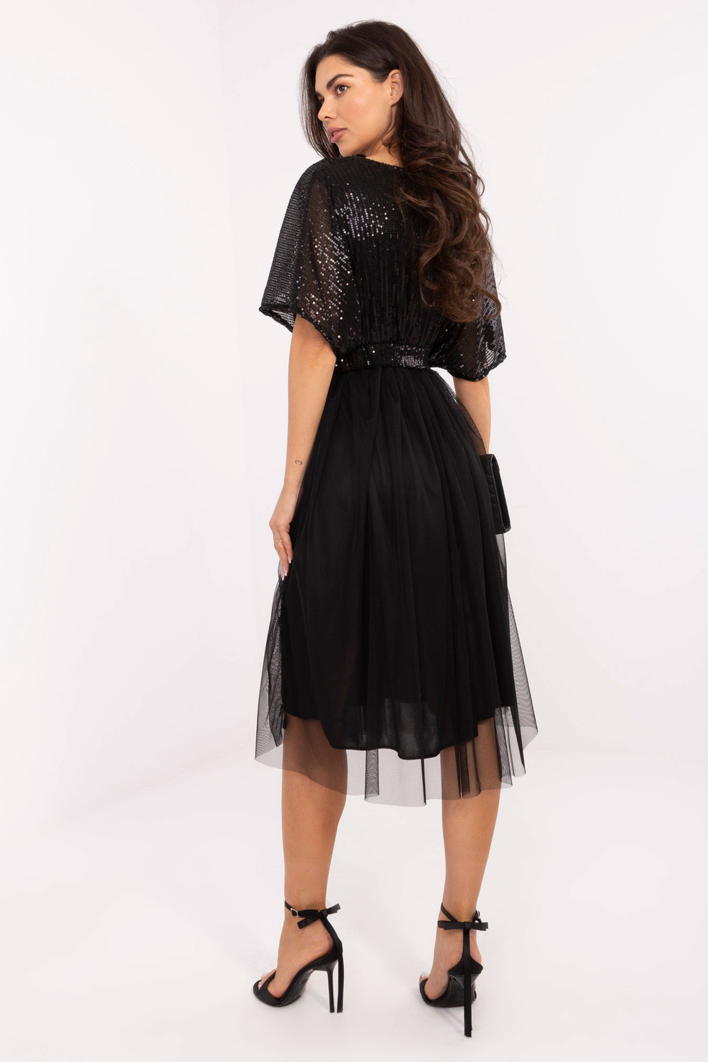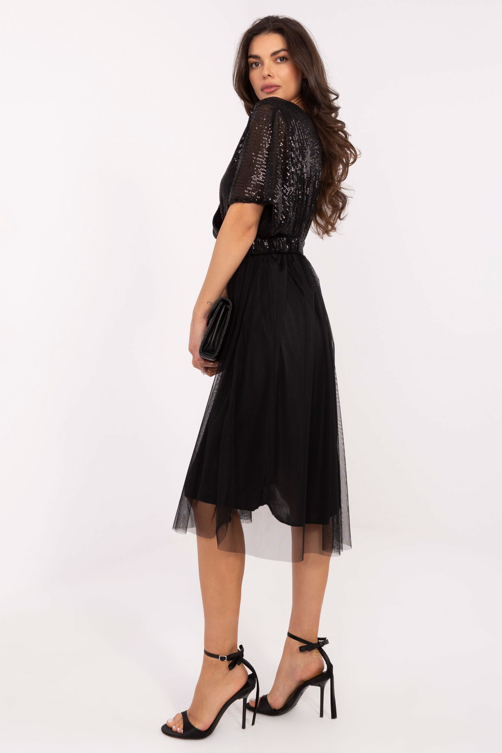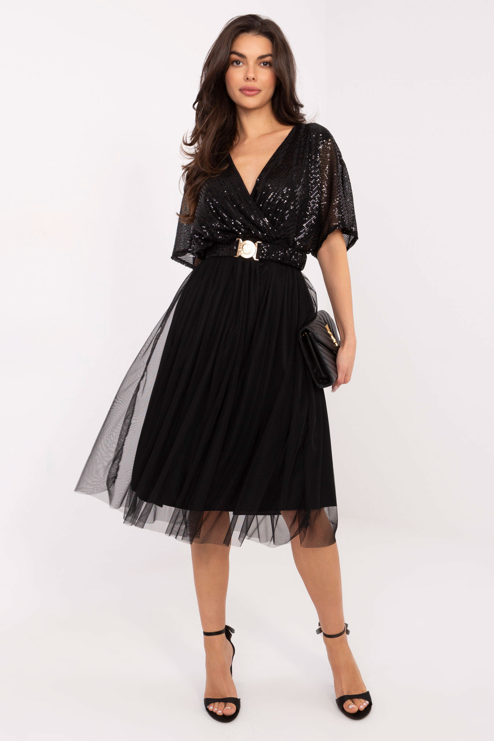 Modelka má na sobě oděv jedné velikosti. Rozměry modelky: výška 173 cm, hrudník 85 cm, pas 62 cm, boky 95 cm.
