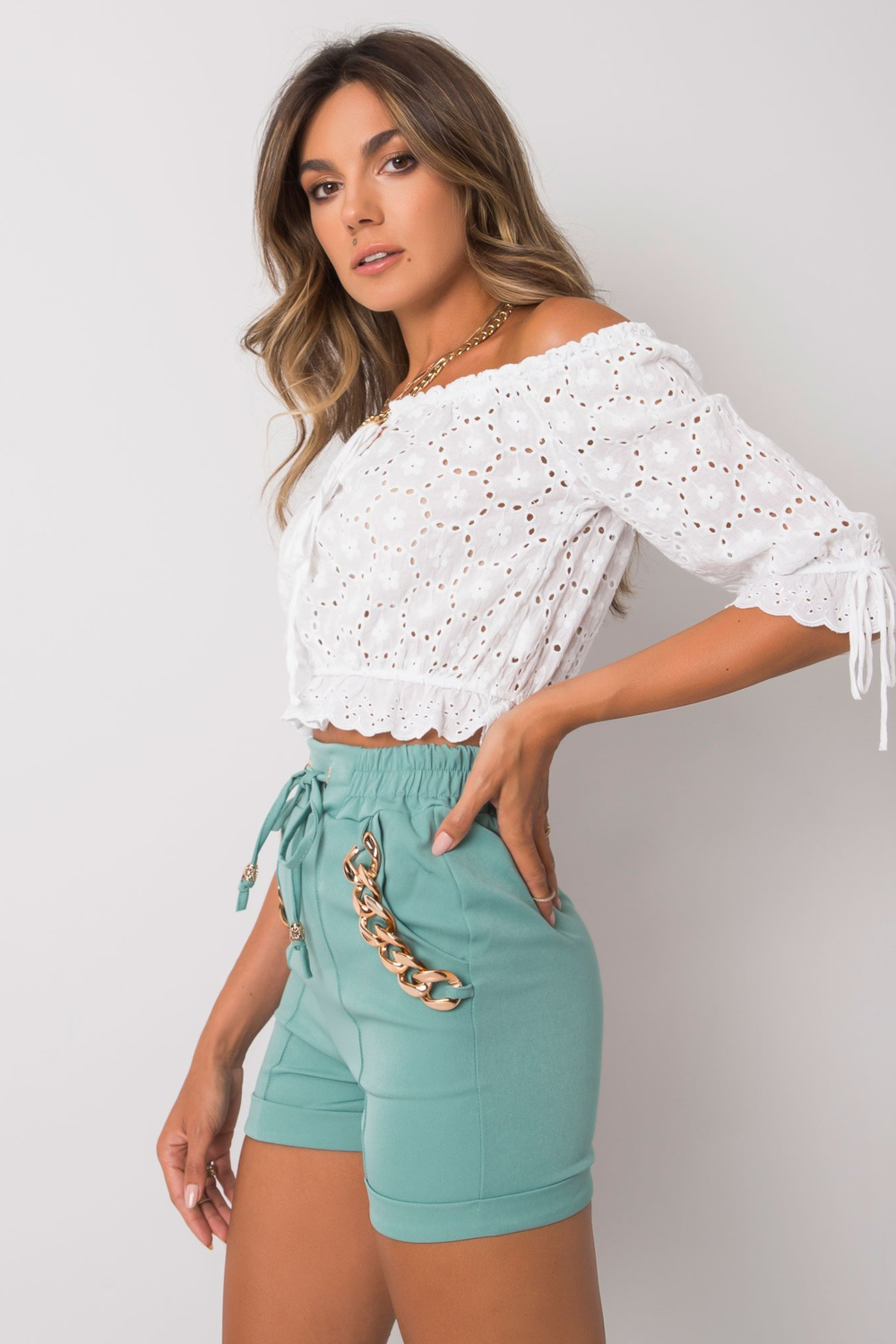 Tyrkysové šortky s řetízky Flannery.