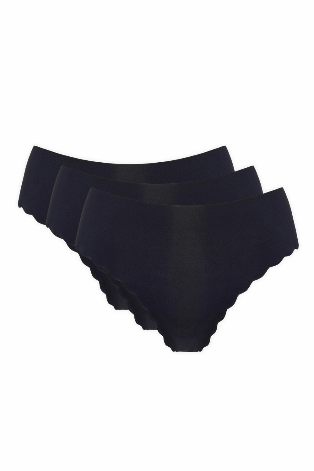 Comfortable panties sold in a pack of three. Decorative edges of the panties. The cut with a minimal amount of seams ensures discretion, the panties are invisible even under tight clothing. Comfortable, perfect for everyday wear. The gusset is made of pleasant and safe cotton for intimate areas, which ensures a feeling of comfort.