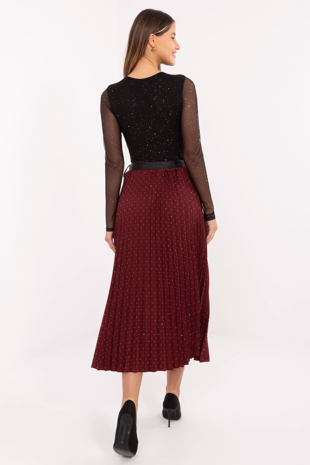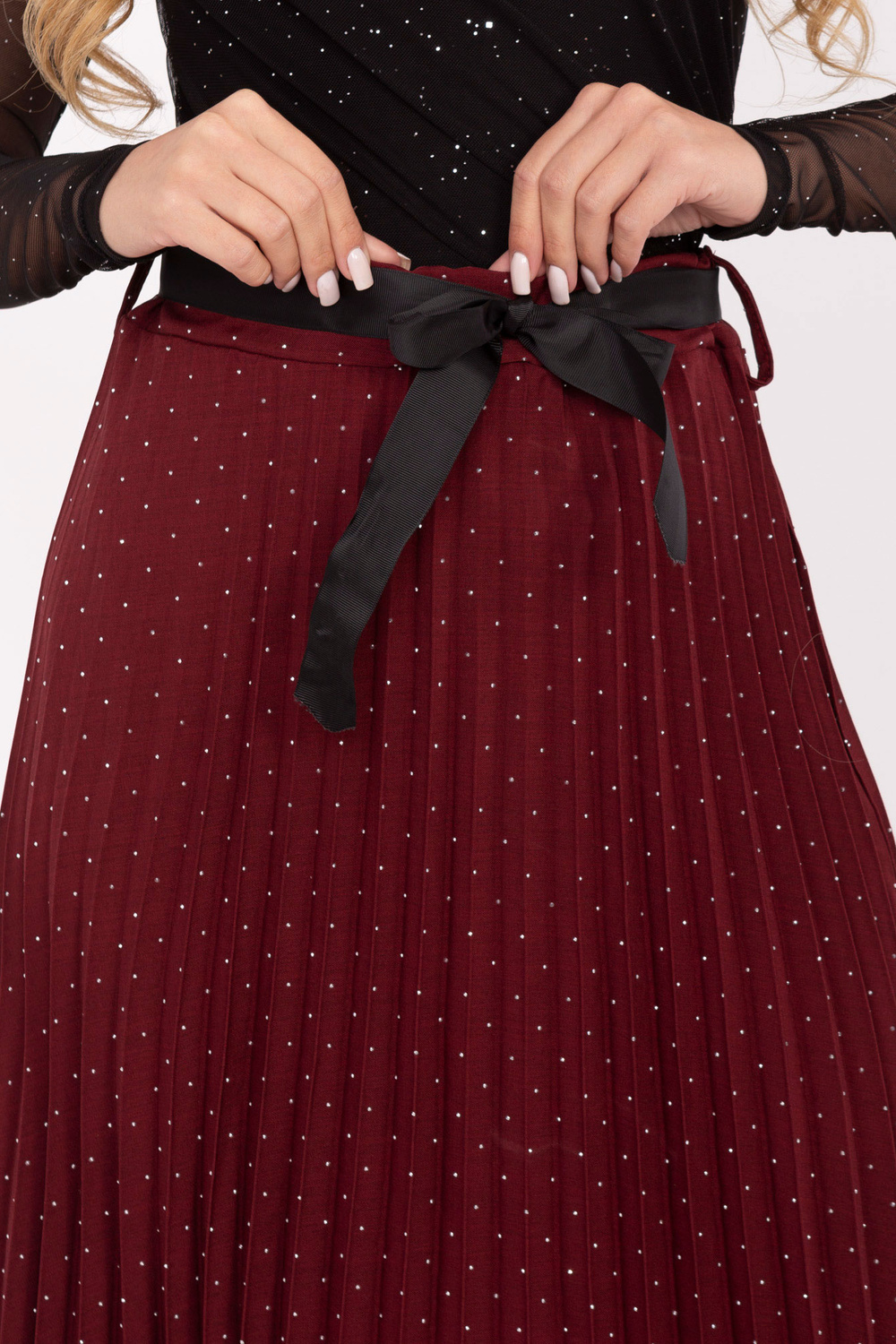 Rozměry sukně ve velikosti one size měřené vleže: šířka pasu – 35 cm (vleže), šířka pasu – 50 cm (natažený), celková délka – 89 cm.