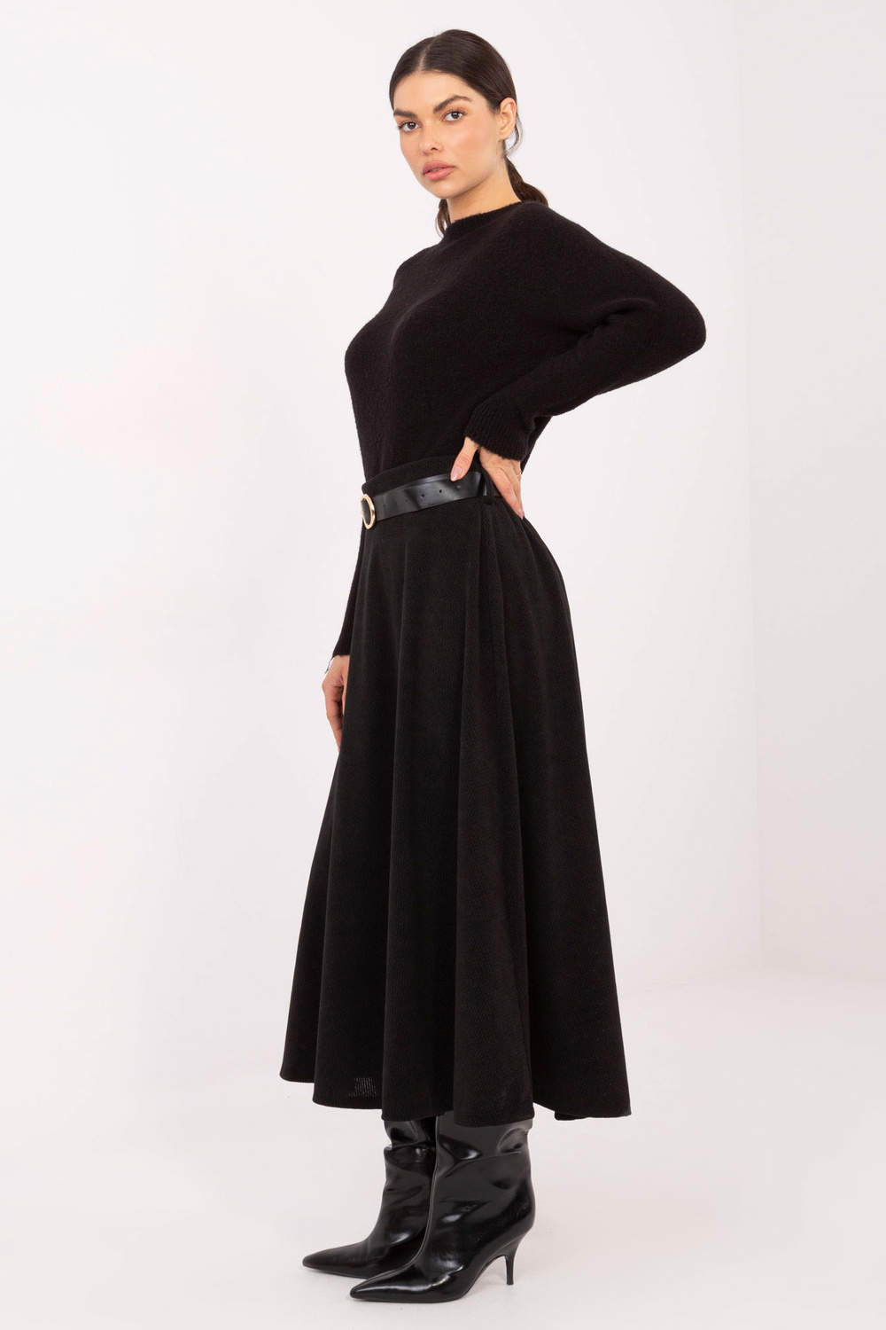 Rozměry sukně univerzální velikosti: šířka pasu - 37 cm (vleže), šířka pasu - 62 cm (natažená), šířka boků - 72 cm, celková délka - 87 cm.