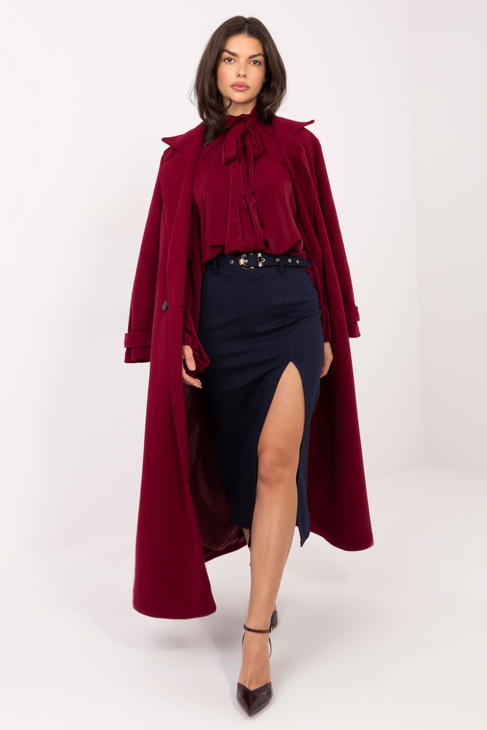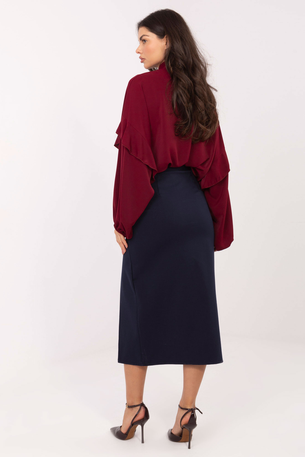 Modelka má na sobě velikost S. Rozměry modelky: výška 173 cm, prsa 85 cm, pas 62 cm, boky 95 cm.