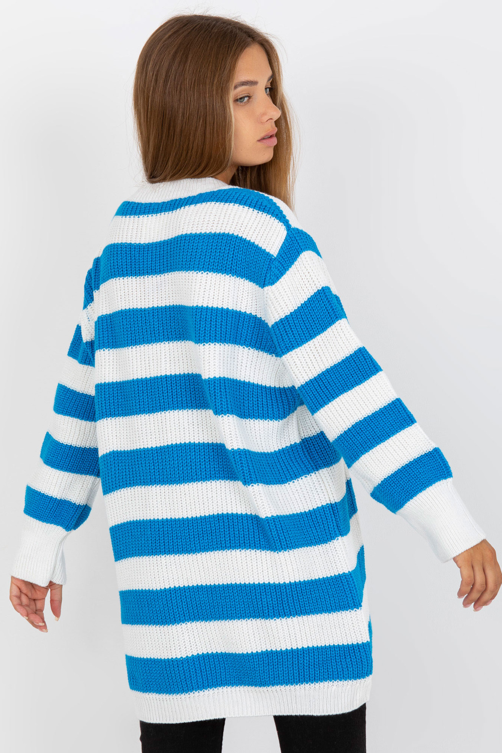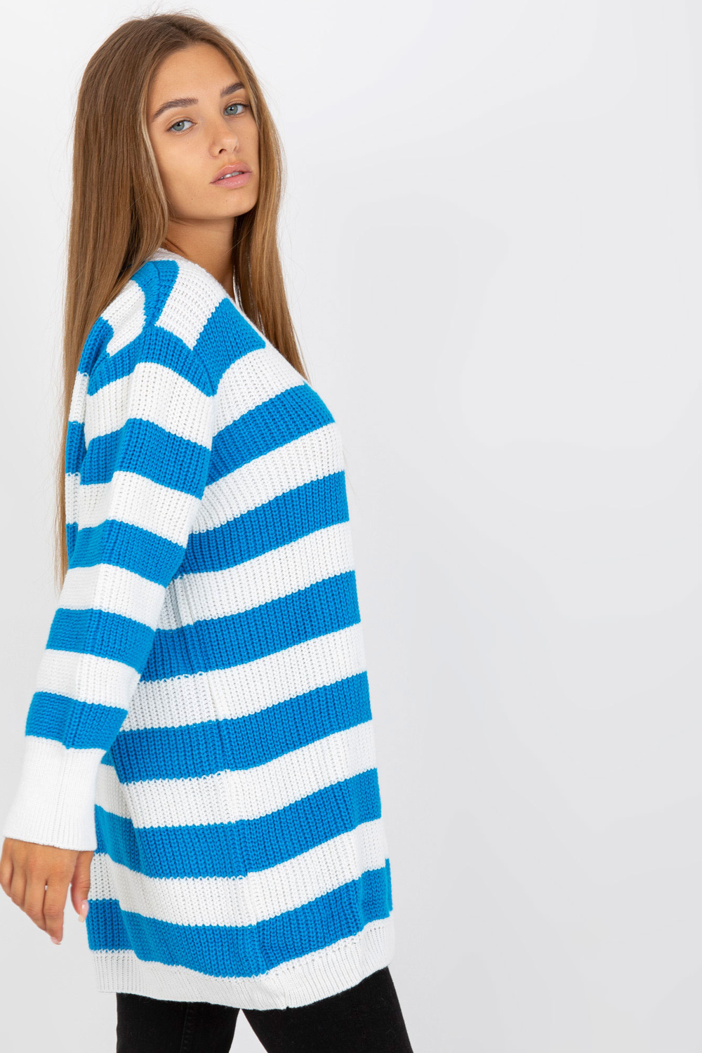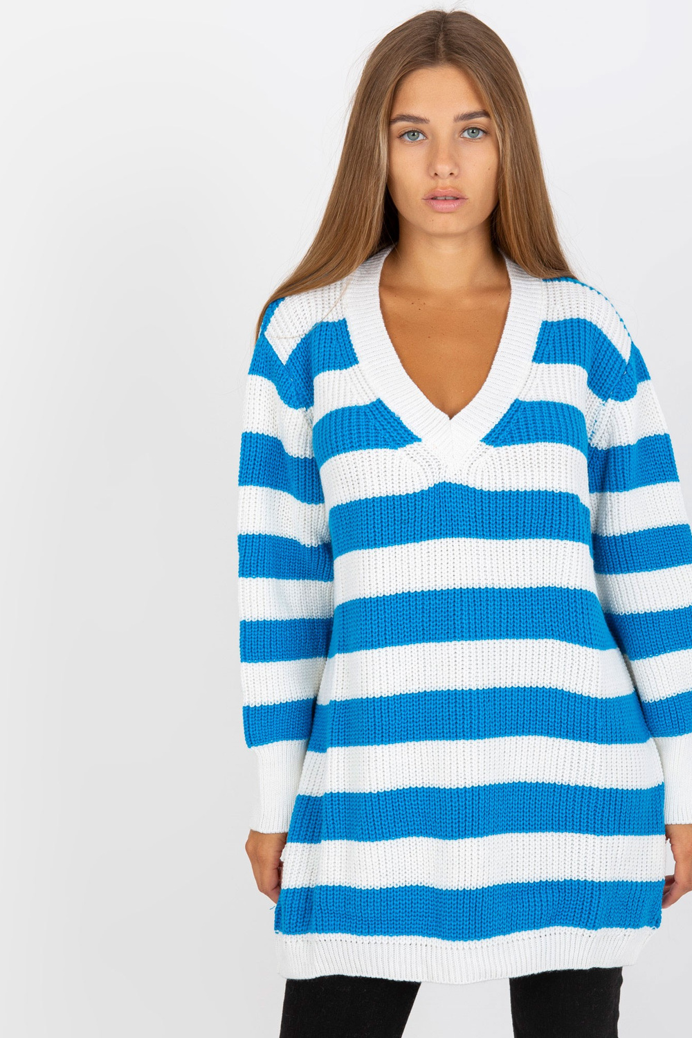 Bílomodrý oversize svetr s vlnou RUE PARIS . Kód produktu: LC-SW-8030.29P dominantní vzor: pruhy Styl: příležitostná příležitost: ležérní, do města, na procházku, do práce Modelka má na sobě velikost jedna. Rozměry modelu: výška 163 cm, prsa 86