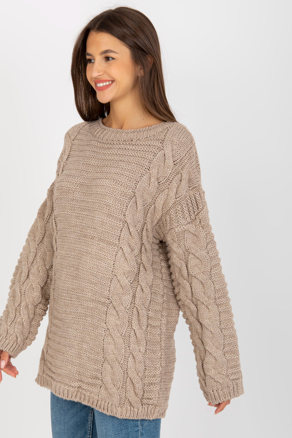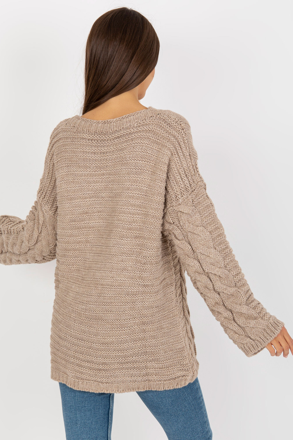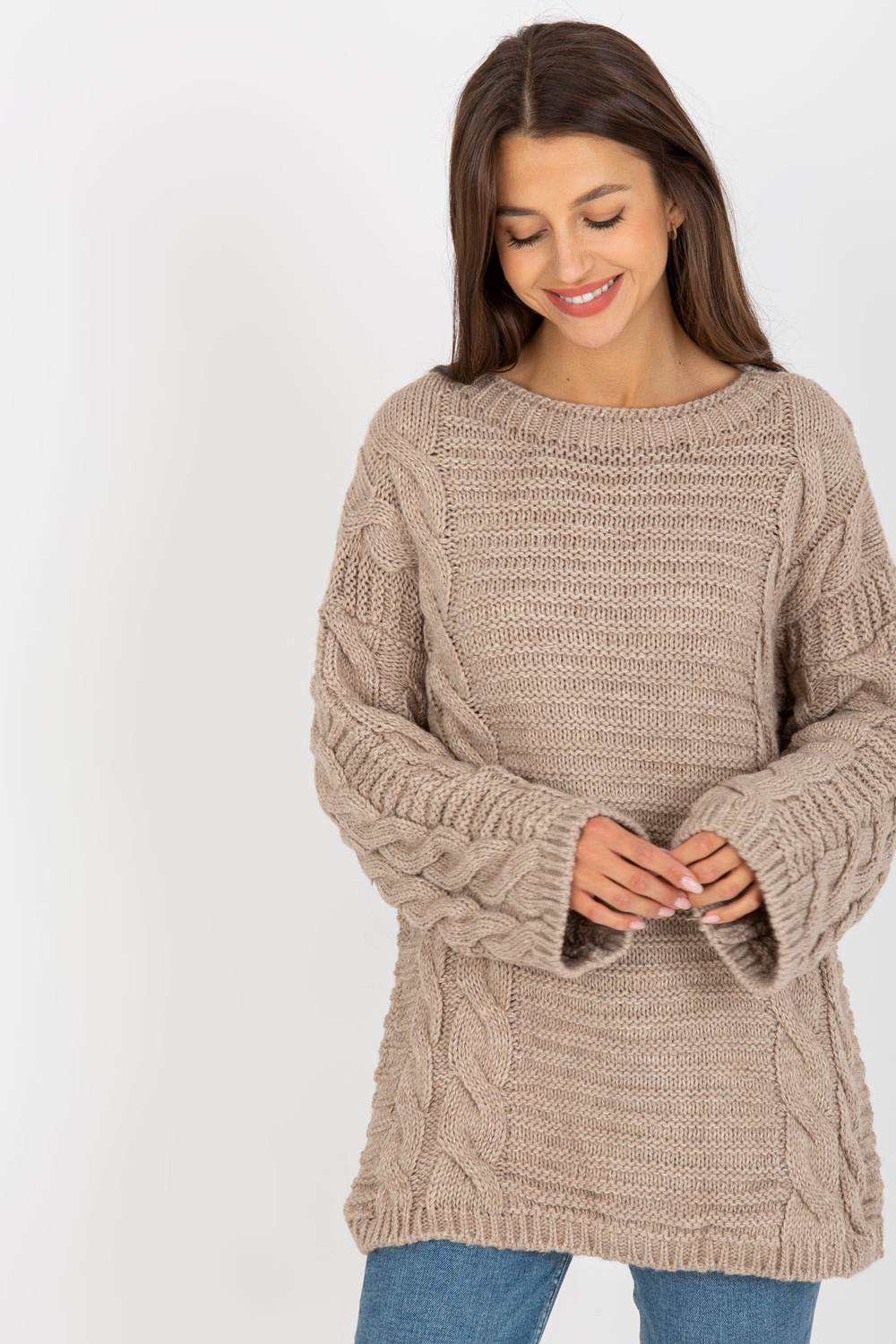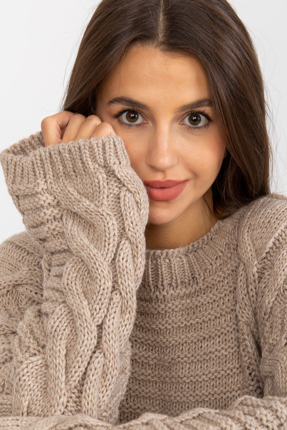 Béžový svetr s copánky a širokými rukávy RUE PARIS . Kód produktu: LC-SW-8044.06X dominantní vzor: hladký Styl: příležitostná příležitost: ležérní, do města, na procházku, do práce Modelka má na sobě velikost jedna. Rozměry modelu: výška 172 cm, prsa 88