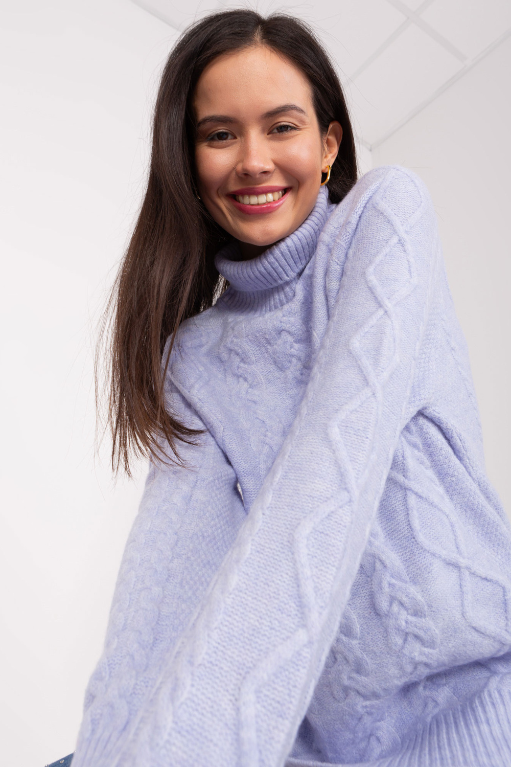 Rozměry svetru ve velikosti one size, měřeno naplocho: šířka pod pažemi - 70 cm, délka rukávu - 60 cm, celková délka - 67 cm