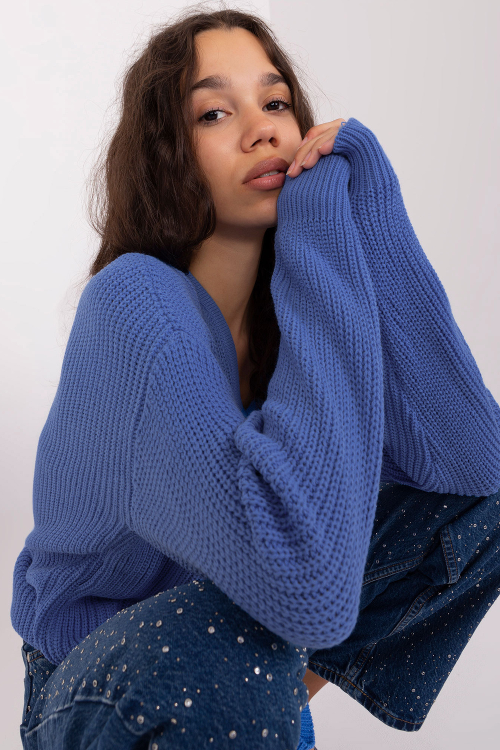 Rozměry svetru ve velikosti one size, měřeno naplocho: šířka pod pažemi - 75 cm, délka rukávu - 68 cm, celková délka - 73 cm.