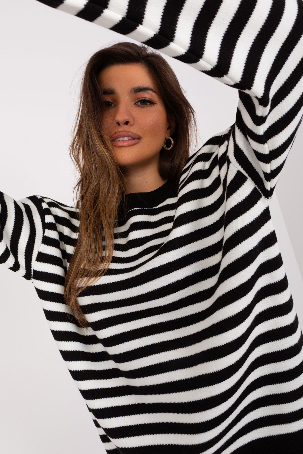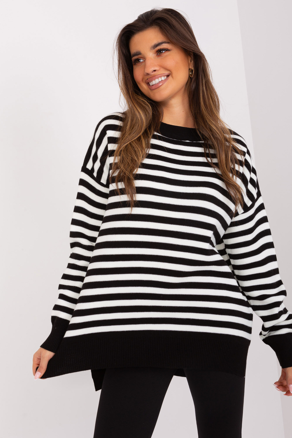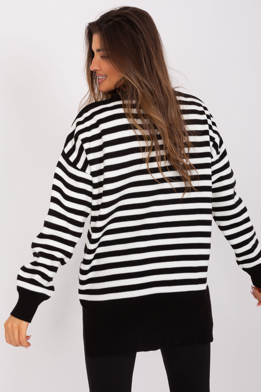 Rozměry svetru ve velikosti one size, měřeno naplocho: šířka pod pažemi - 61 cm, délka rukávu - 60 cm, délka předního dílu - 63 cm, délka zadního dílu - 73 cm.