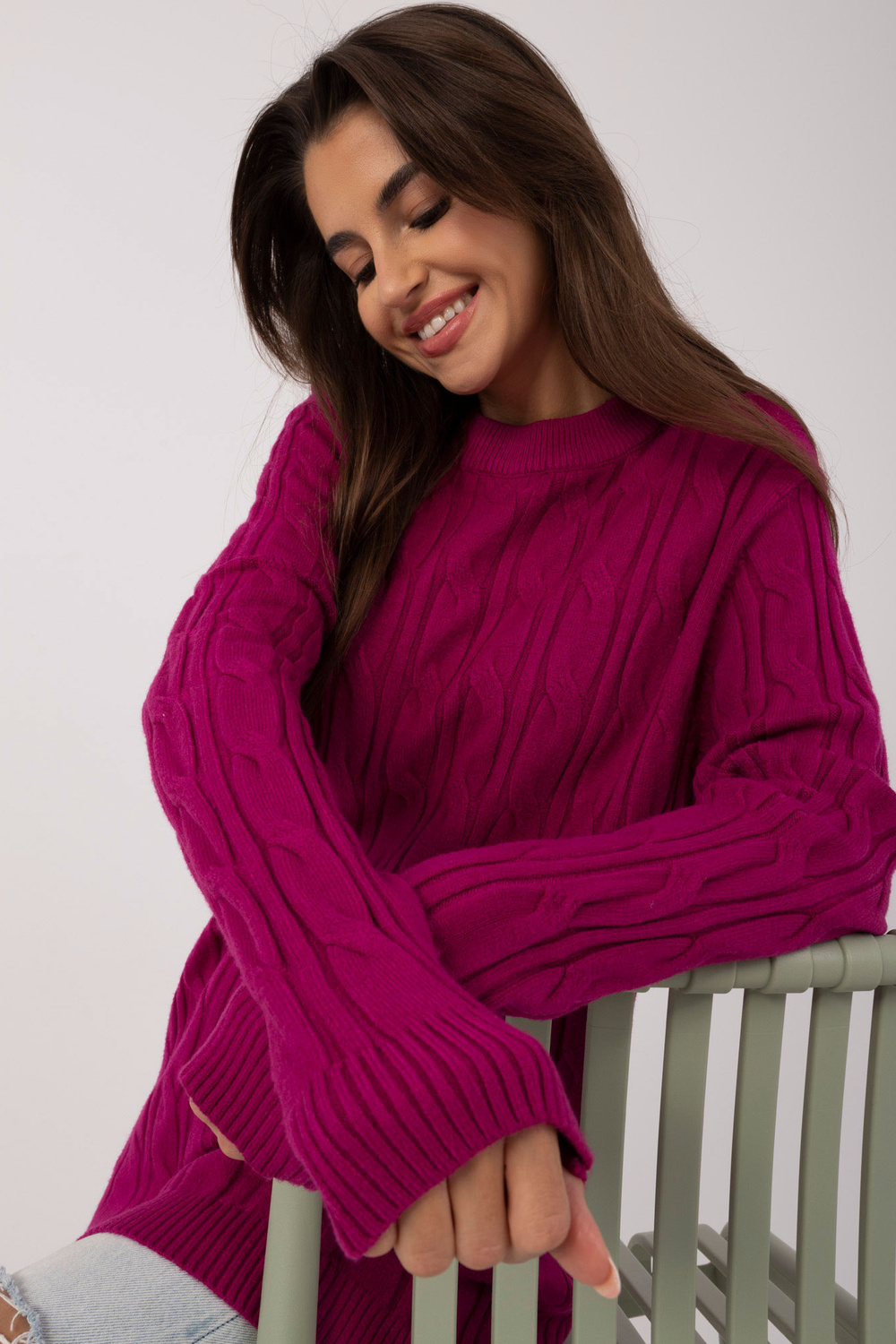 Rozměry svetru v jedné velikosti měřeno naplocho: šířka v podpaží - 55 cm, délka rukávu - 62 cm, celková délka - 74 cm.