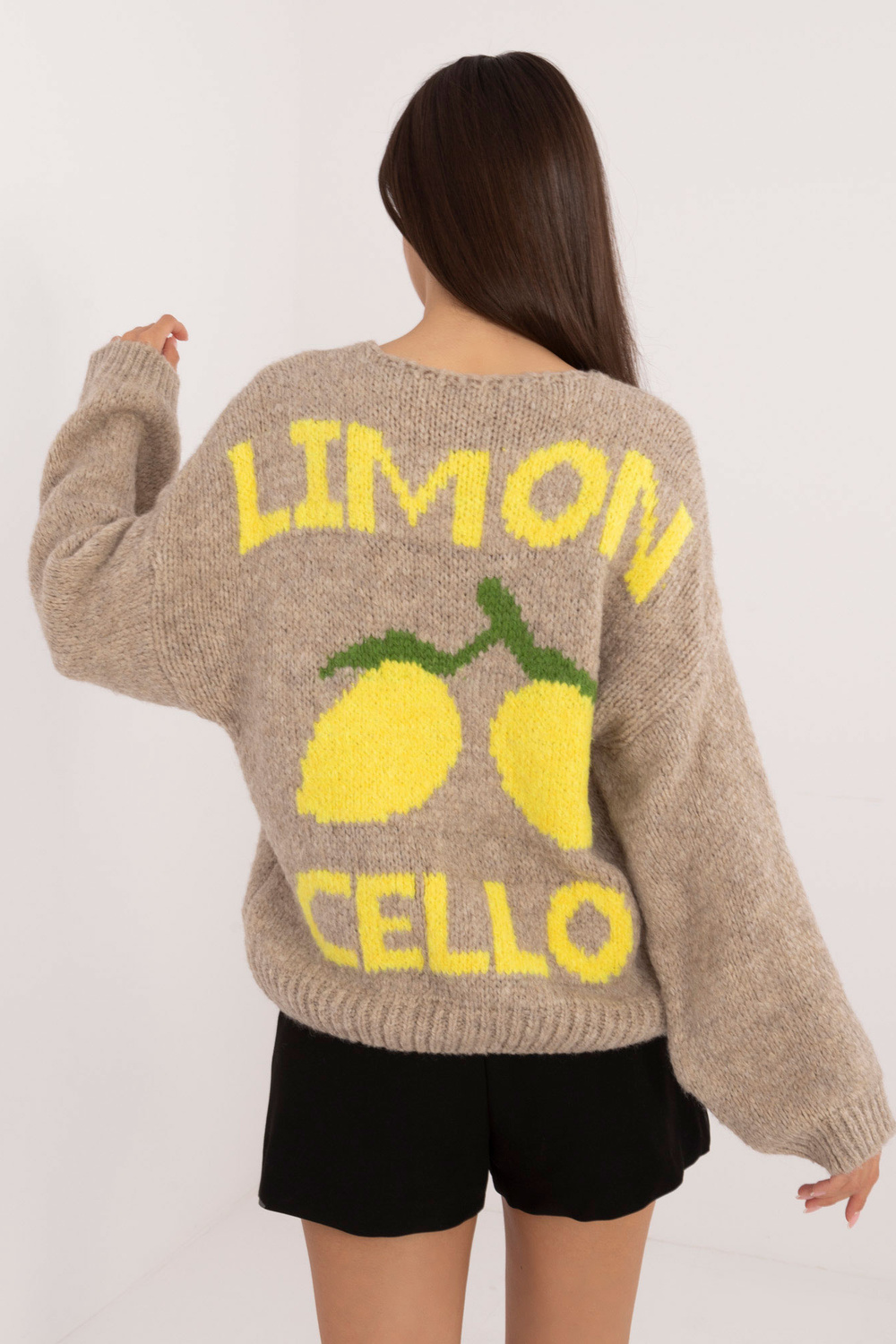 Rozměry svetru v jedné velikosti měřeno naplocho: šířka v podpaží - 62 cm, délka rukávu - 56 cm, celková délka - 57 cm.