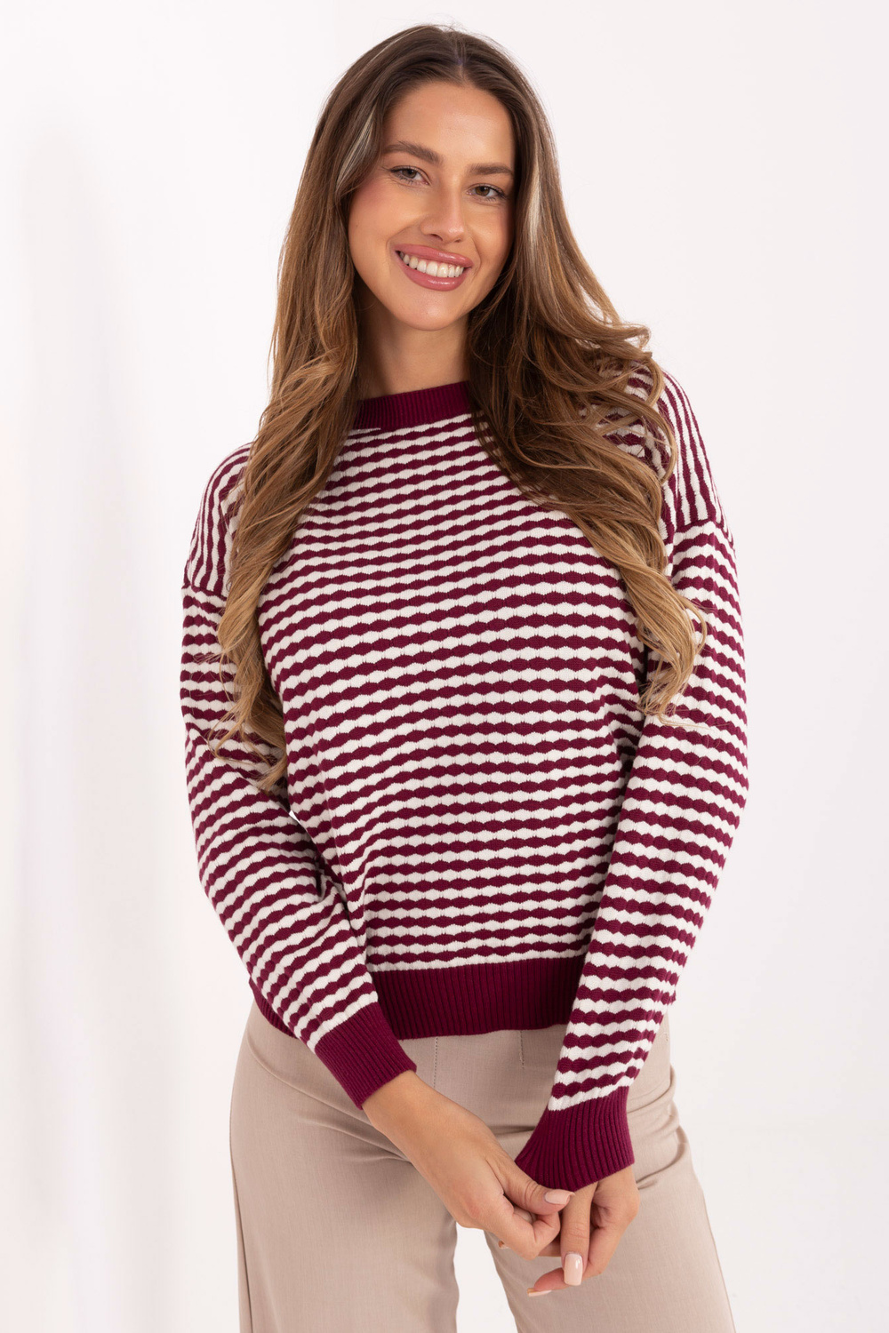 Rozměry svetru jedné velikosti změřené vleže na rovno: šířka pod pažemi - 54 cm, celková délka - 58 cm, šířka přes boky - 46 cm, délka rukávu - 46 cm.