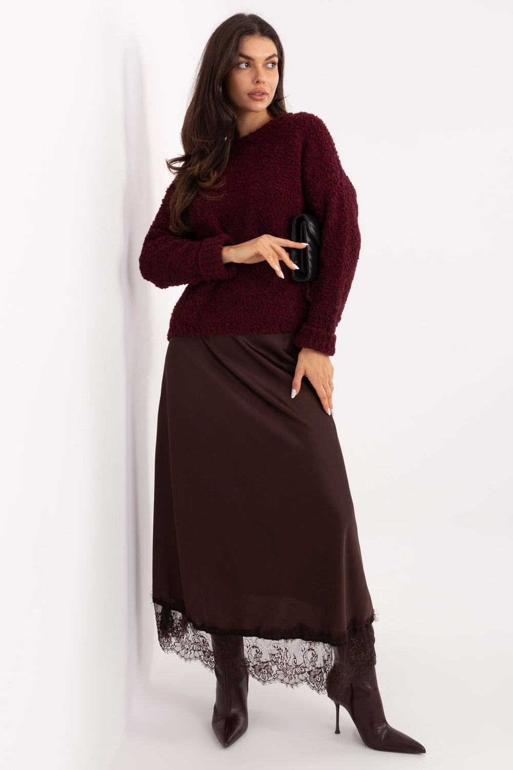 Rozměry svetru one size měřené naplocho: šířka pod pažemi – 60 cm, celková délka – 59 cm, délka rukávu – 42 cm (od švu), šířka v bocích – 56 cm.
