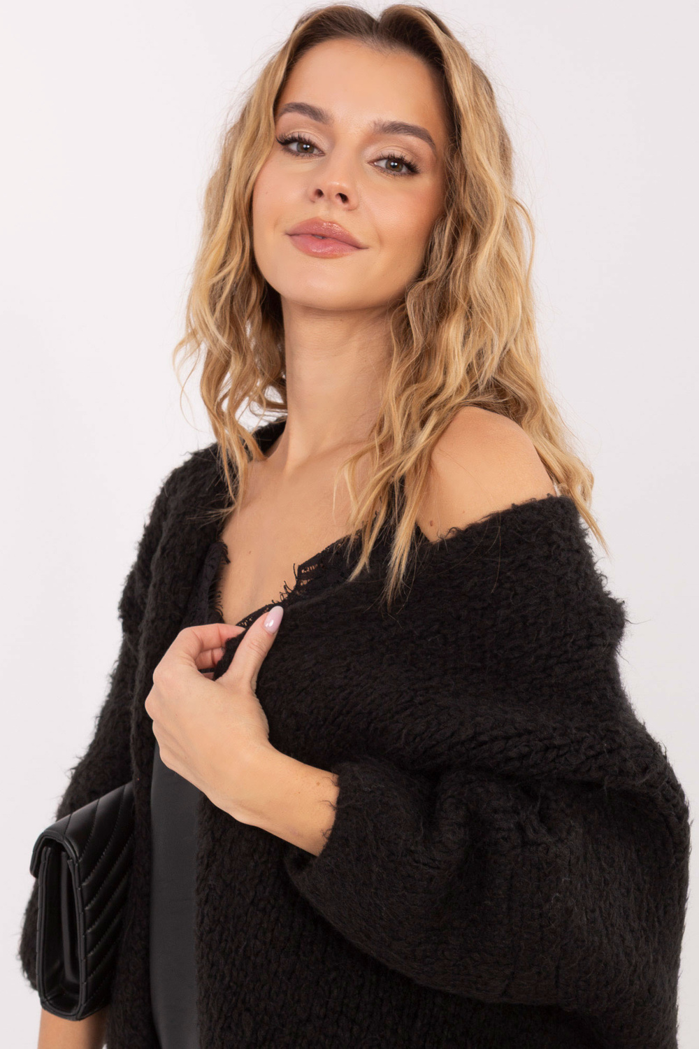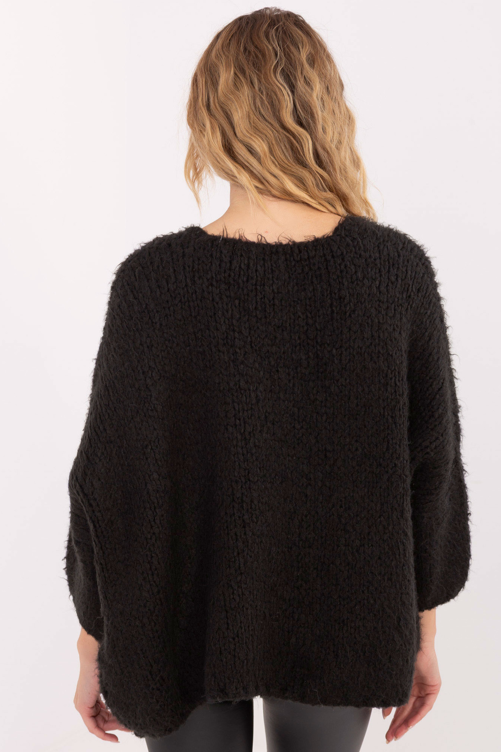 Rozměry svetru v jedné velikosti, měřené na rovné ploše: šířka podpaží - 89 cm, šířka boků - 75 cm, délka rukávu - 20 cm (od švu), celková délka - 67 cm.