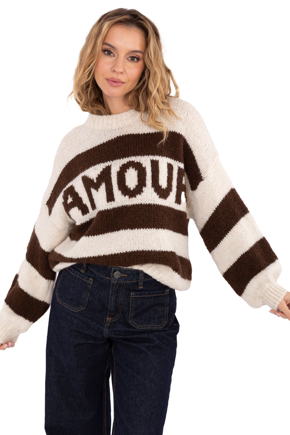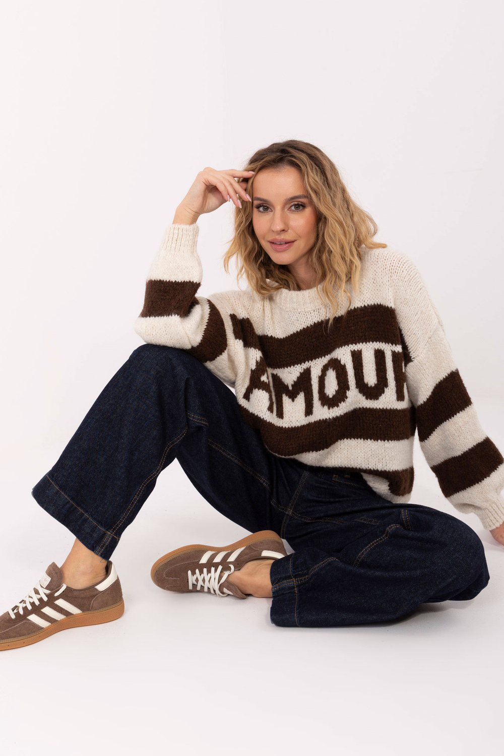 Rozměry svetru velikosti one size, měřeno vleže: šířka pod pažemi – 61 cm, šířka přes boky – 49 cm, délka rukávu – 49 cm (od švu), celková délka – 58 cm.