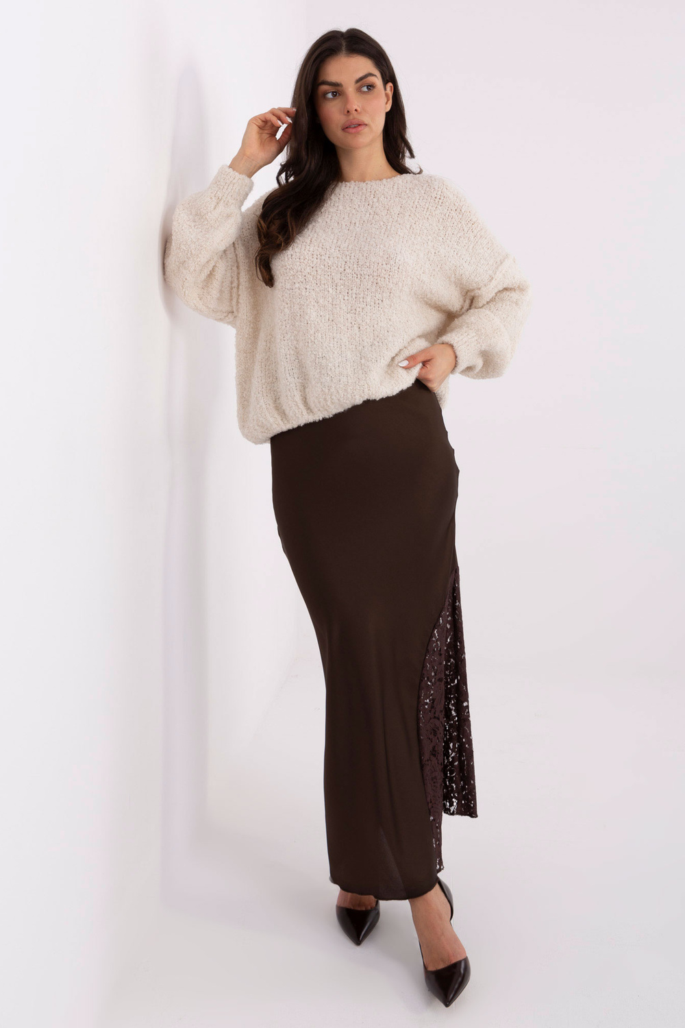 Modelka nosí velikost one size. Rozměry modelky: výška 173 cm, hrudník 85 cm, pas 62 cm, boky 95 cm.