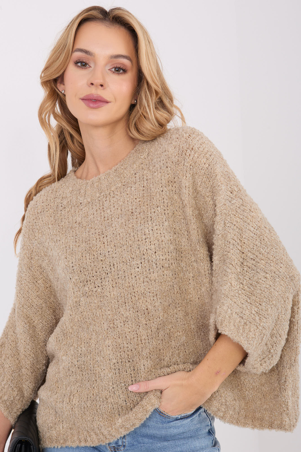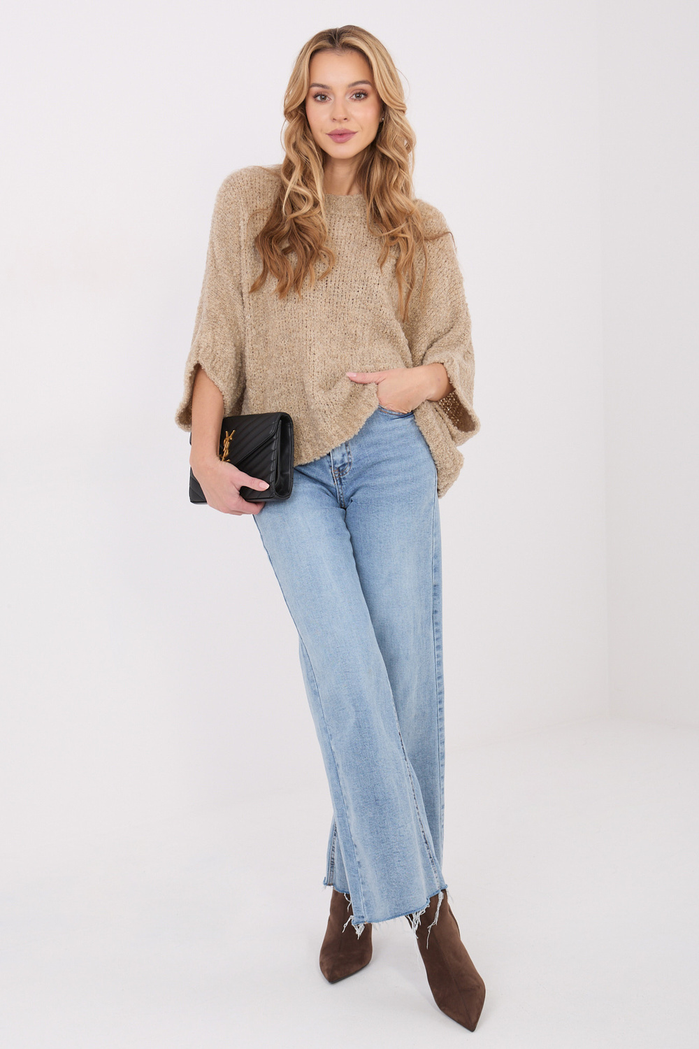 Rozměry svetru jedné velikosti měřené rozložené: šířka pod pažemi – 72 cm, celková délka – 57 cm, délka rukávu – 50 cm (od švu), šířka přes boky – 65 cm.