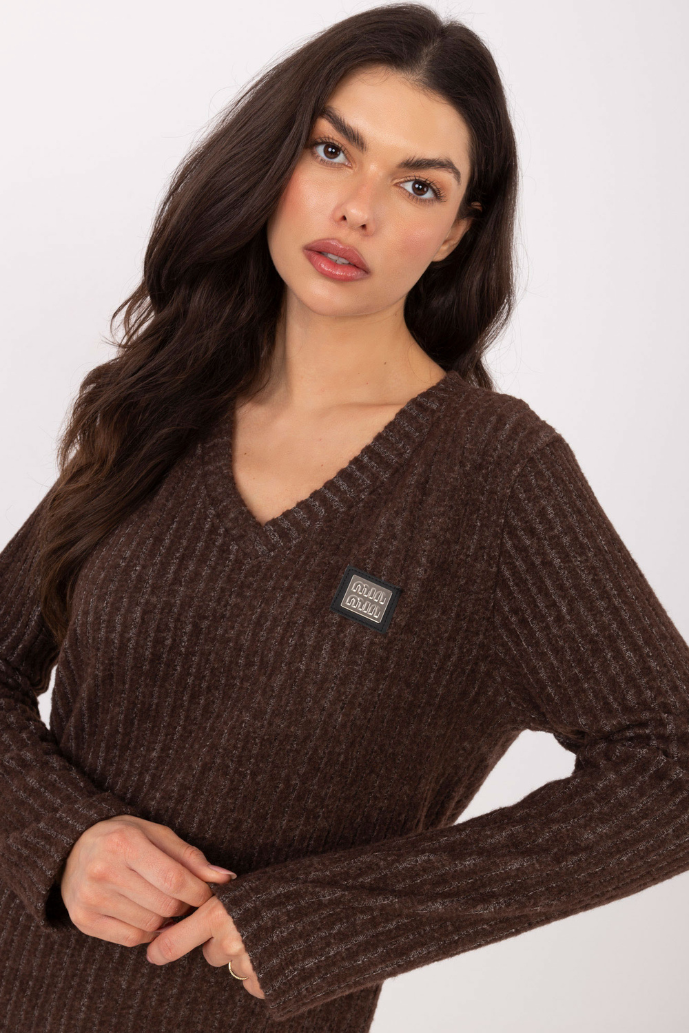 Rozměry svetru univerzální velikosti měřené vleže: šířka pod pažemi – 52 cm, šířka v bocích – 52 cm, délka rukávu – 60 cm, celková délka – 62 cm.