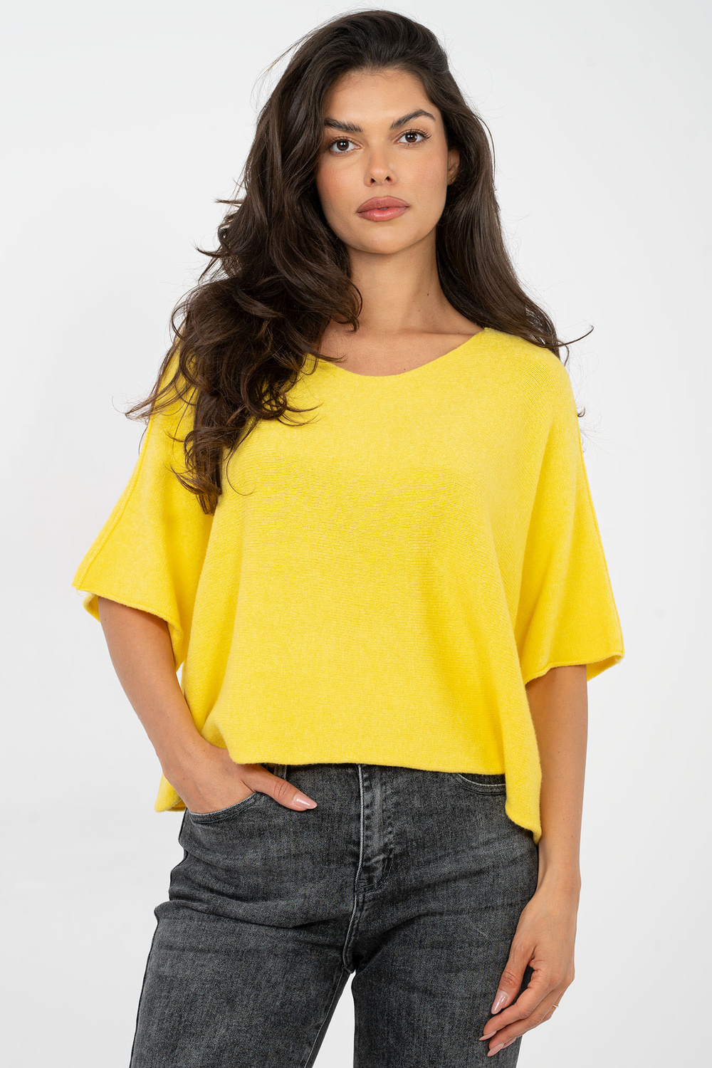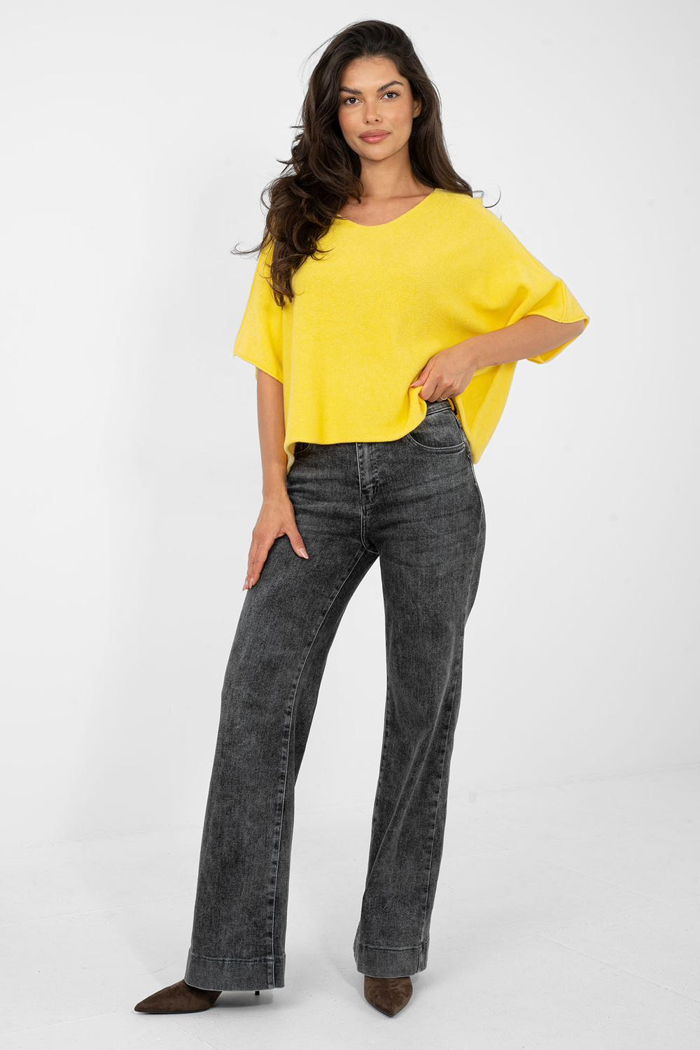 Modelka nosí oděv jedné velikosti. Rozměry modelky: výška 173 cm, obvod hrudníku 85 cm, pas 62 cm, boky 95 cm.