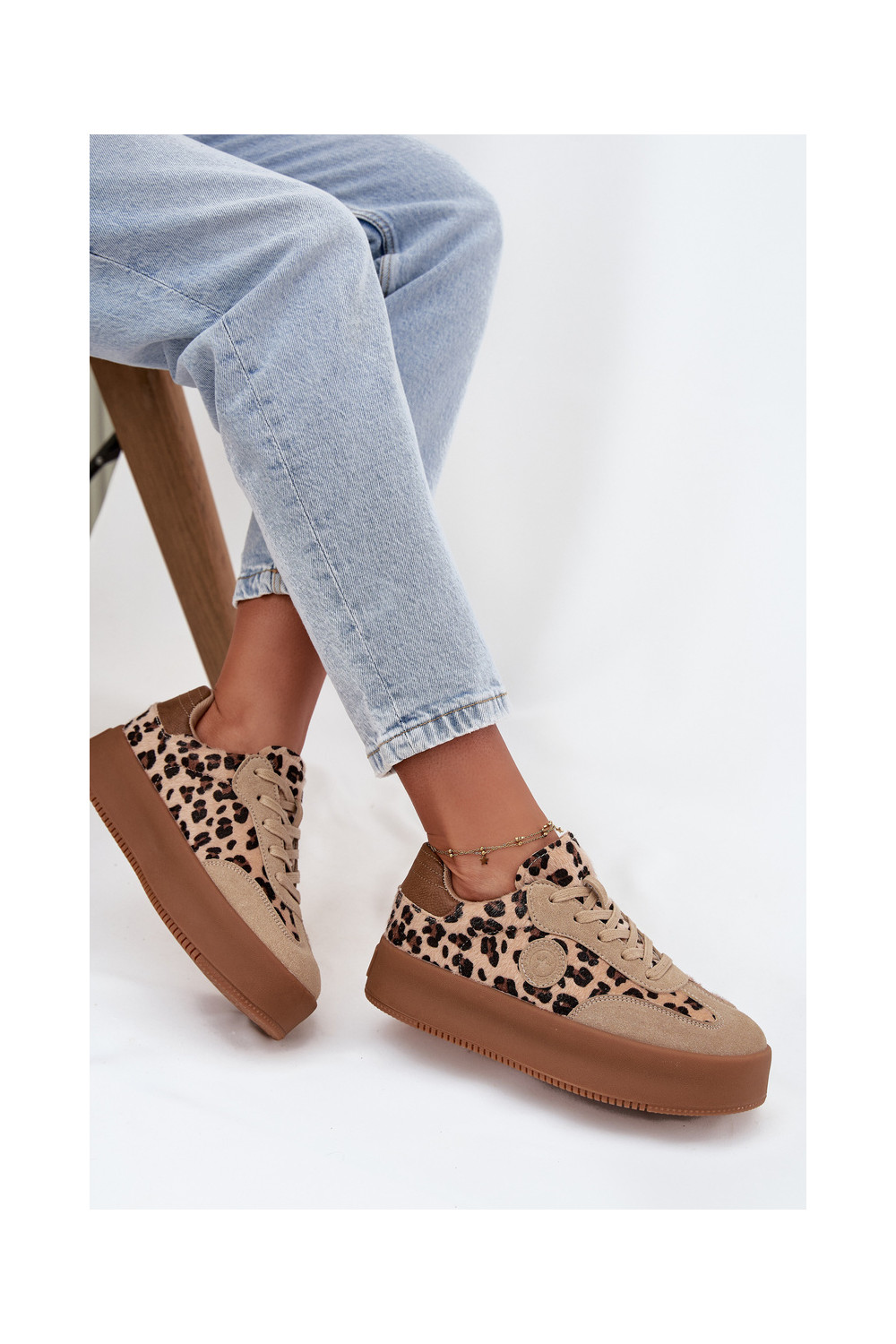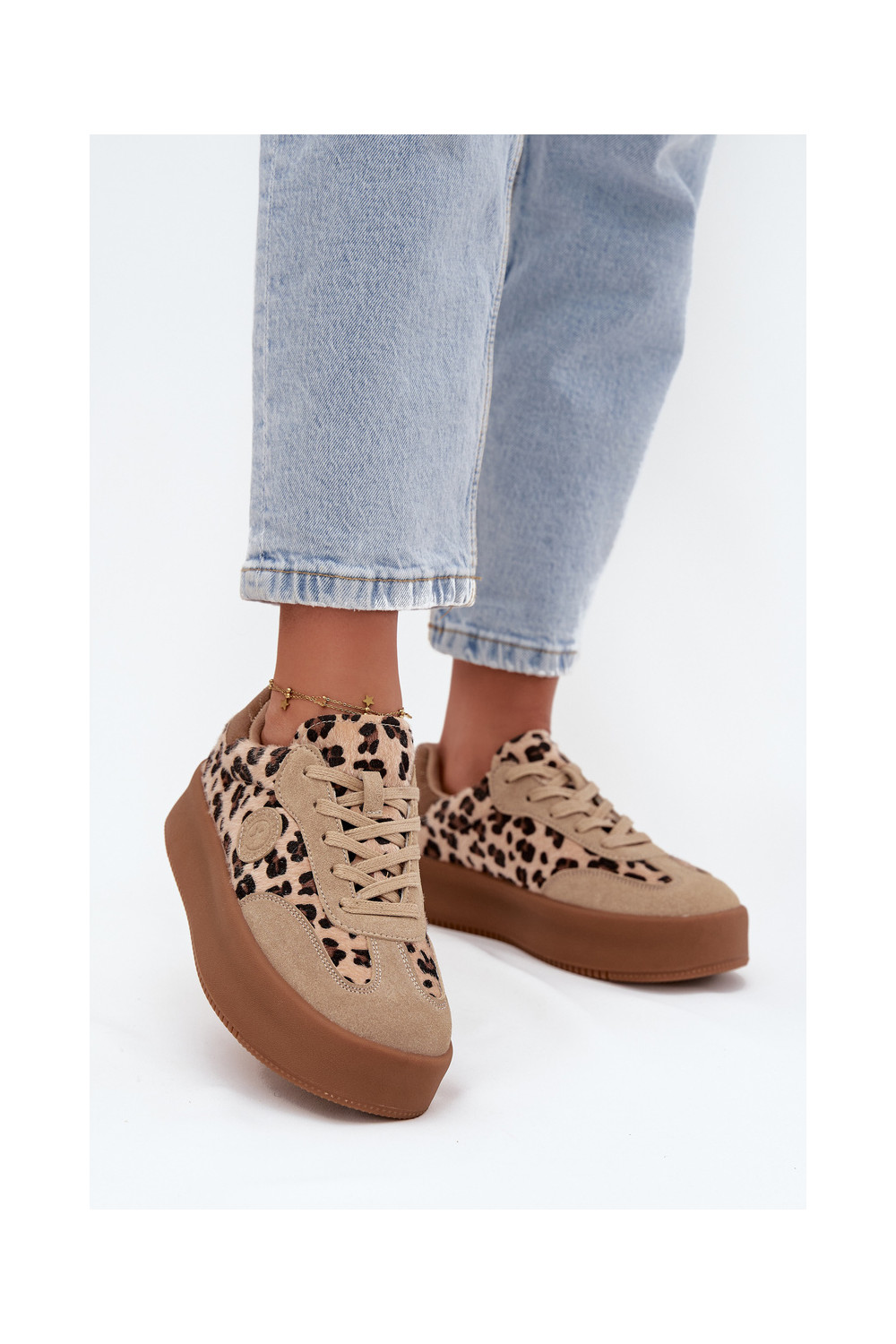 Tenisky s platformou se vzory leopardí kožešiny Big Star SS274763 béžové