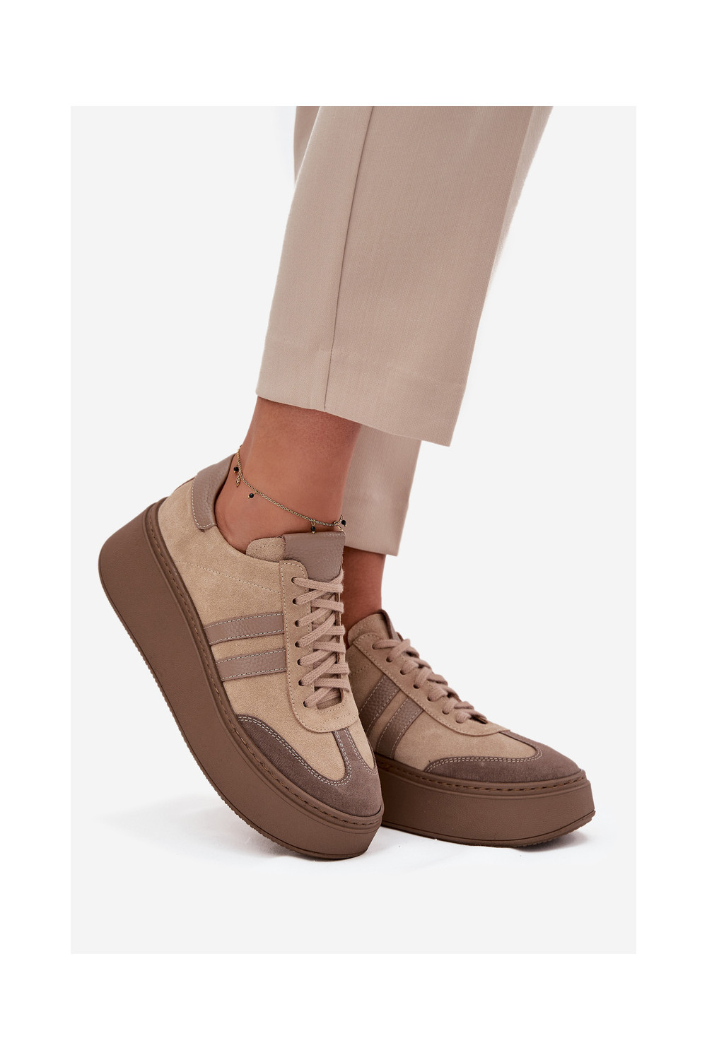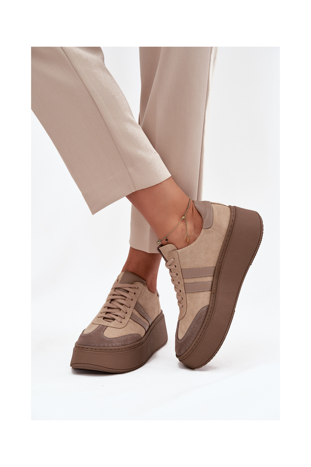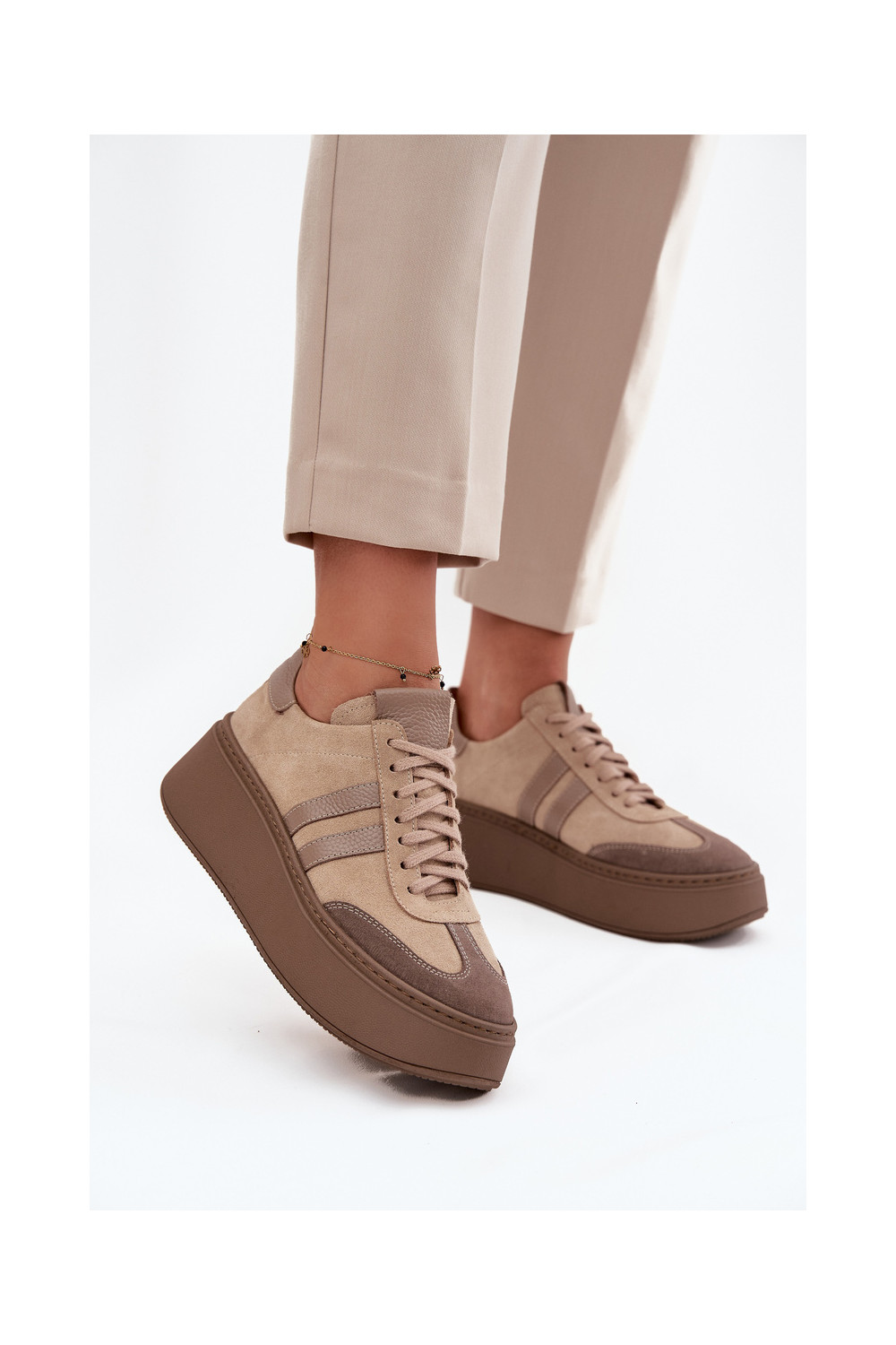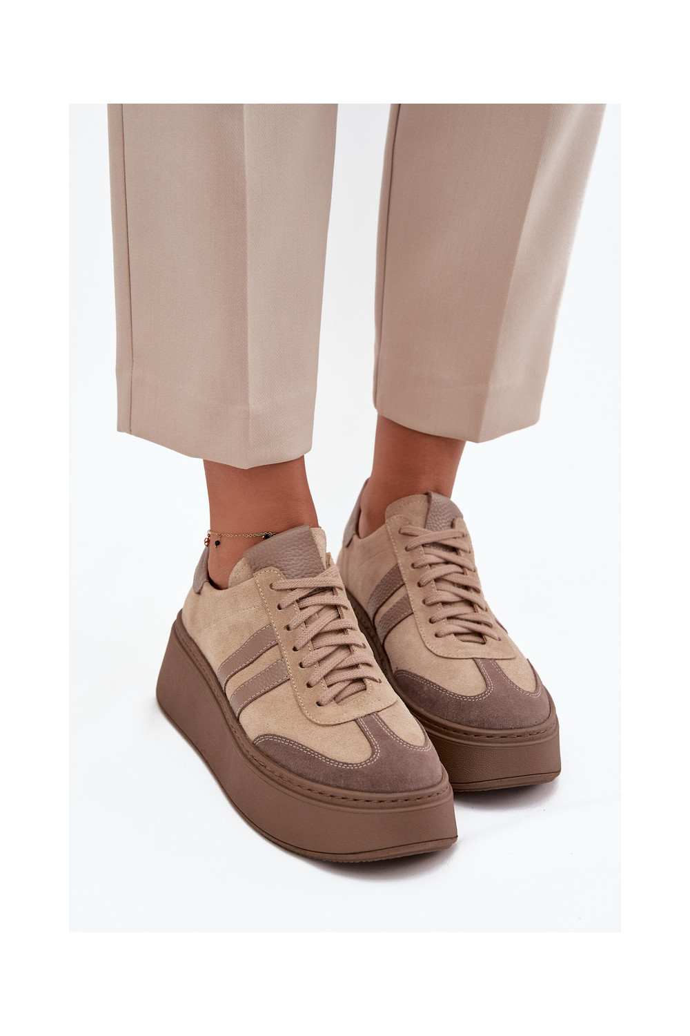 ze semiše Tenisky s platformou Zazoo 3775 béžové