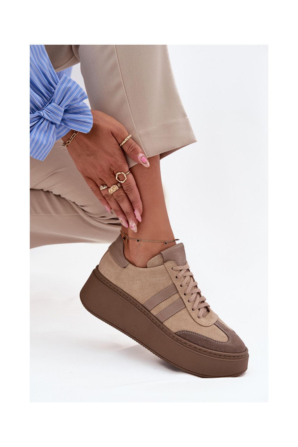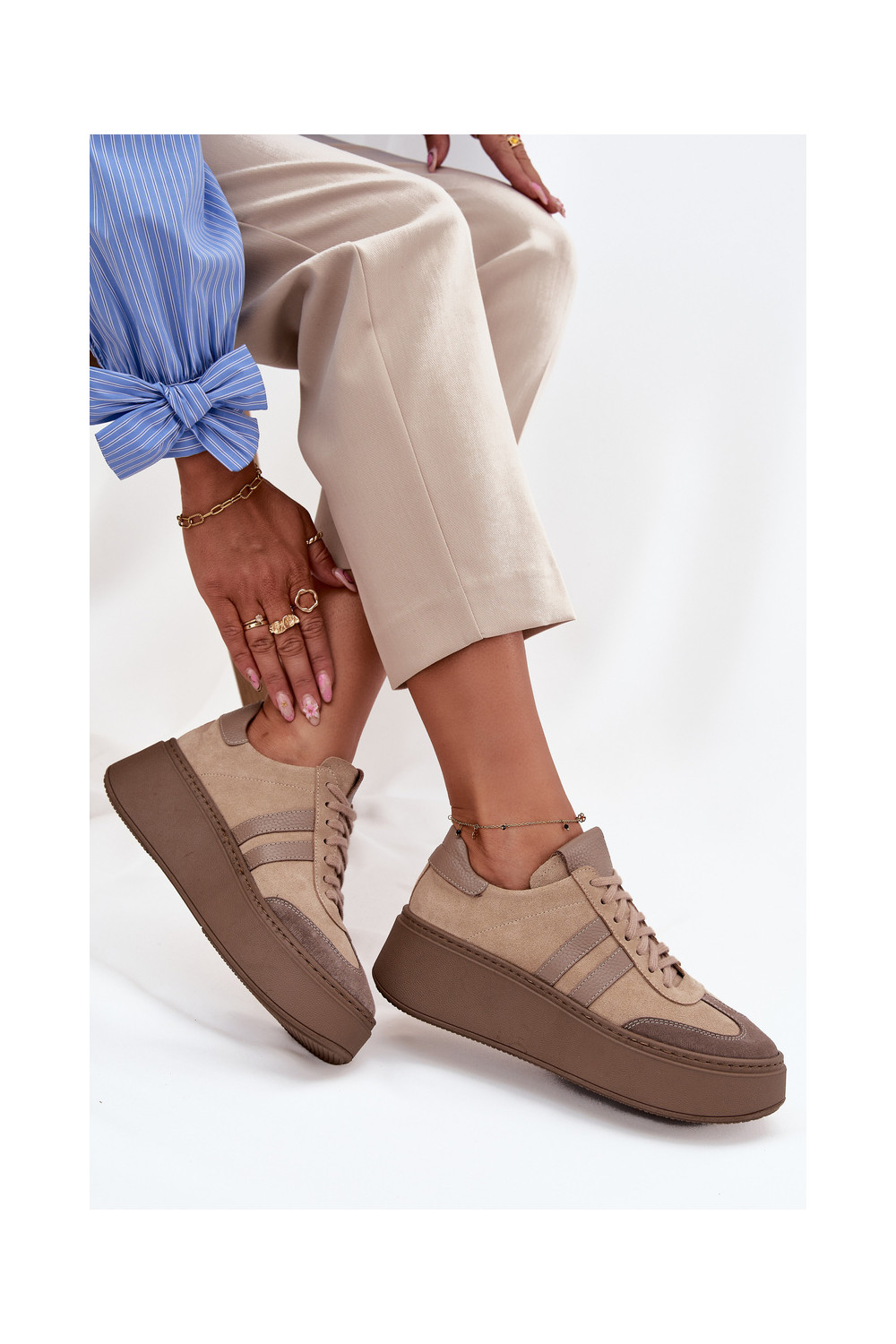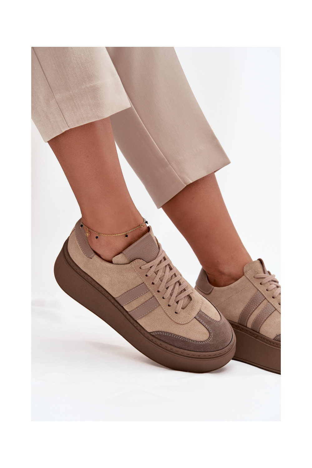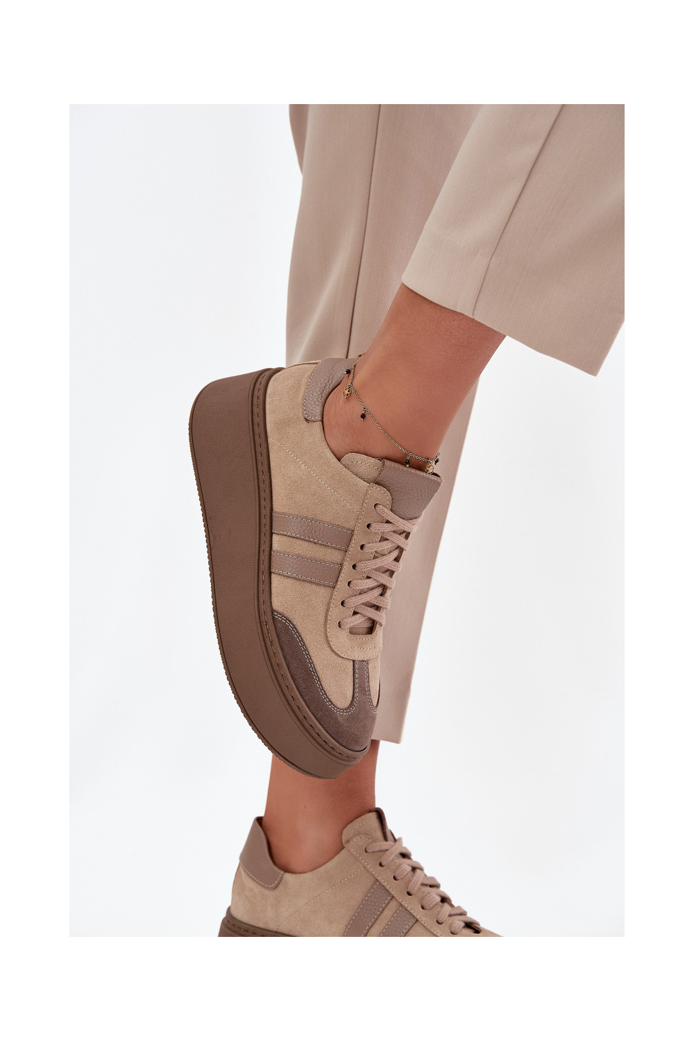 ze semiše Tenisky s platformou Zazoo 3775 béžové