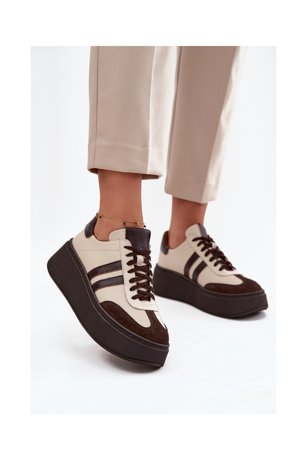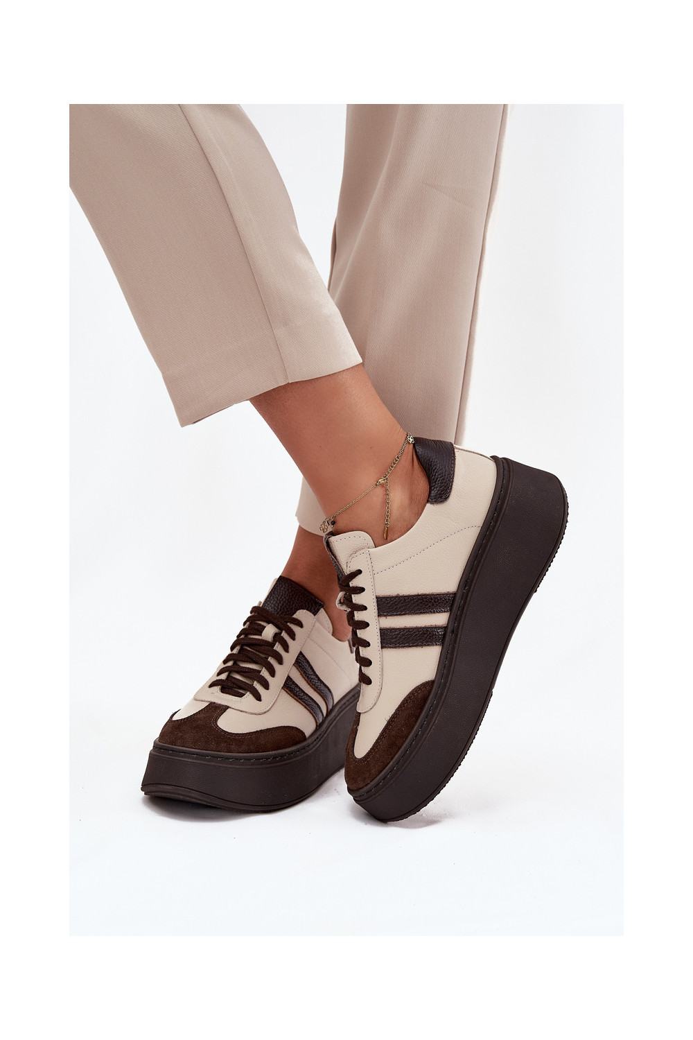 Tenisky s platformou Zazoo 3775 béžové-Czekoladowe