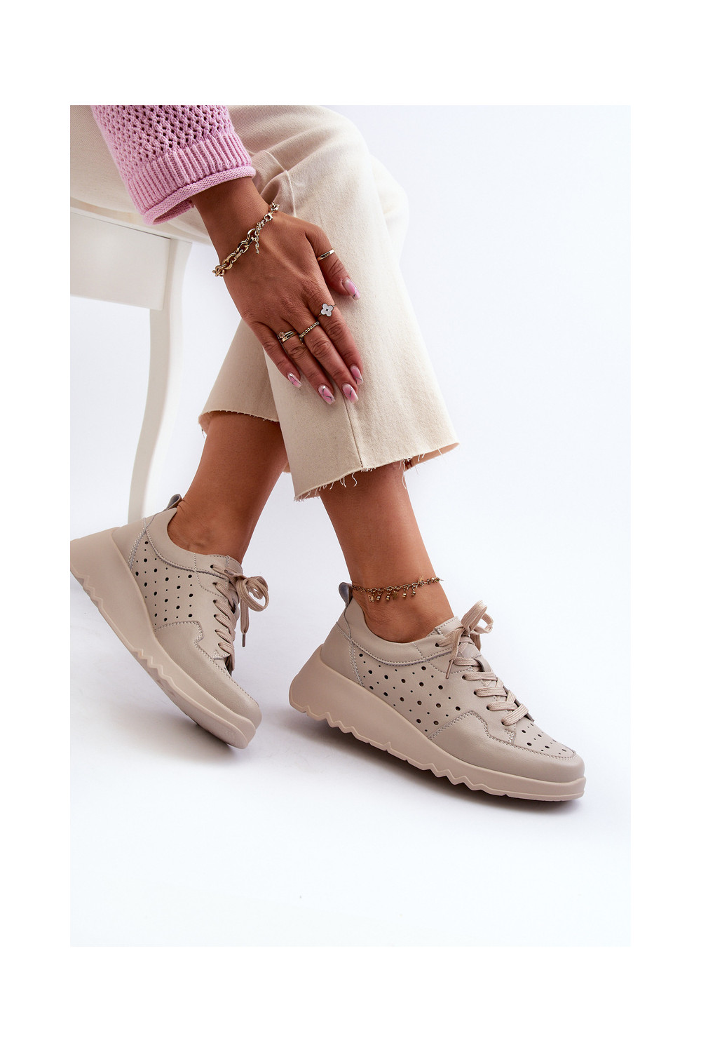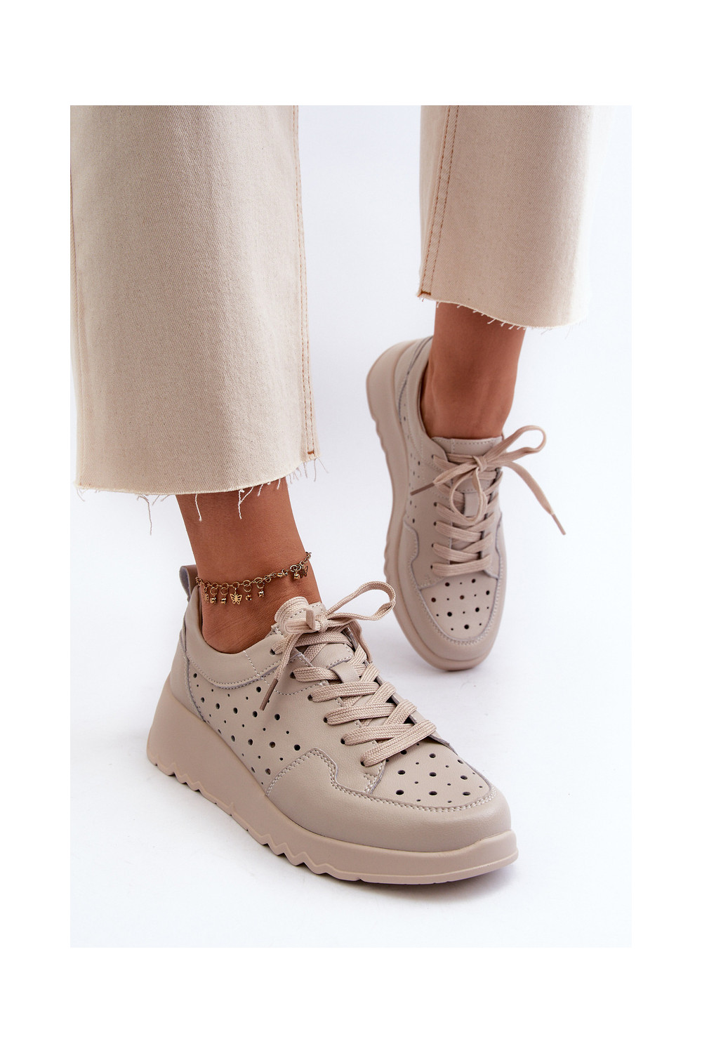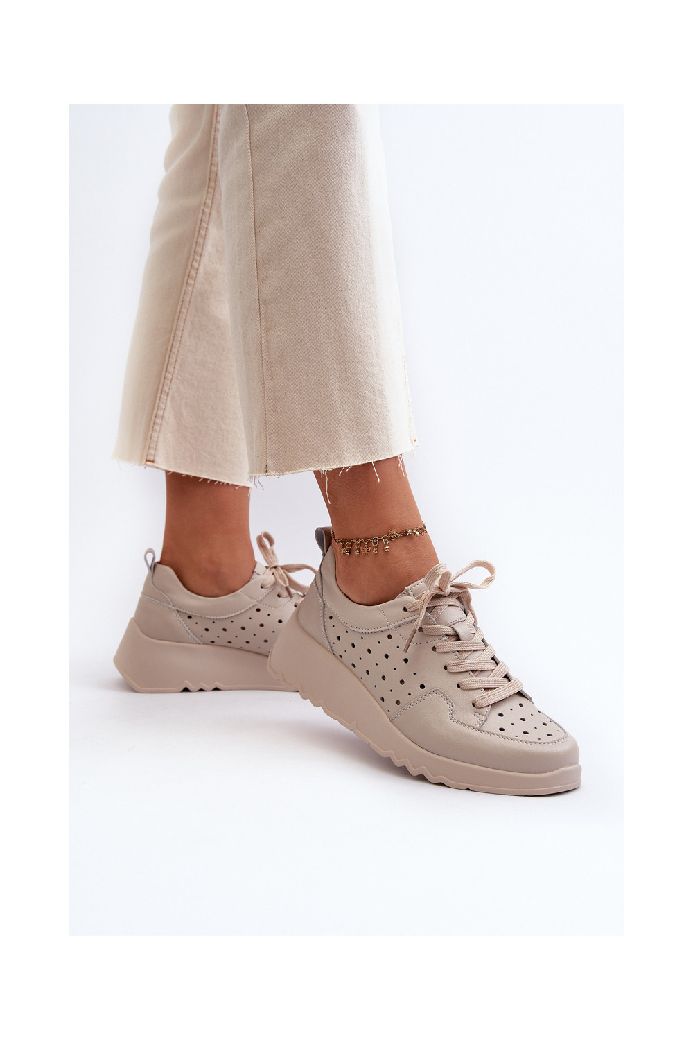 s ažurovými prvky Tenisky pravá kůže béžové S.Barski LR482