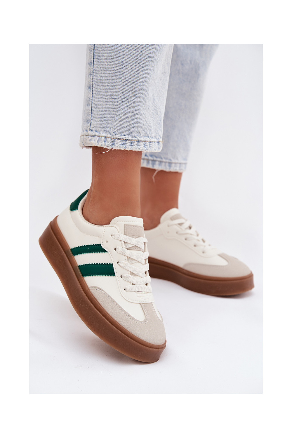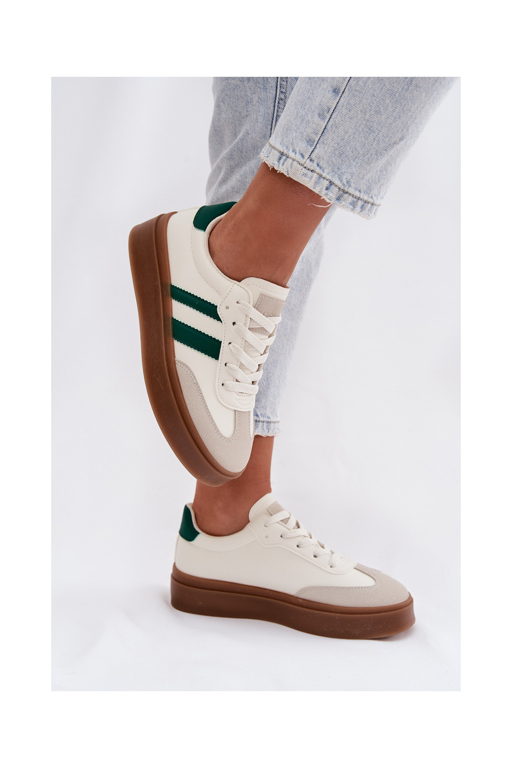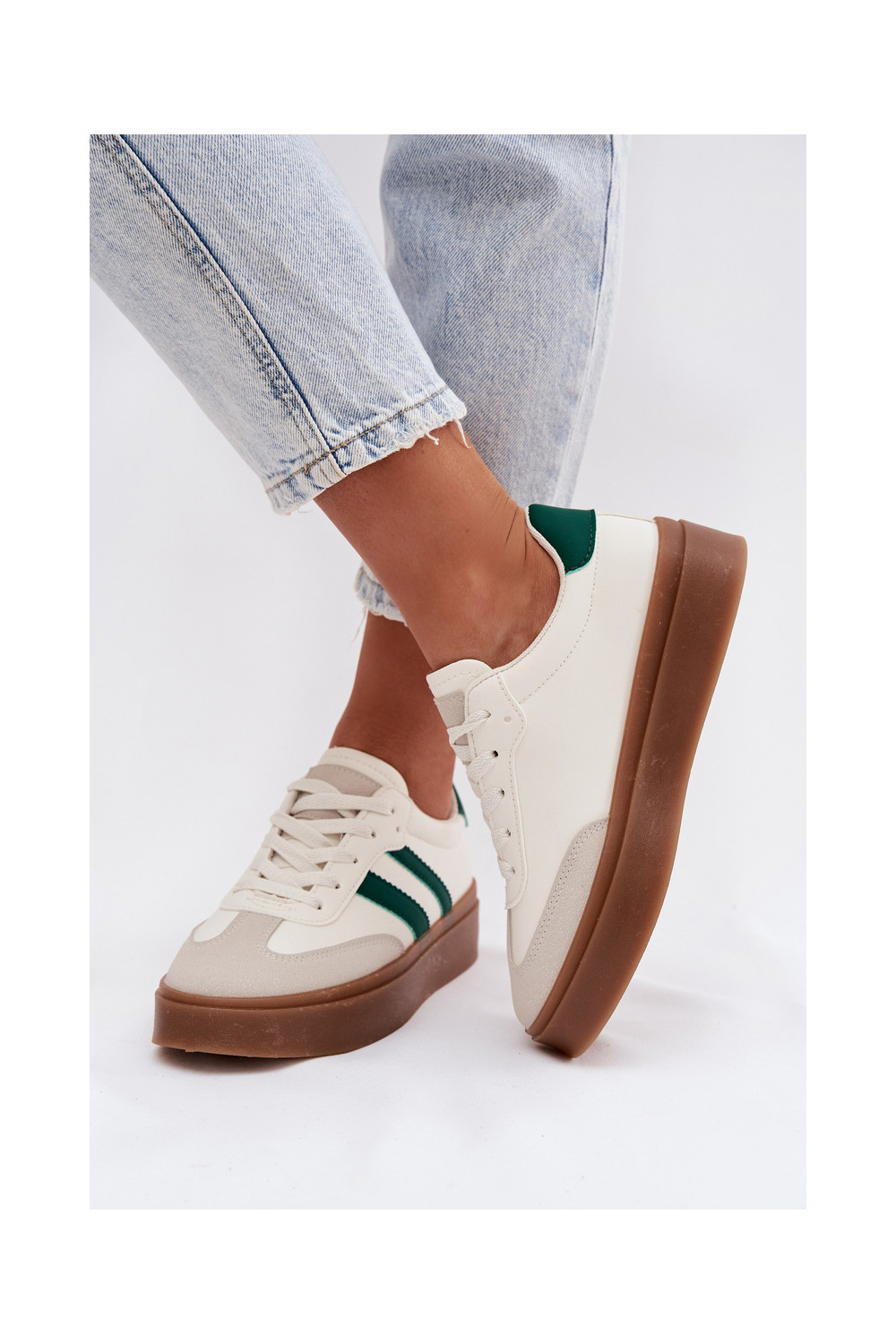 Tenisky s platformou z ekologické kůže Bílá-zelené Elaraven