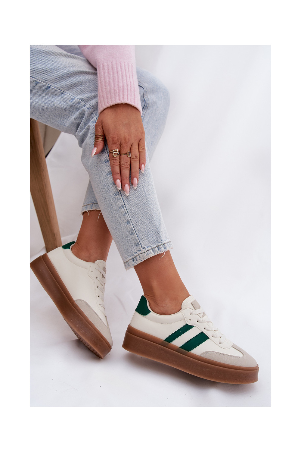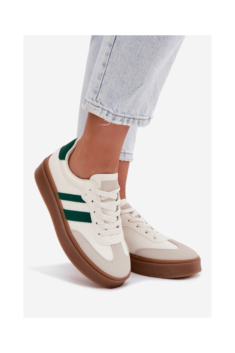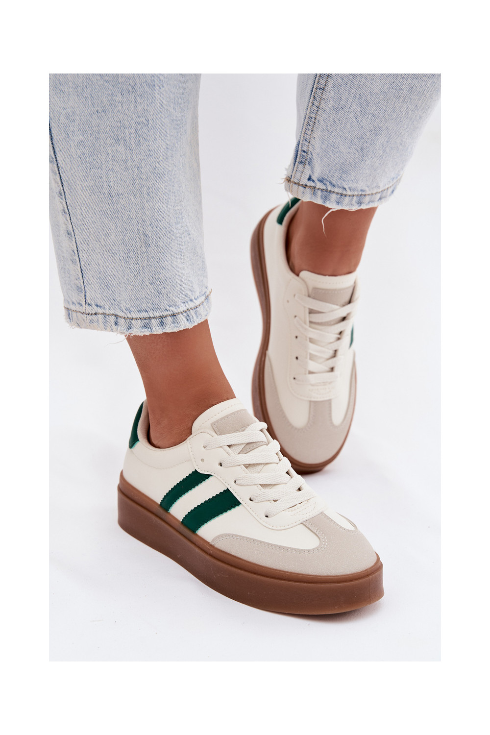 Tenisky s platformou z ekologické kůže Bílá-zelené Elaraven