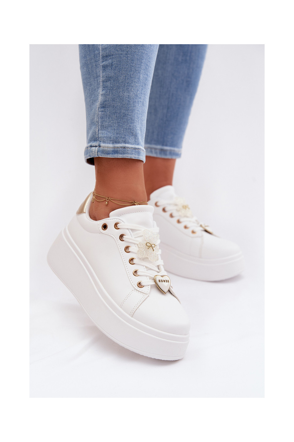 Tenisky s platformou Z Przypinkami Medvídci se srdíčky Bílá-zlaté barvy Selorissa