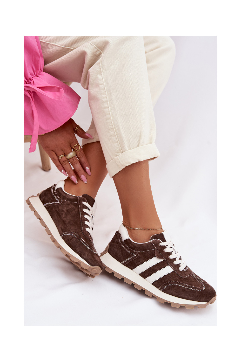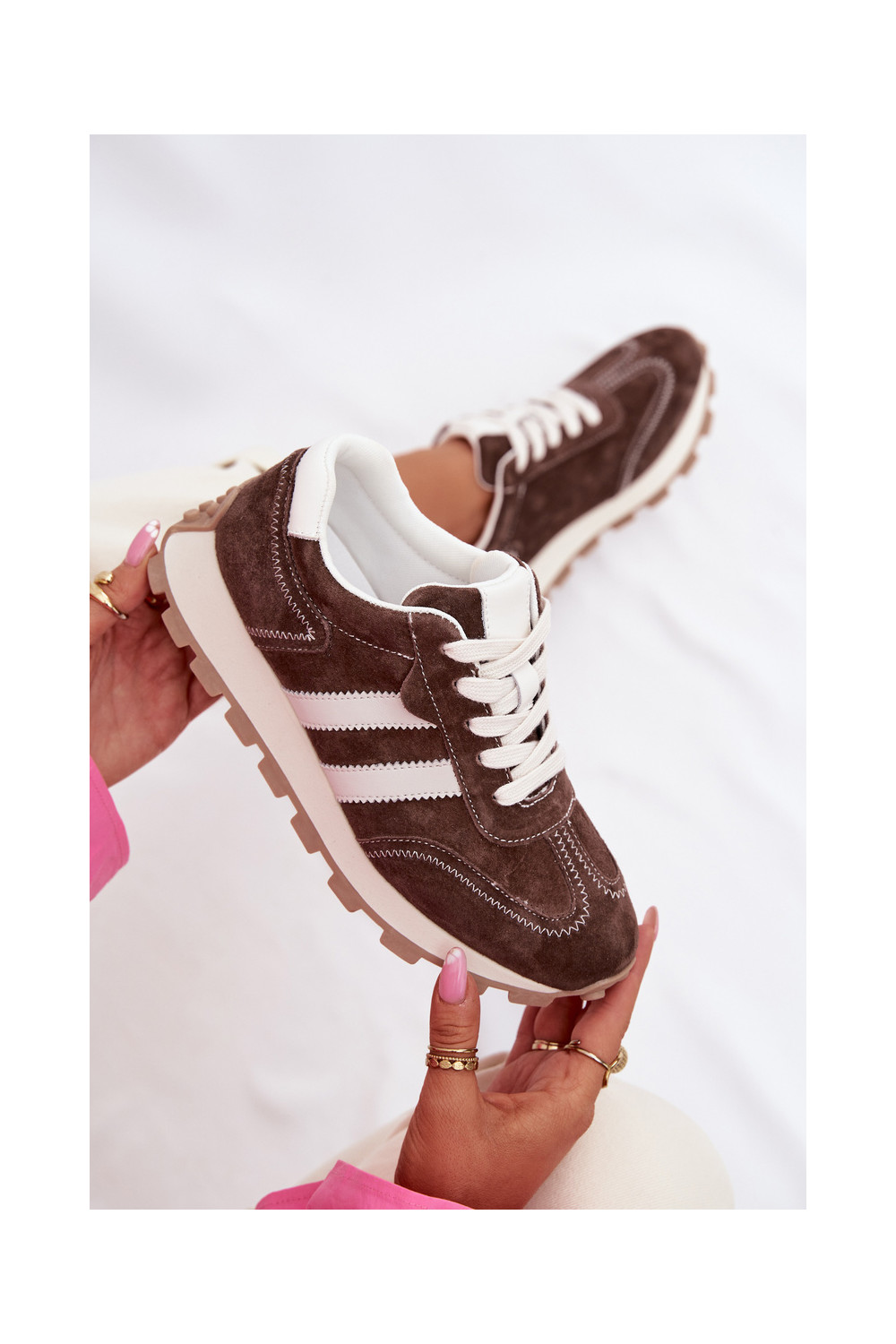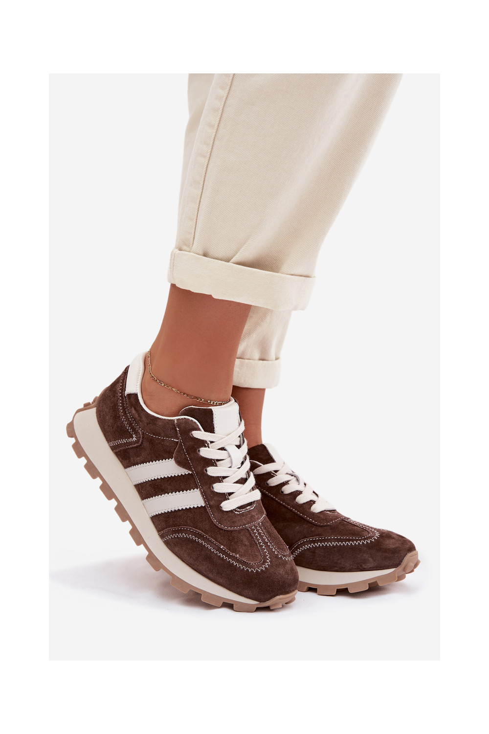 ze semiše Tenisky s platformou S.Barski LR61-7097 Czekoladowe