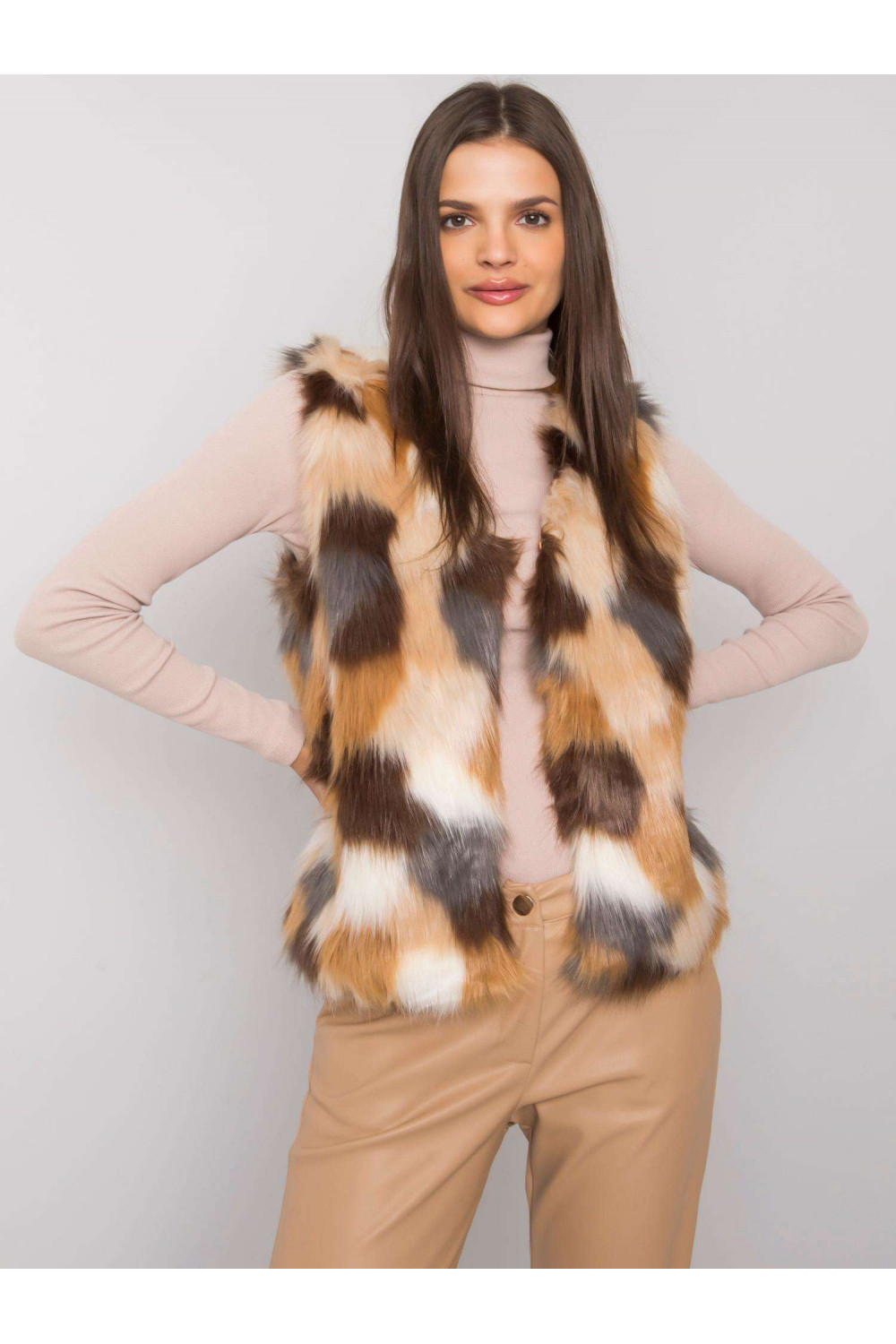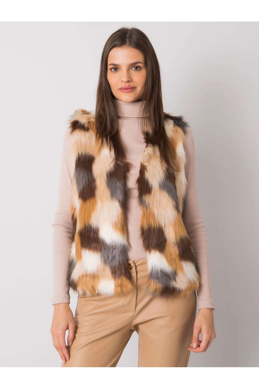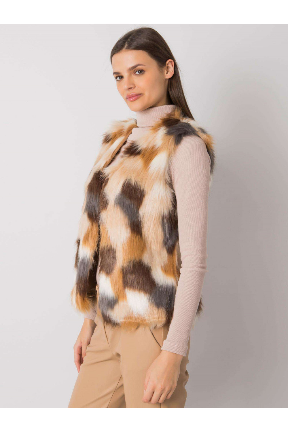 Béžová vesta z umělé kožešiny Dillie.