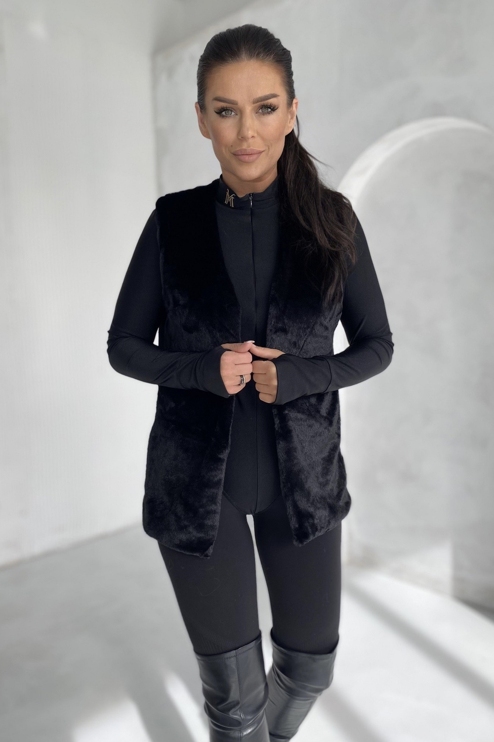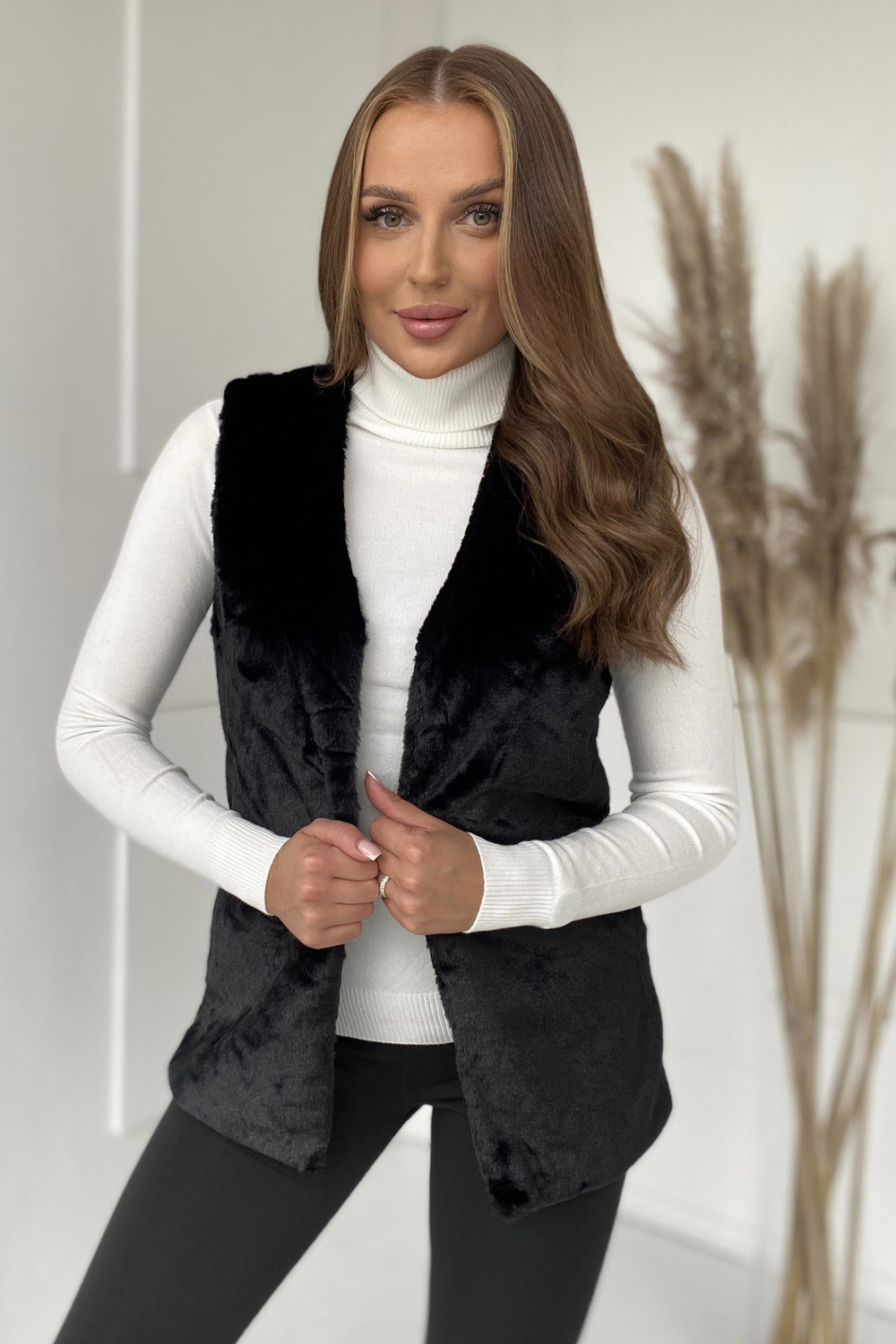Rozměry vesty ve velikosti S měřené na rovno: šířka pod pažemi – 44 cm, celková délka – 67 cm