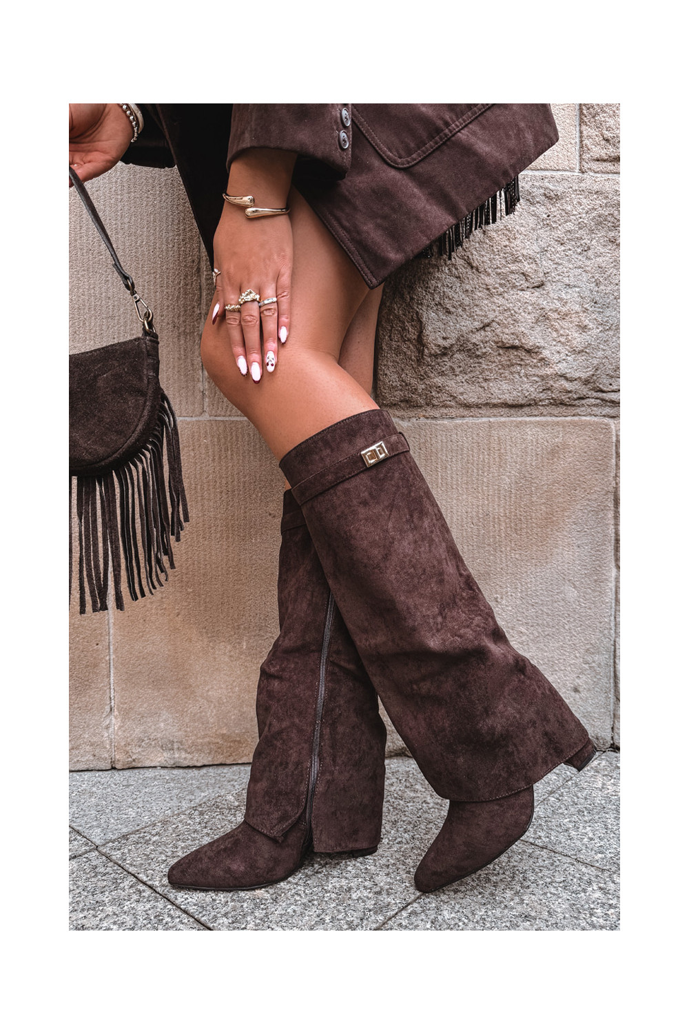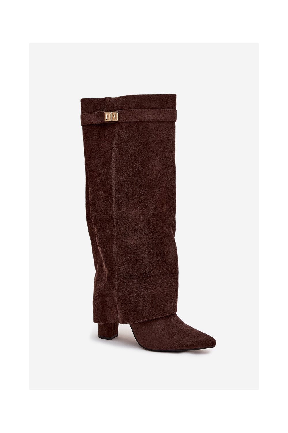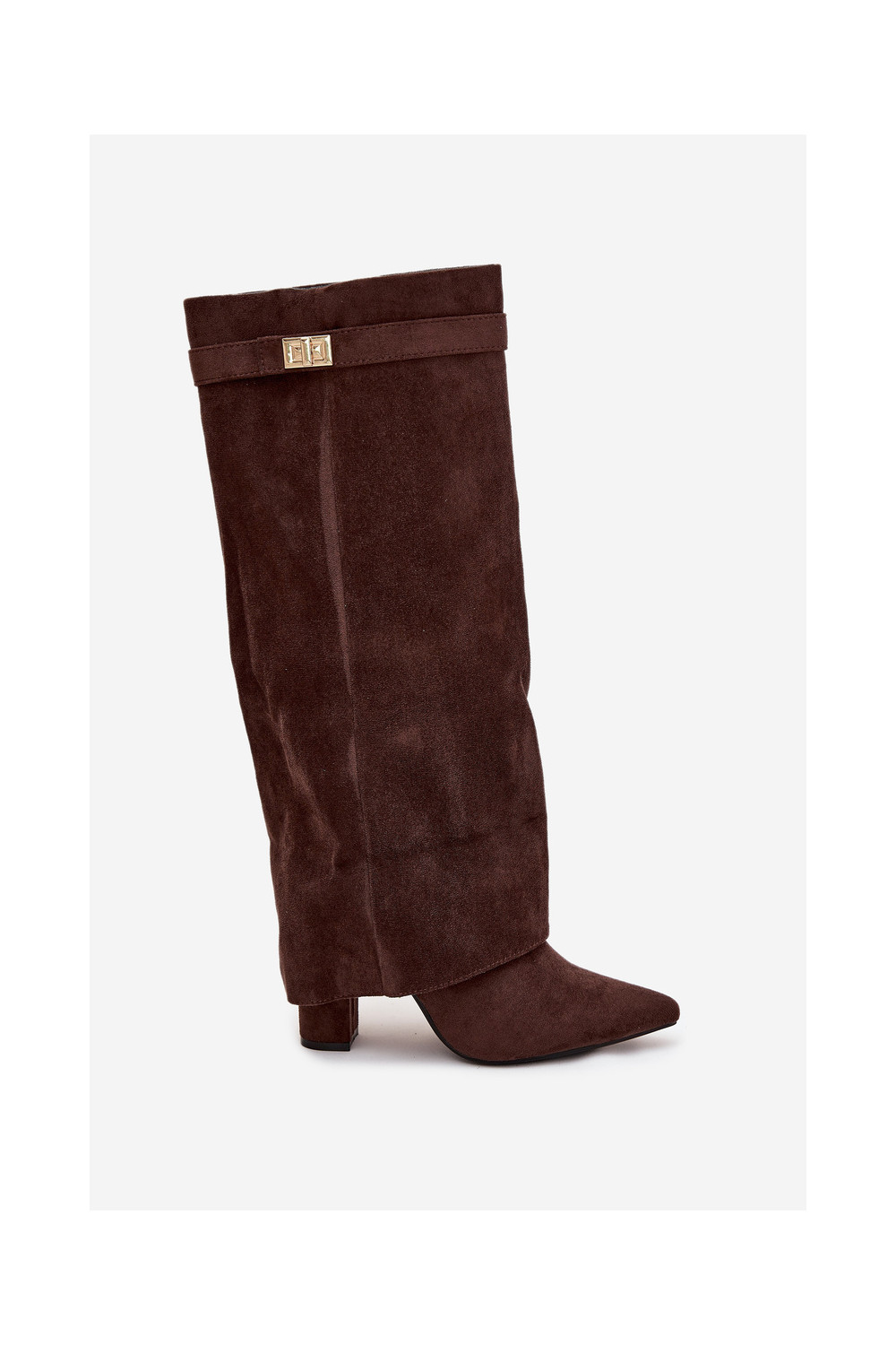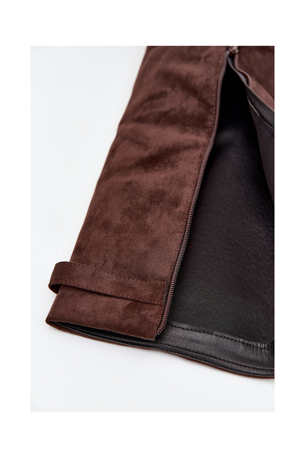 dlouhé boty z eko semišeowe Obcas Słupek zateplené Wywinięta Cholewka Czekoladowe Evyra