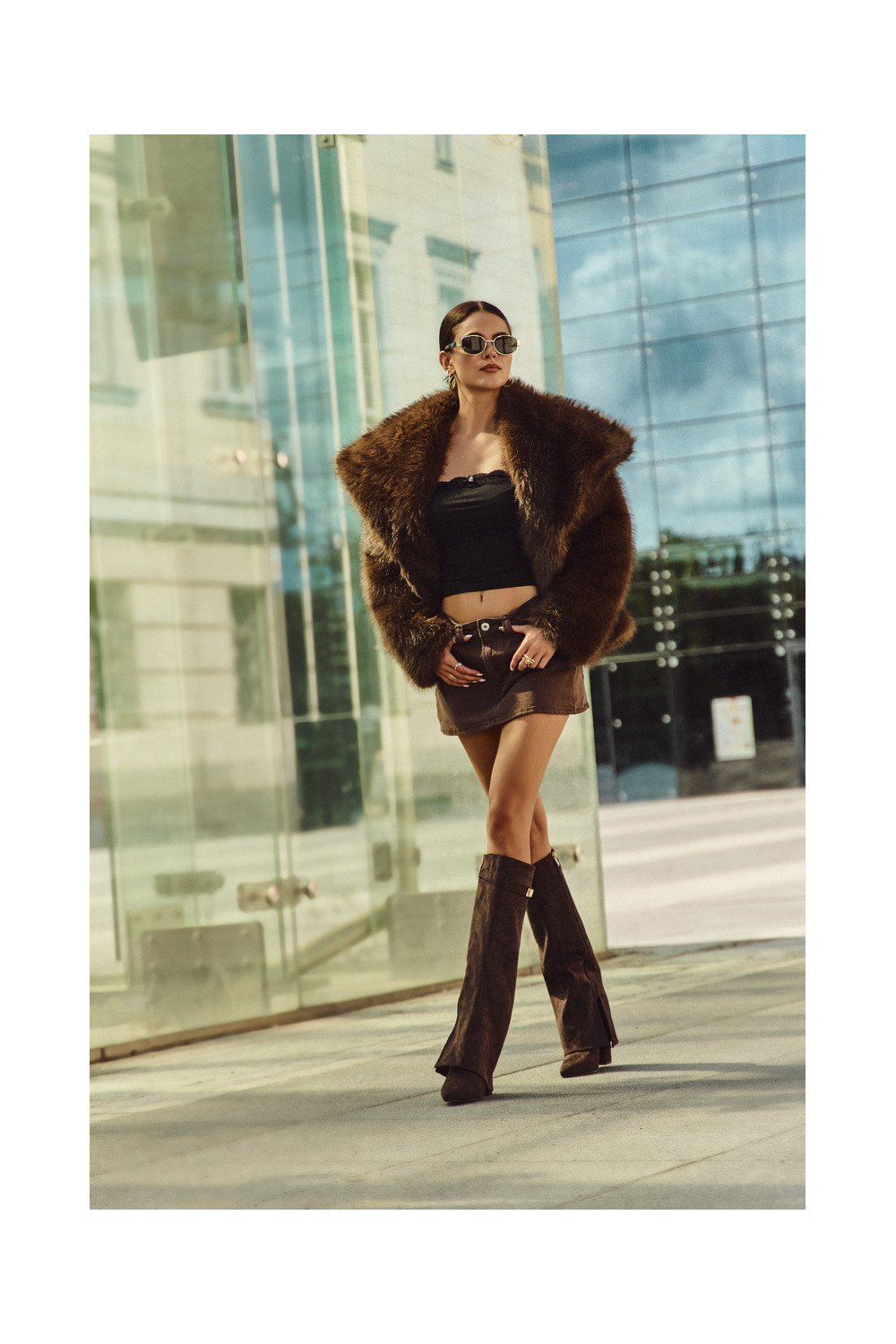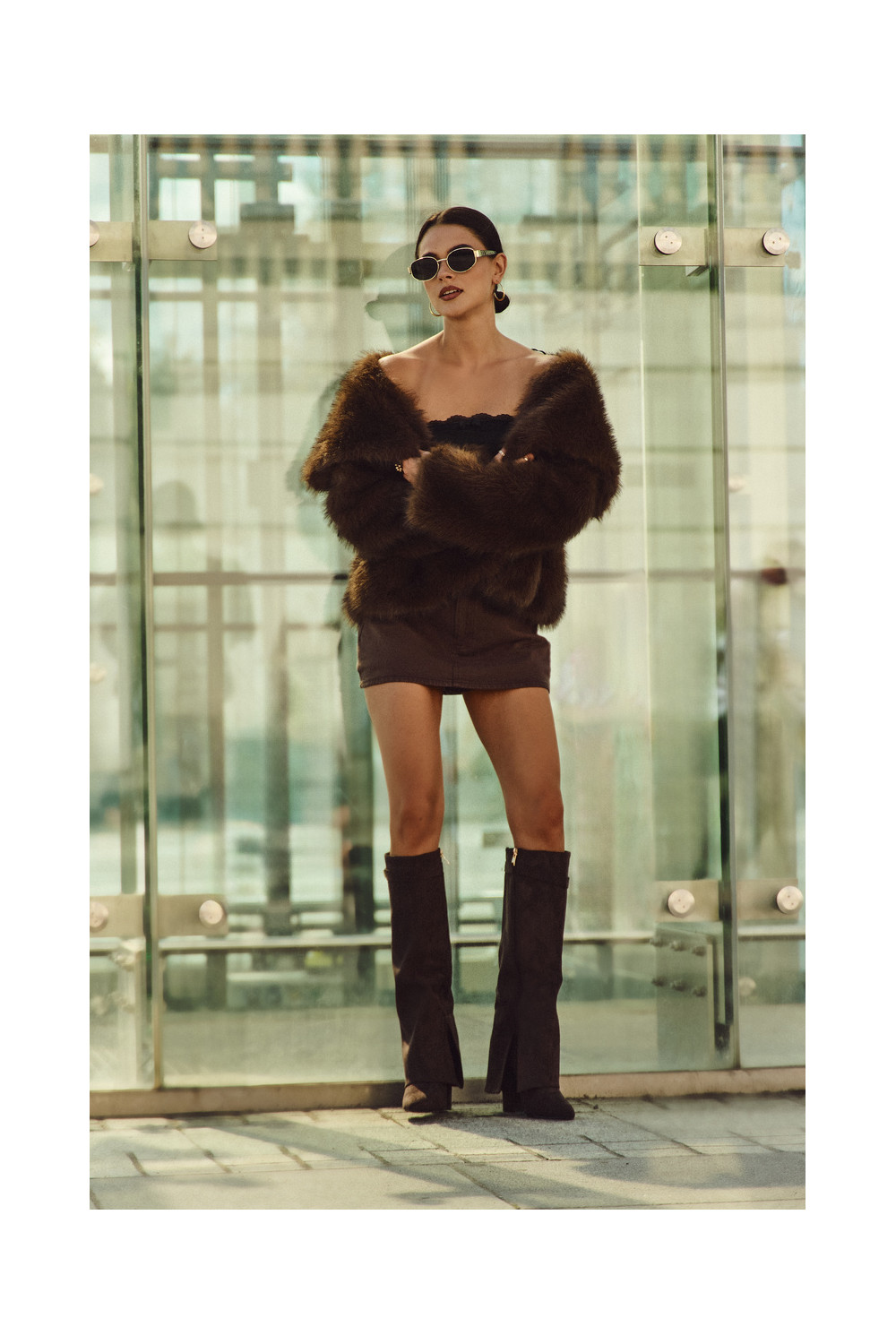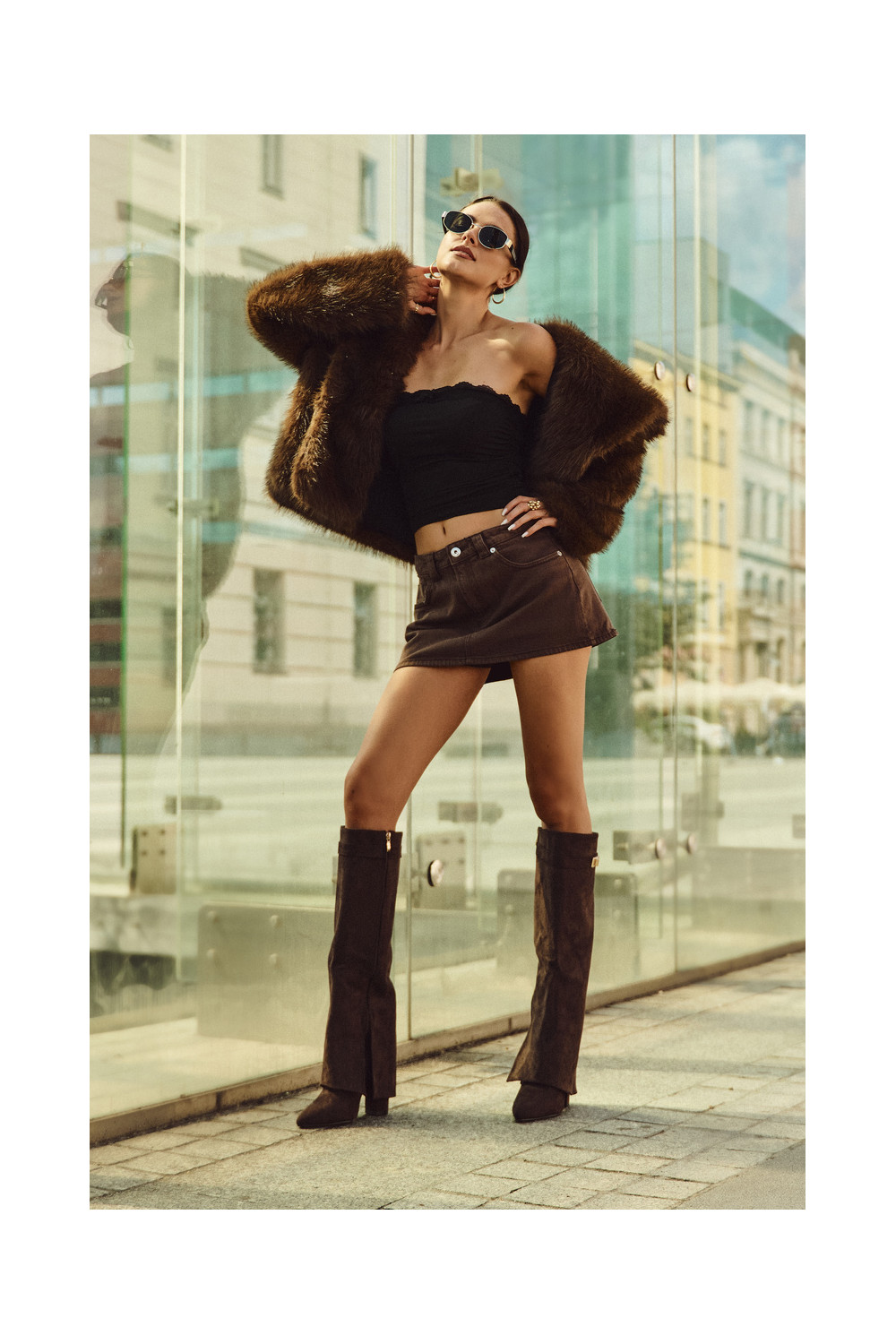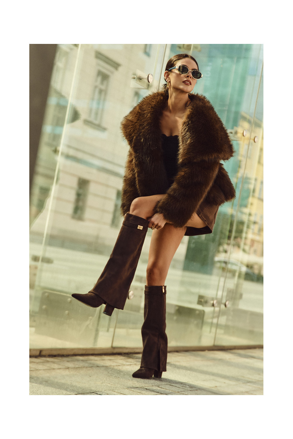 dlouhé boty z eko semišeowe Obcas Słupek zateplené Wywinięta Cholewka Czekoladowe Evyra