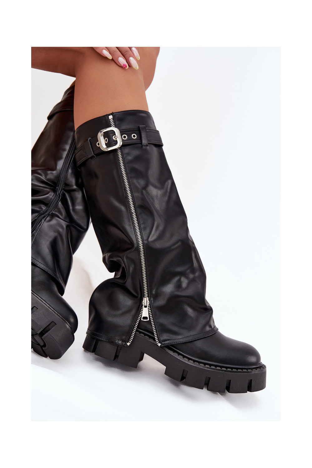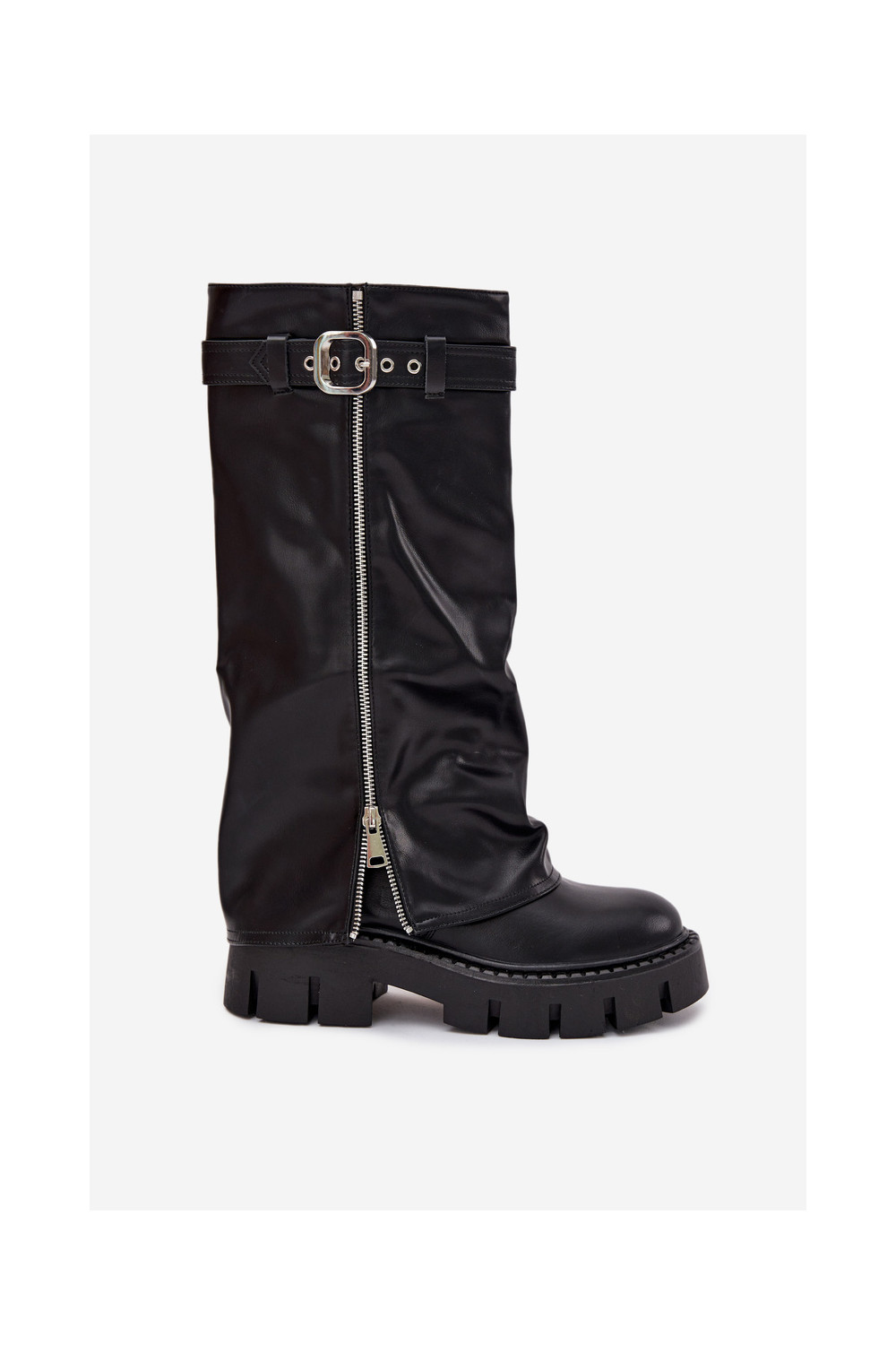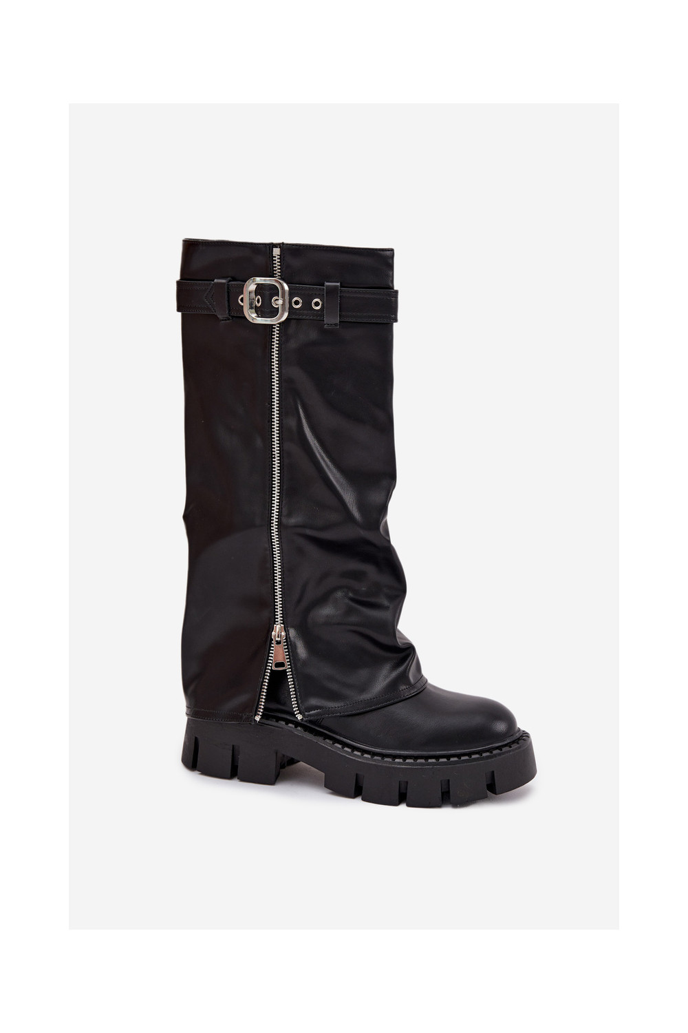 zateplené dlouhé boty Z Wywiniętą Cholewką s přezkami I stříbrné barvym Zamkiem Černé Armena