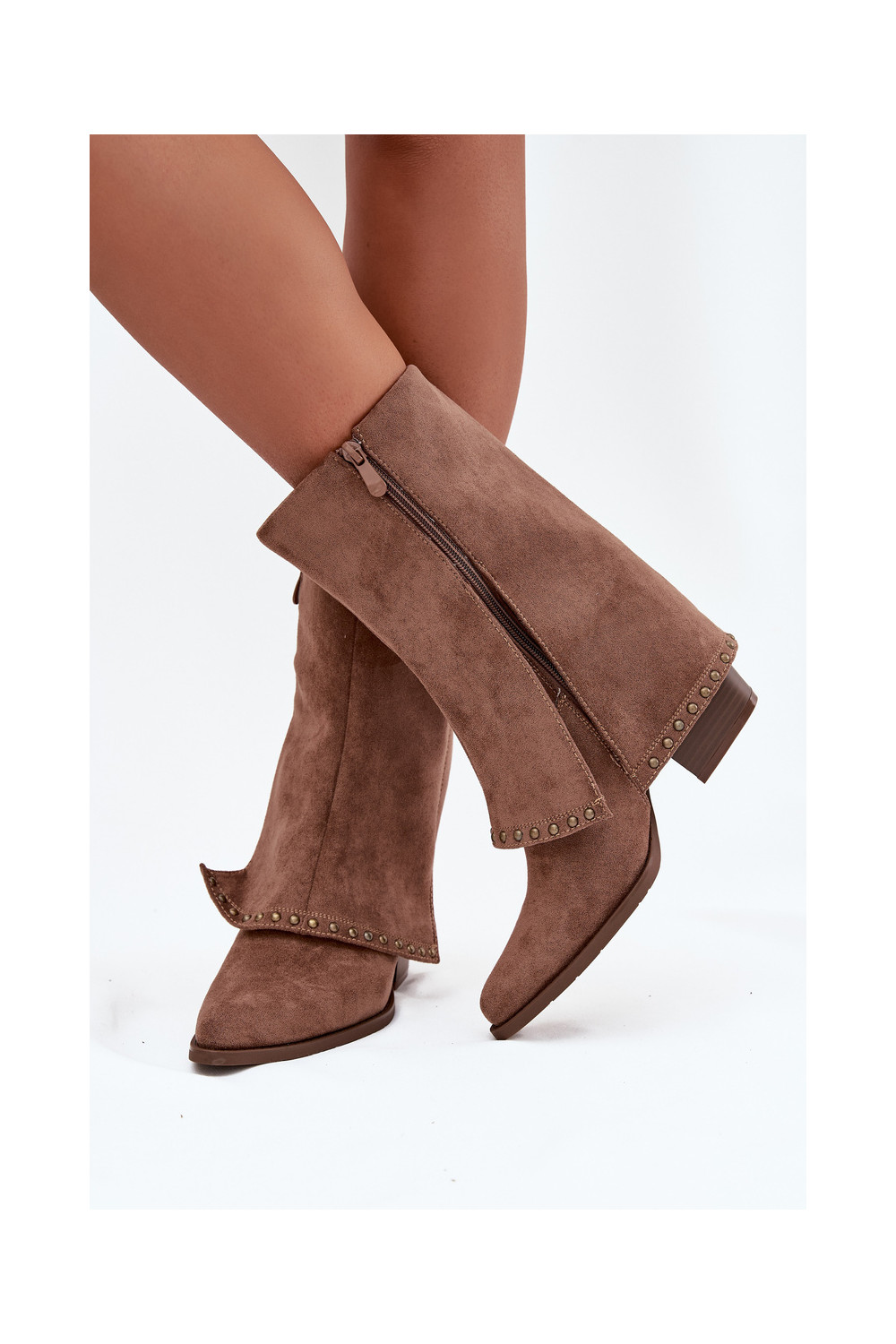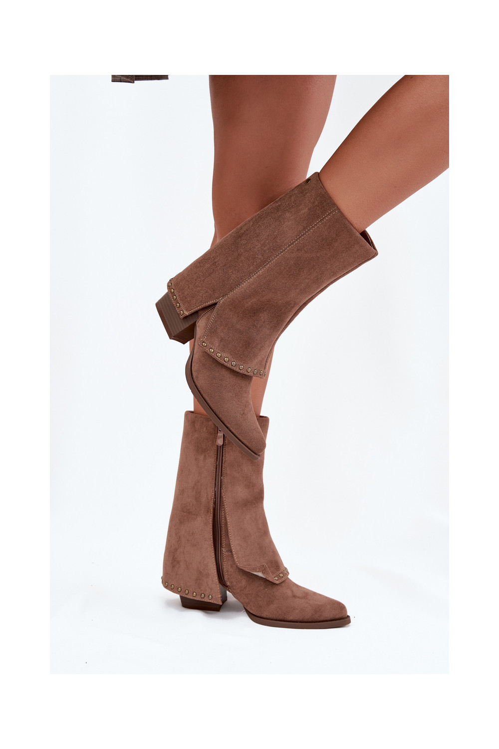 Teplé dlouhé kozačky Z Wywiniętą Cholewką Vinceza 16516 béžové