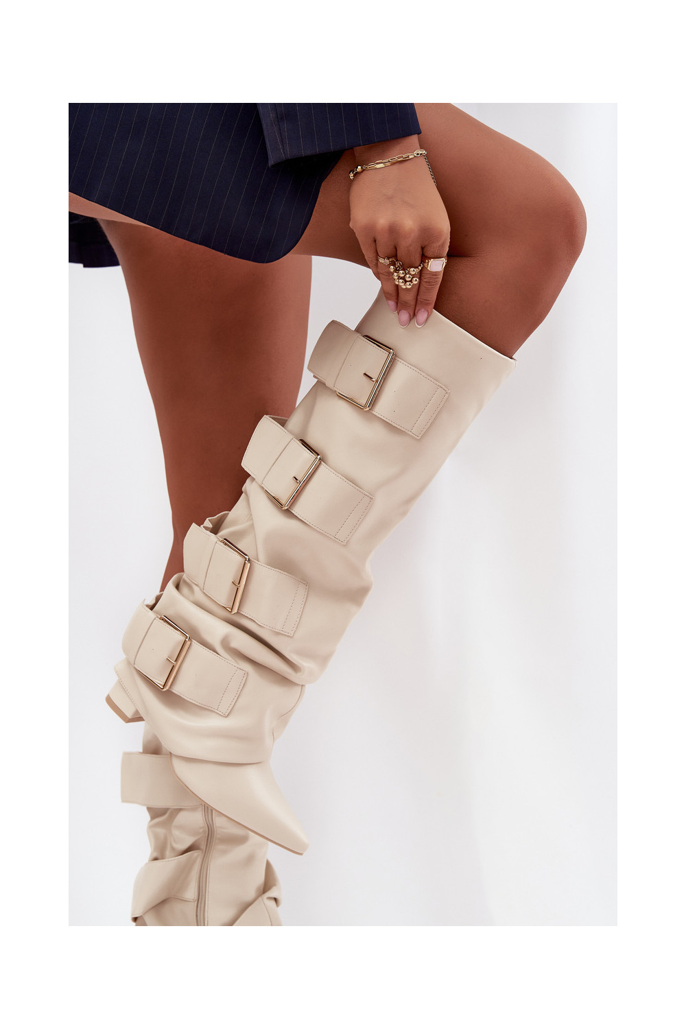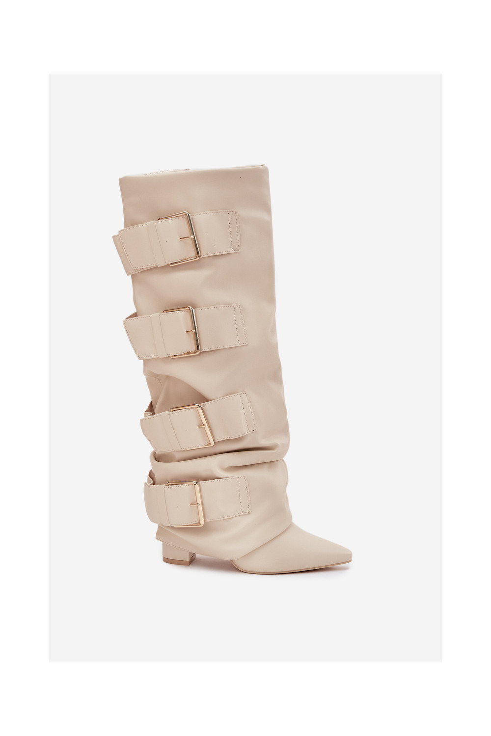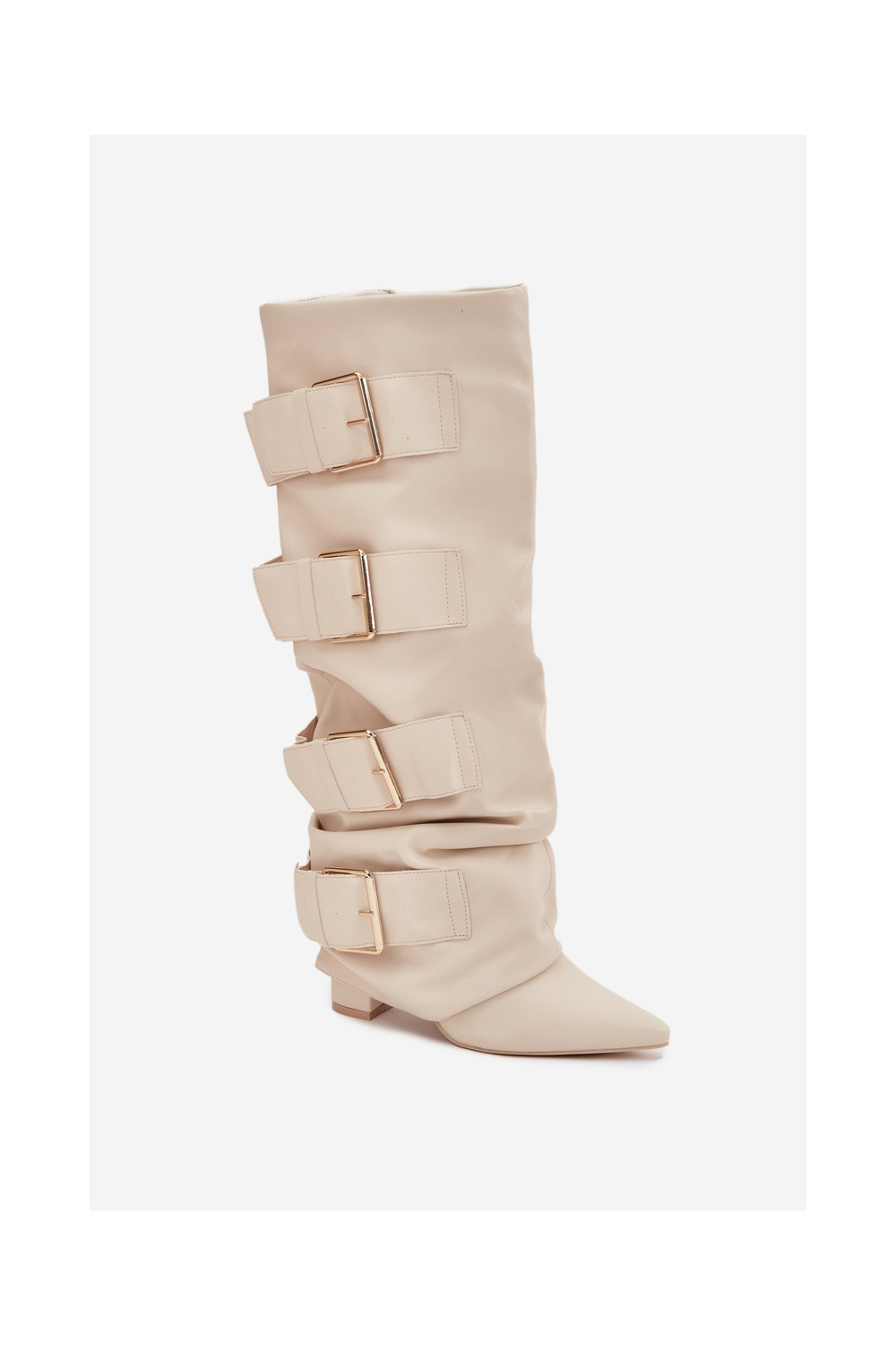 dámské dlouhé boty s podpatky Z Wywiniętą Cholewką I zlaté barvymi s přezkamimi slonová kost Isavelle
