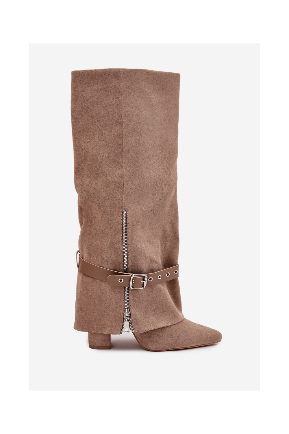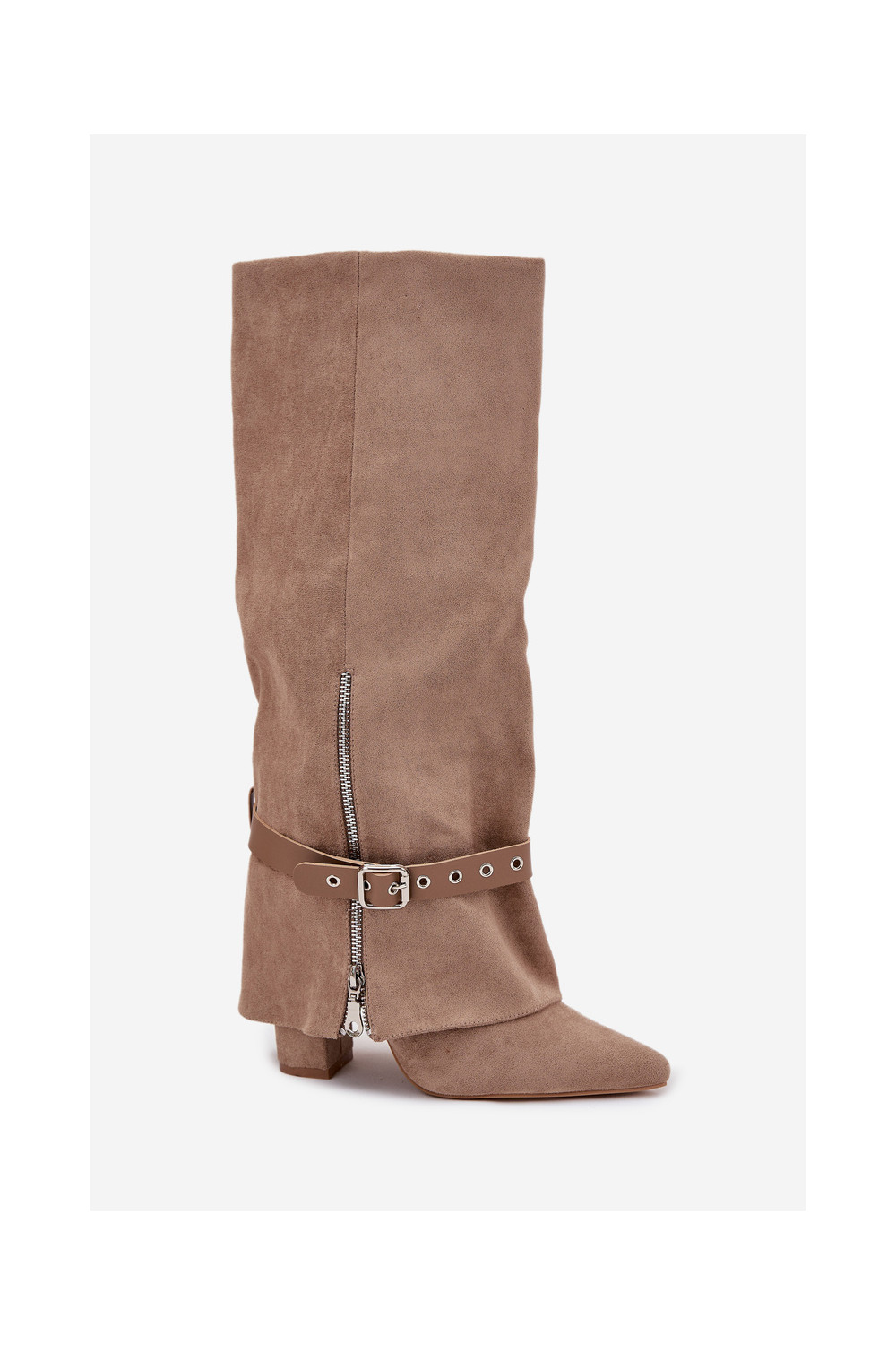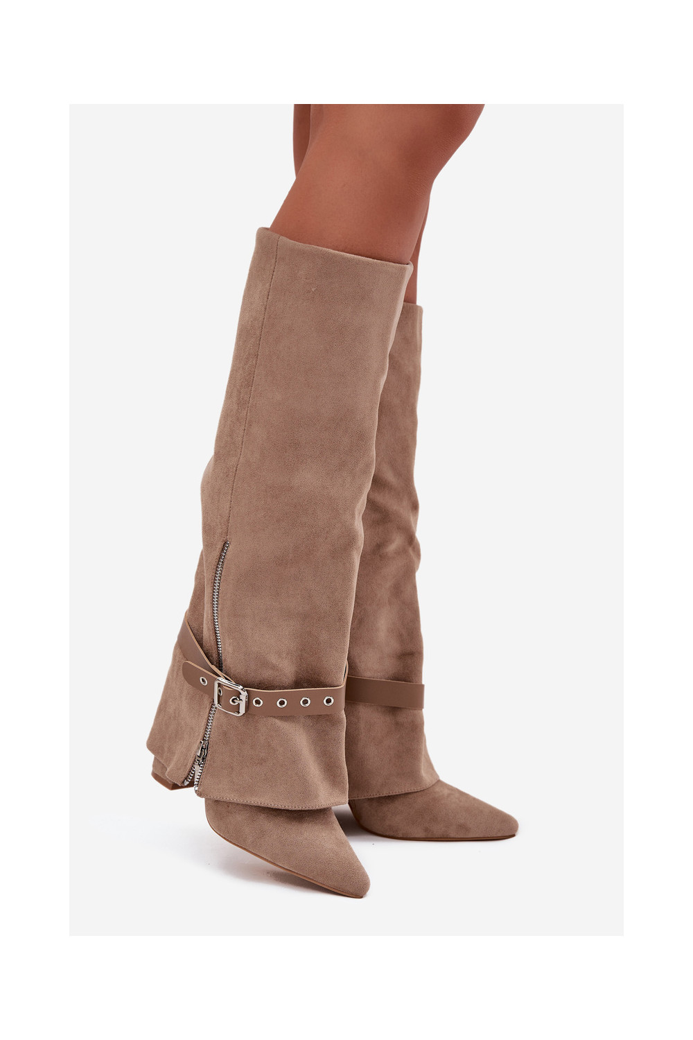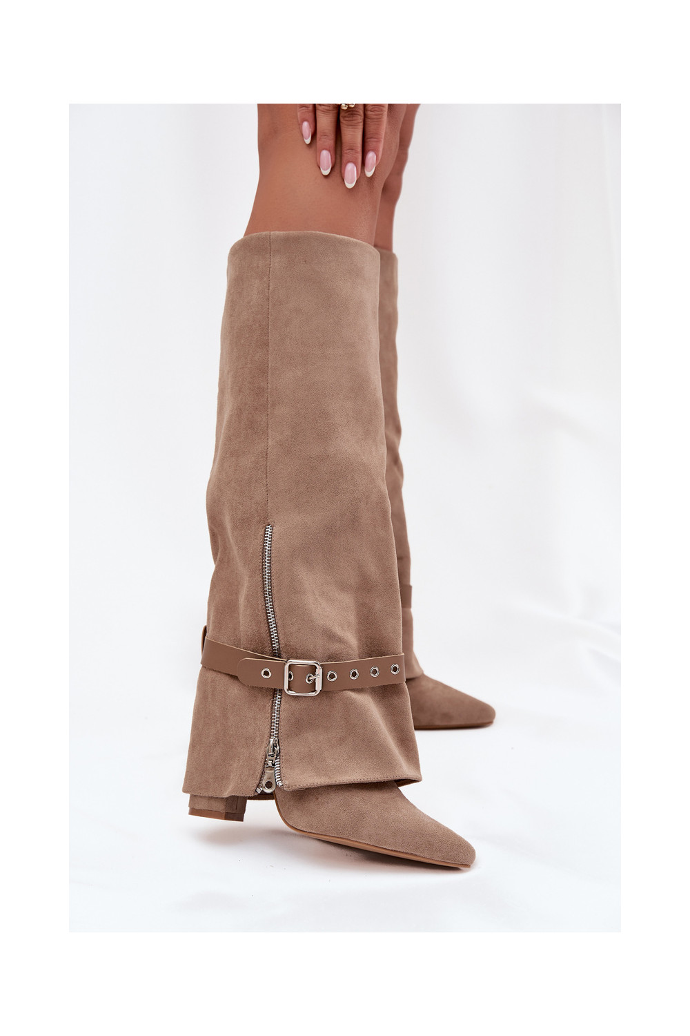 dámské dlouhé boty Slip-on vzor s podpatky se zdobenými podpatky béžové Jolivine