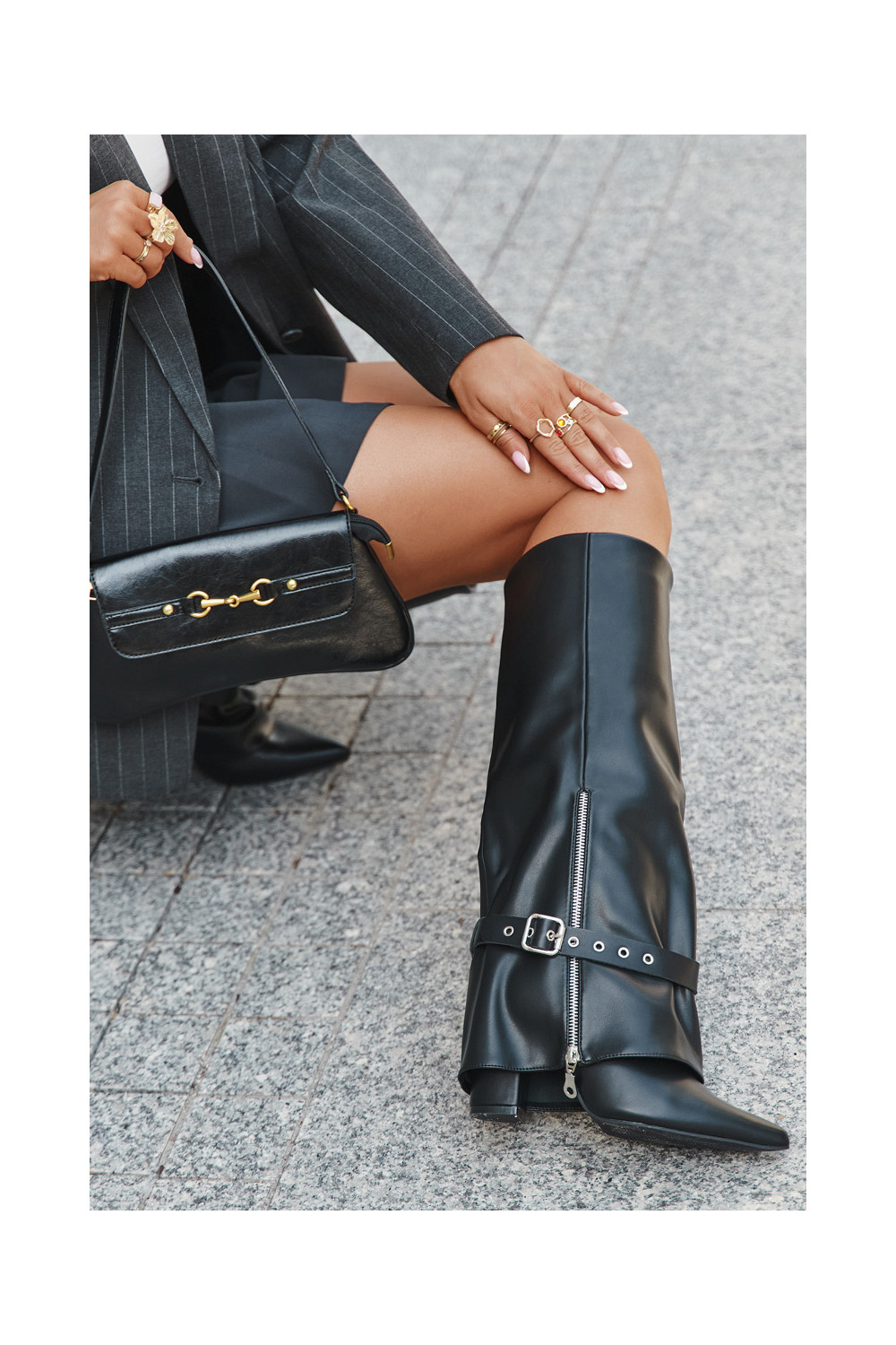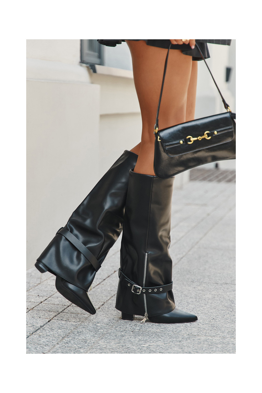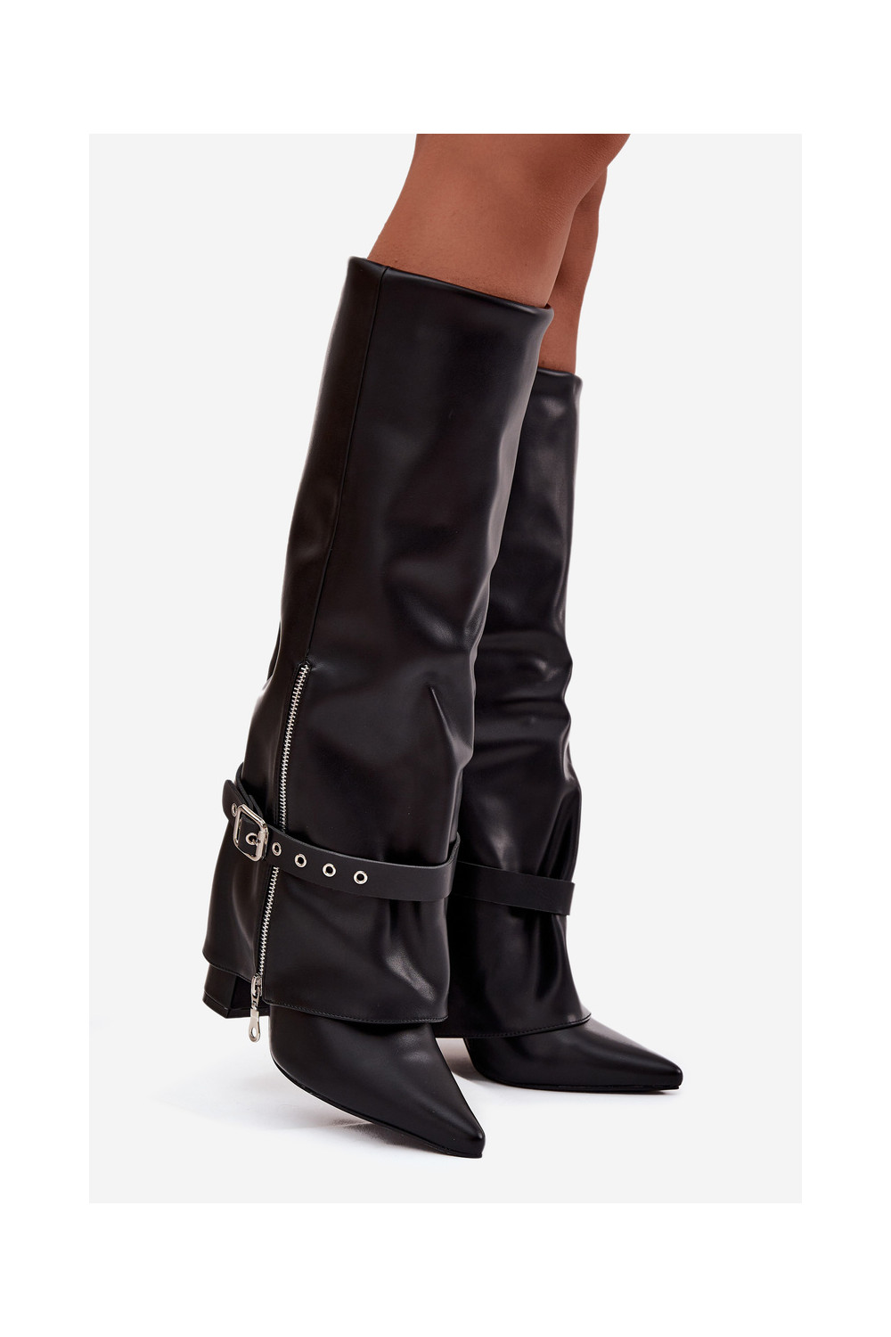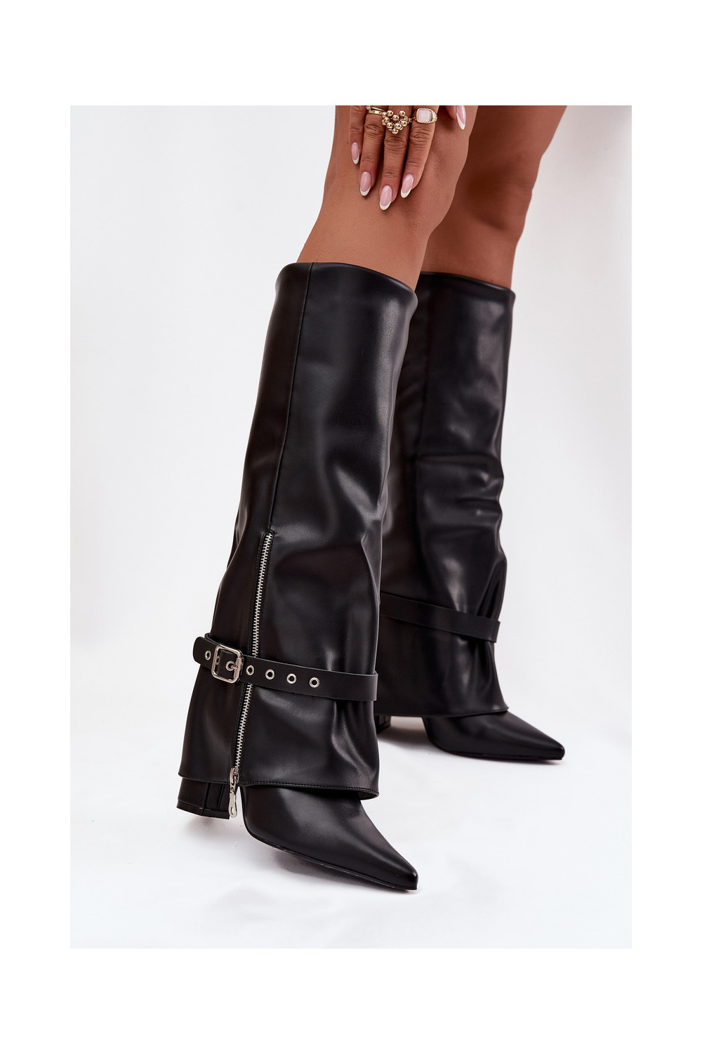 dámské dlouhé boty Slip-on vzor s podpatky se zdobenými podpatky Eko Černé Jolivine