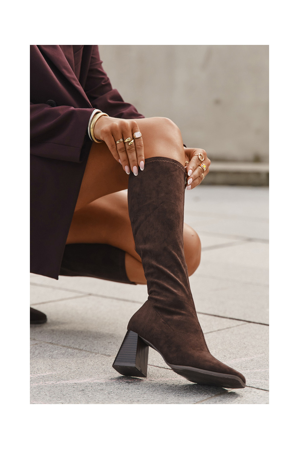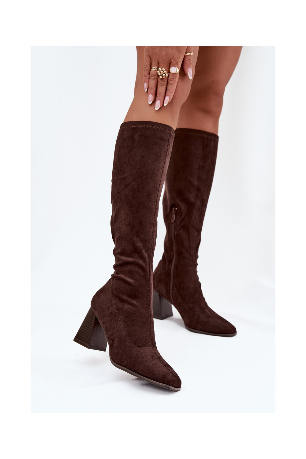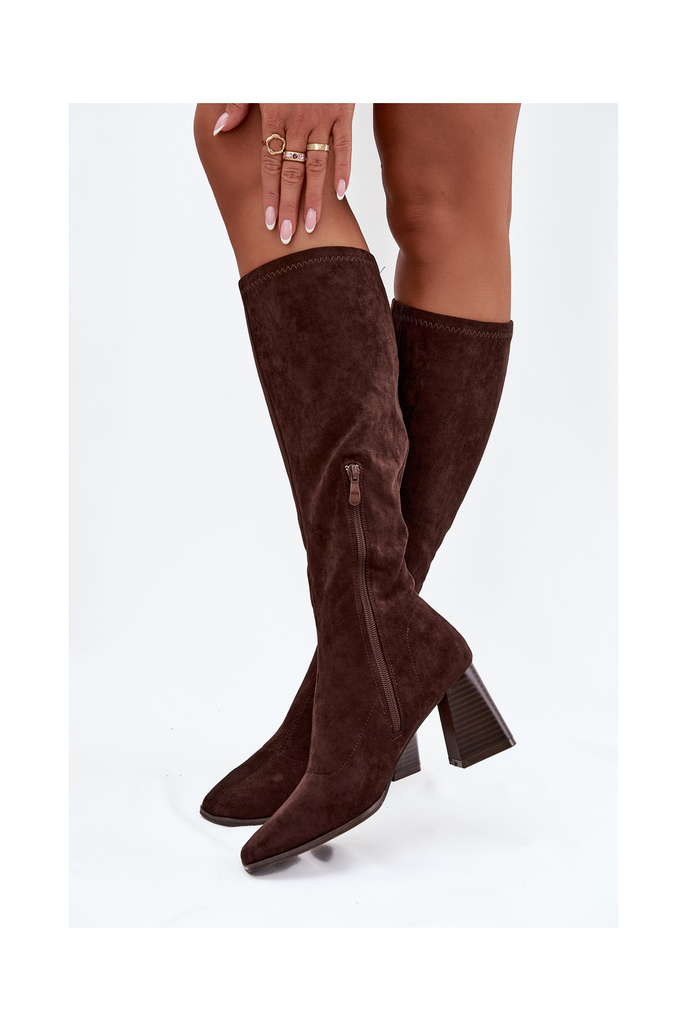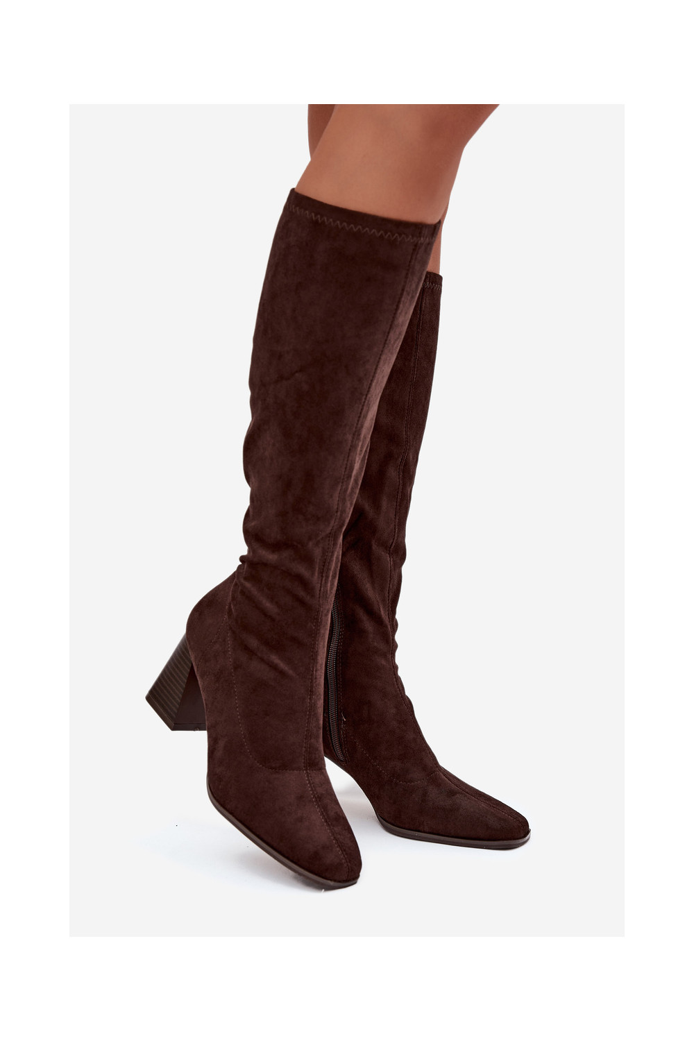 dámské dlouhé boty s podpatky Z Przeszyciami Czekoladowe Celandine