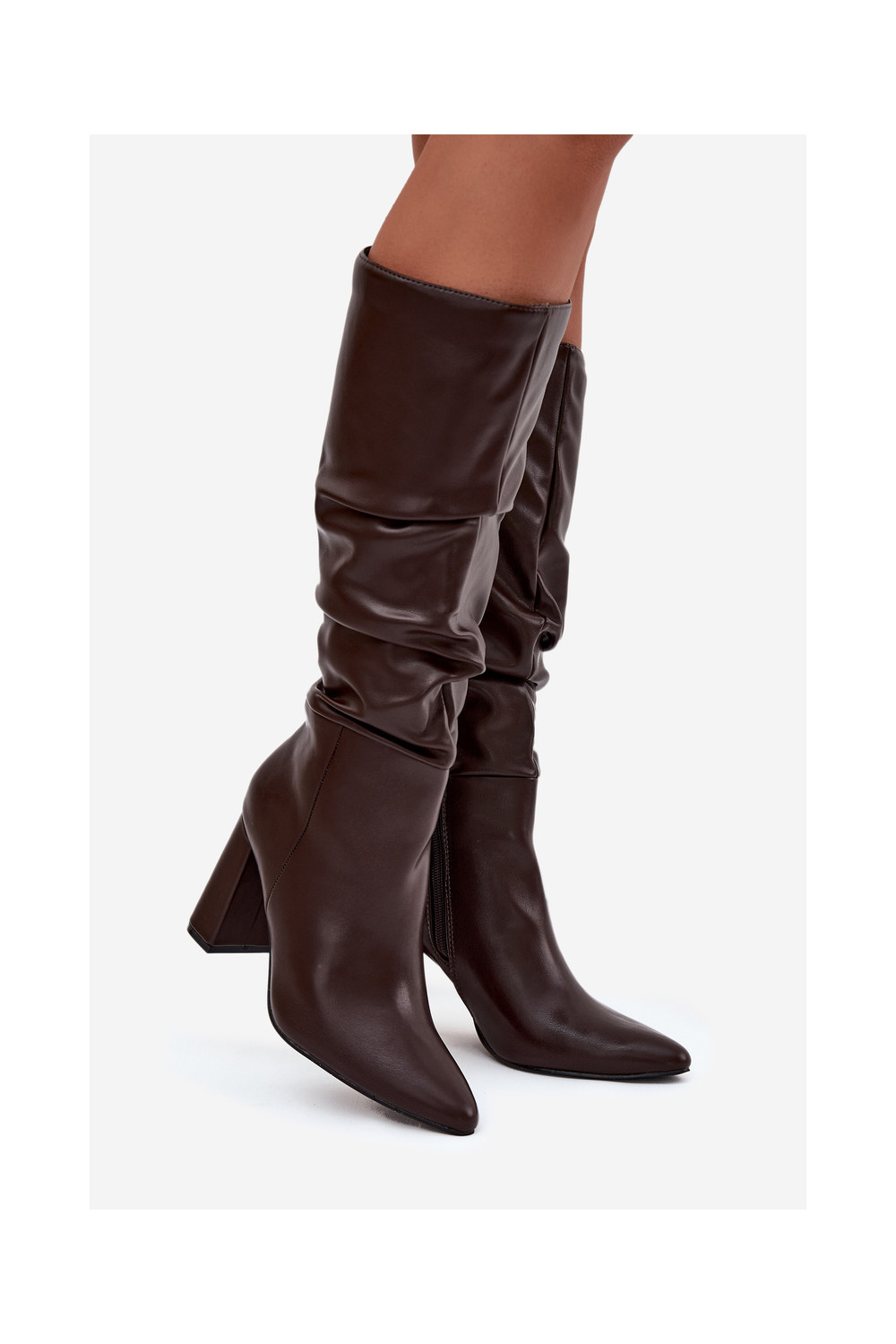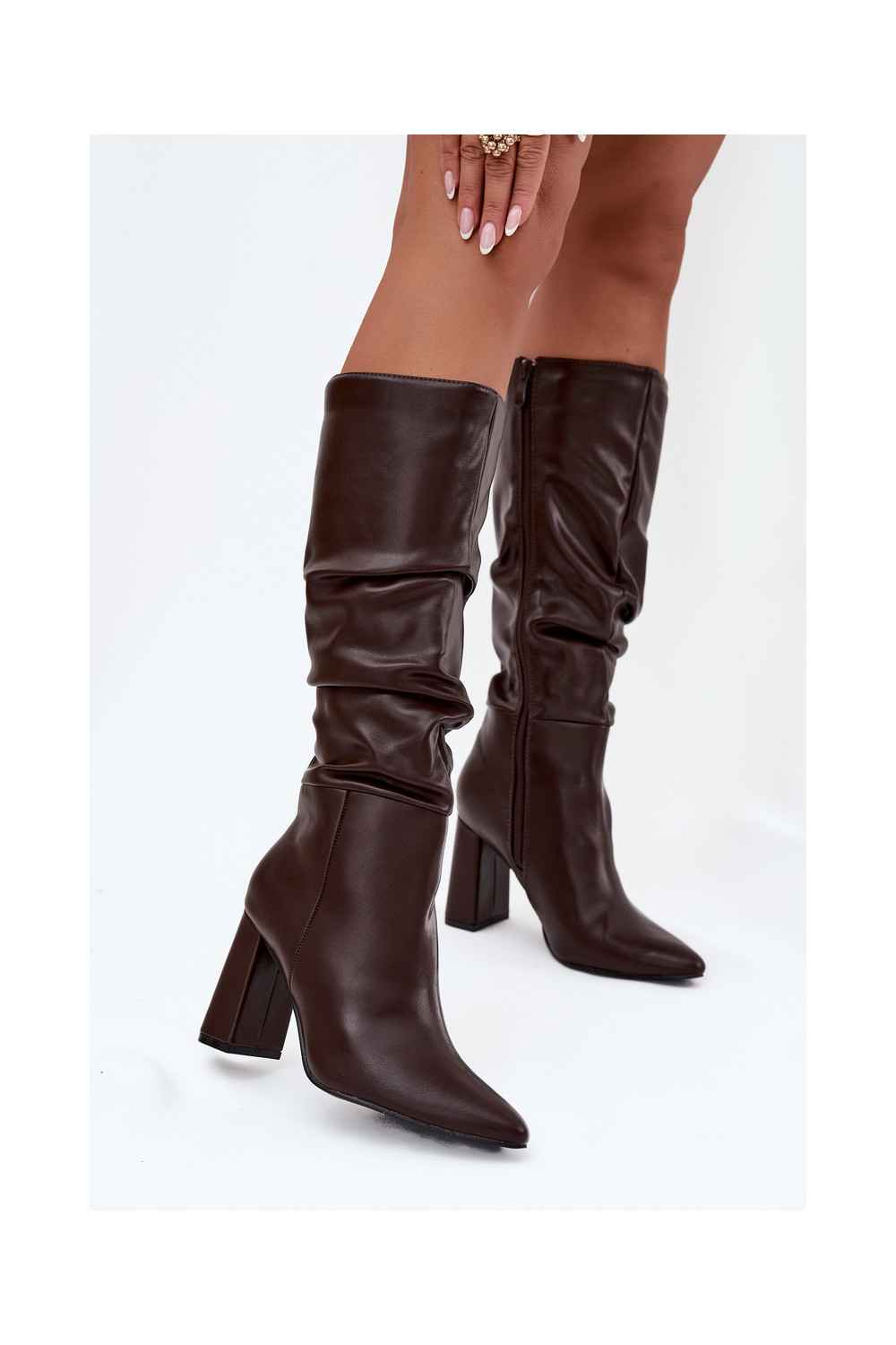 zateplené dámské dlouhé boty s podpatky Czekoladowe Dariane