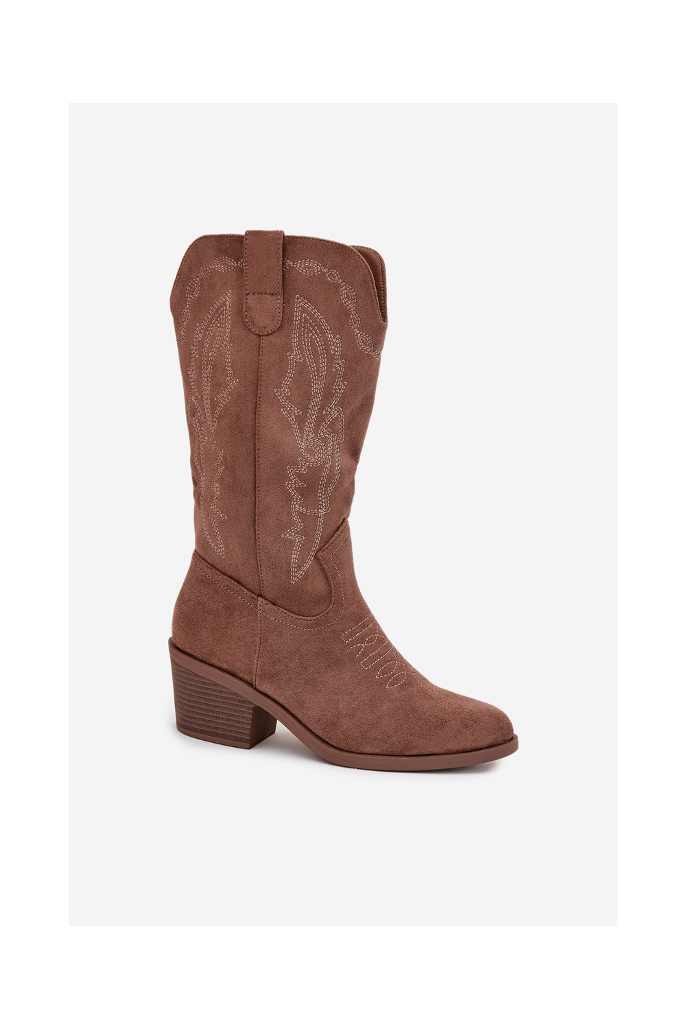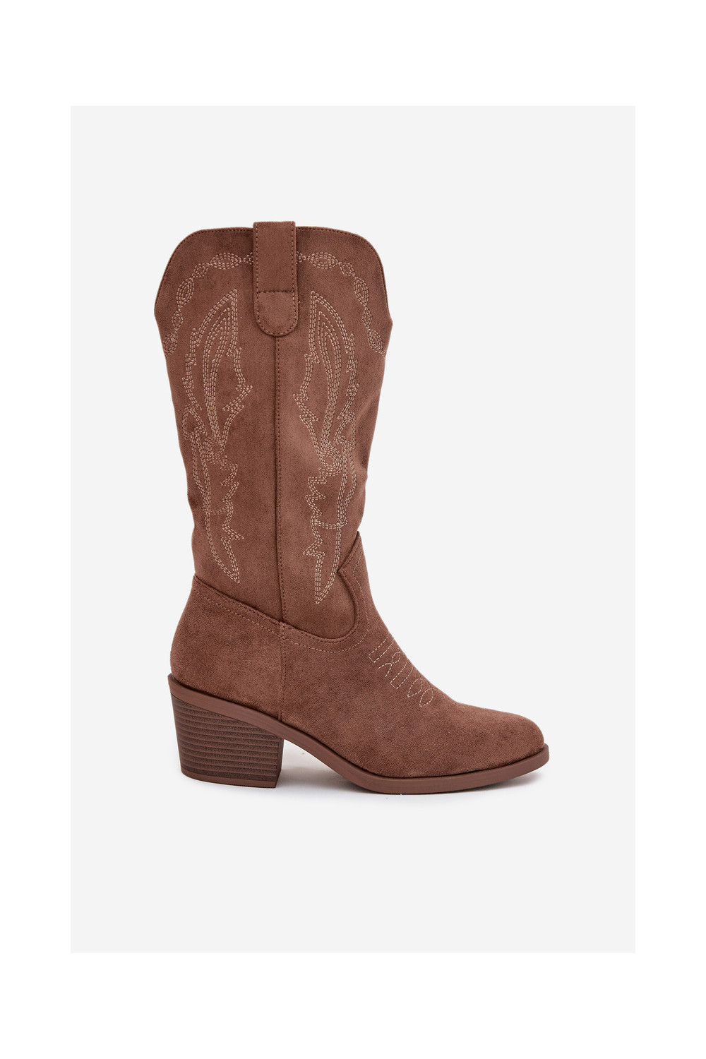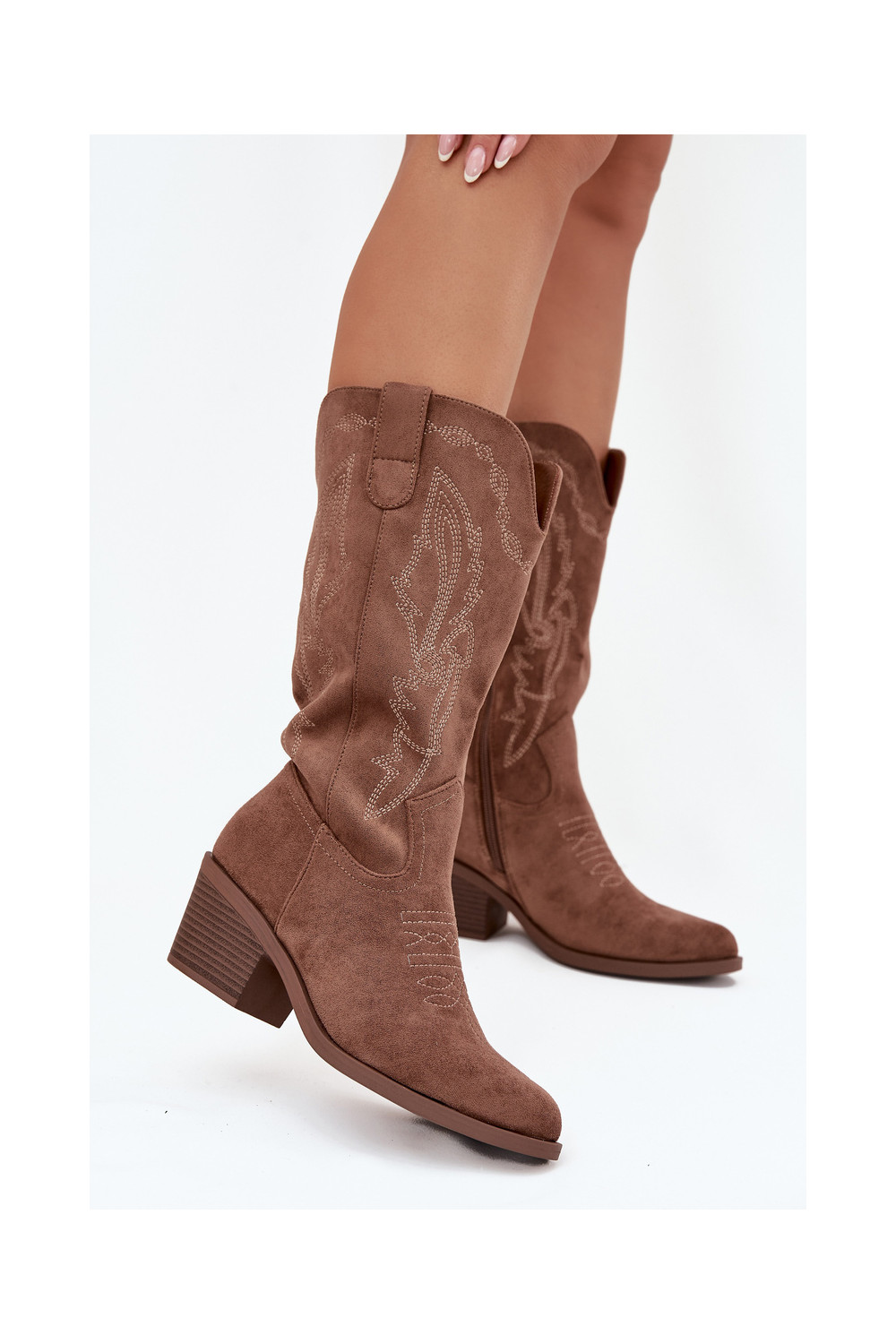 dlouhé boty kovbojský styl s podpatky zateplené Vinceza 16508 béžové