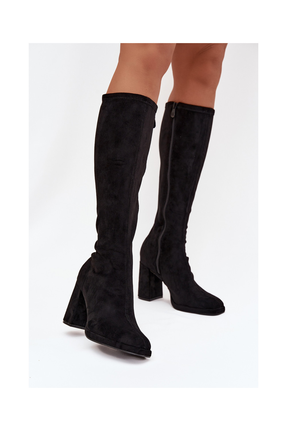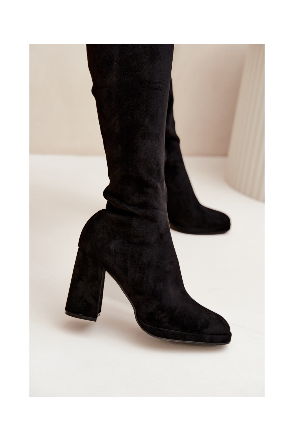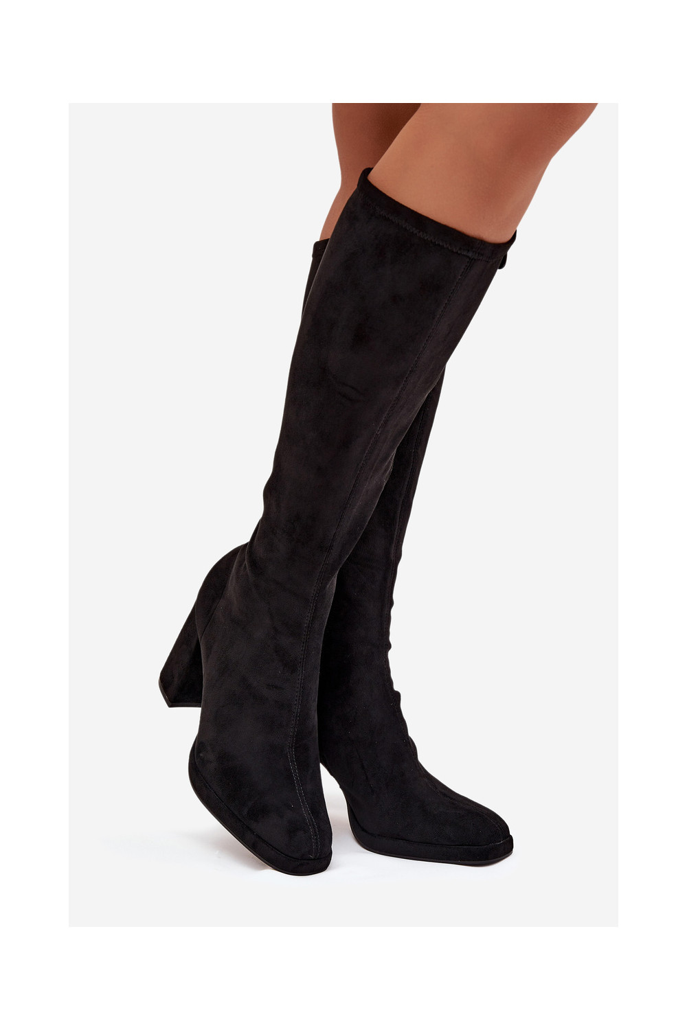 dámské dlouhé boty Z Przeszyciami Na Słupkowym Obcasie Černé Brivana